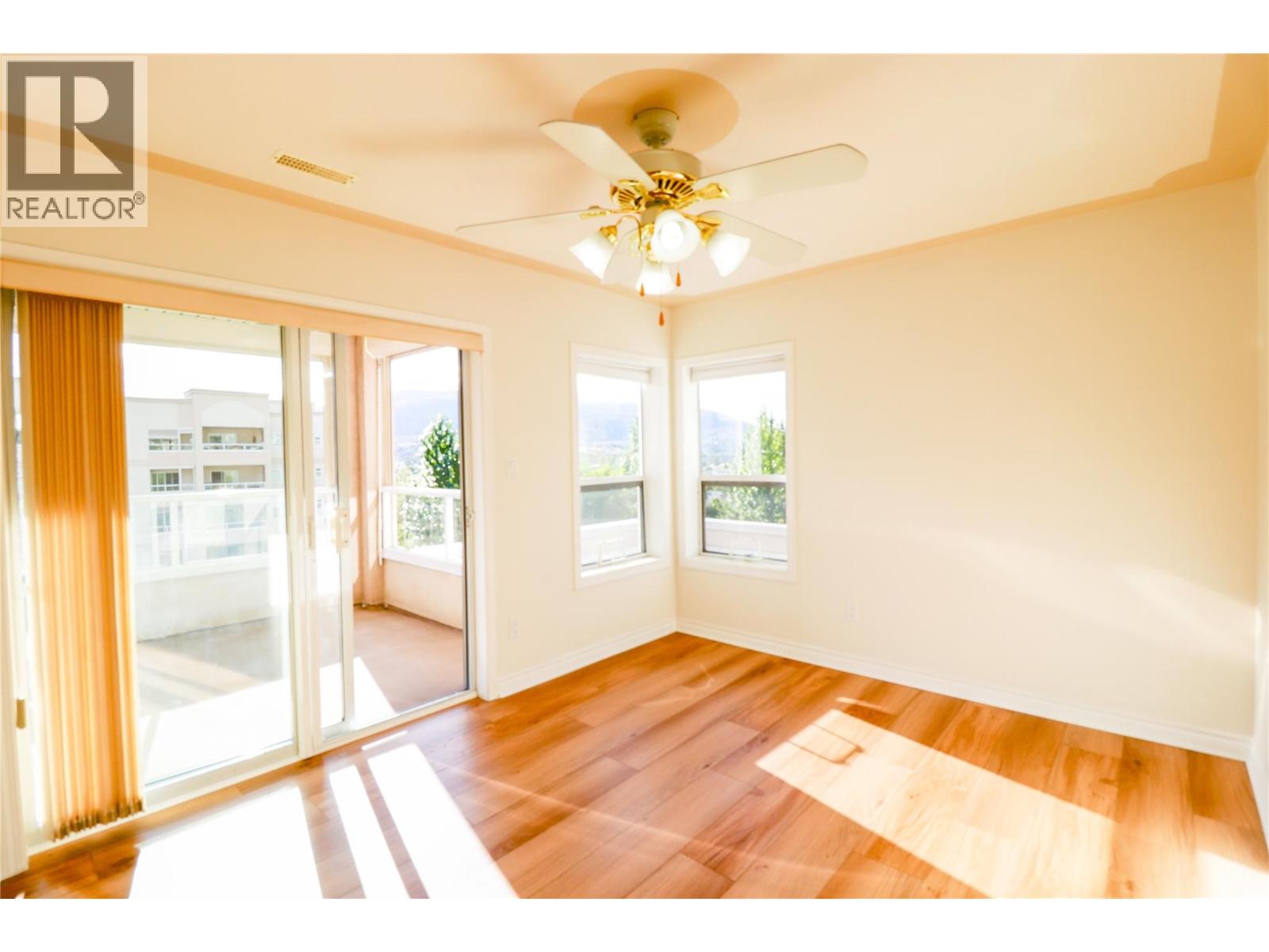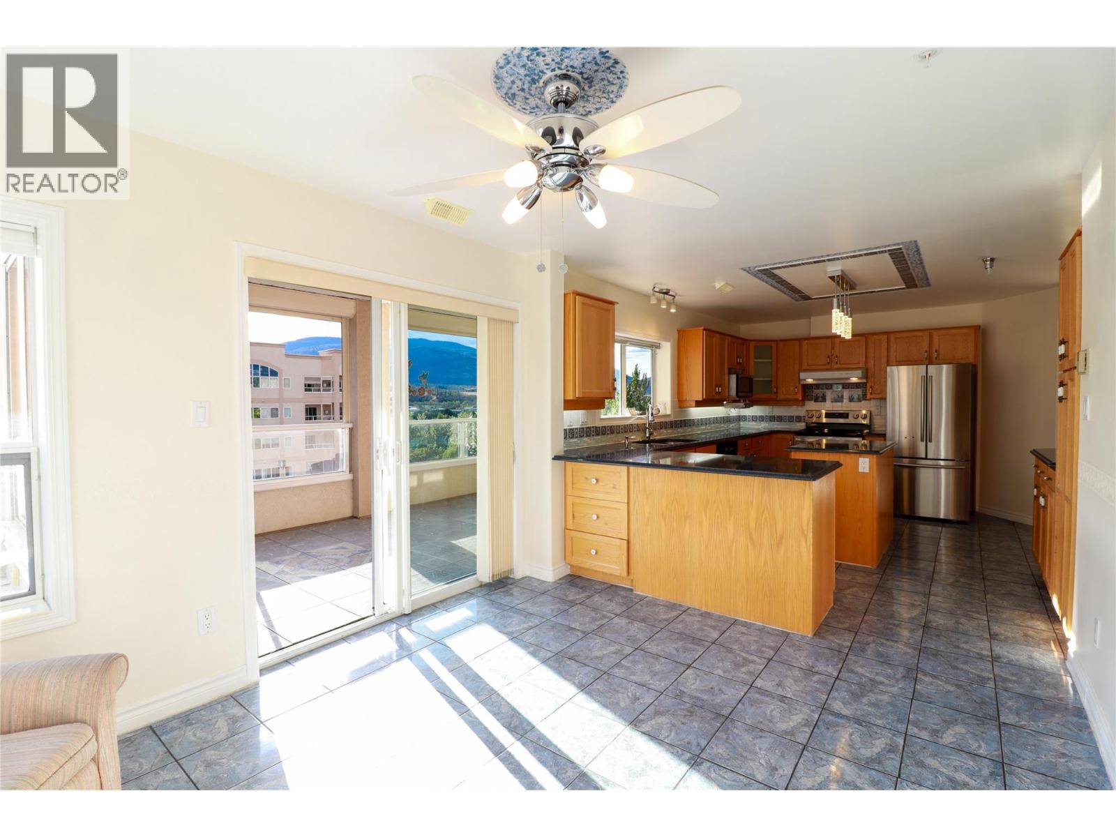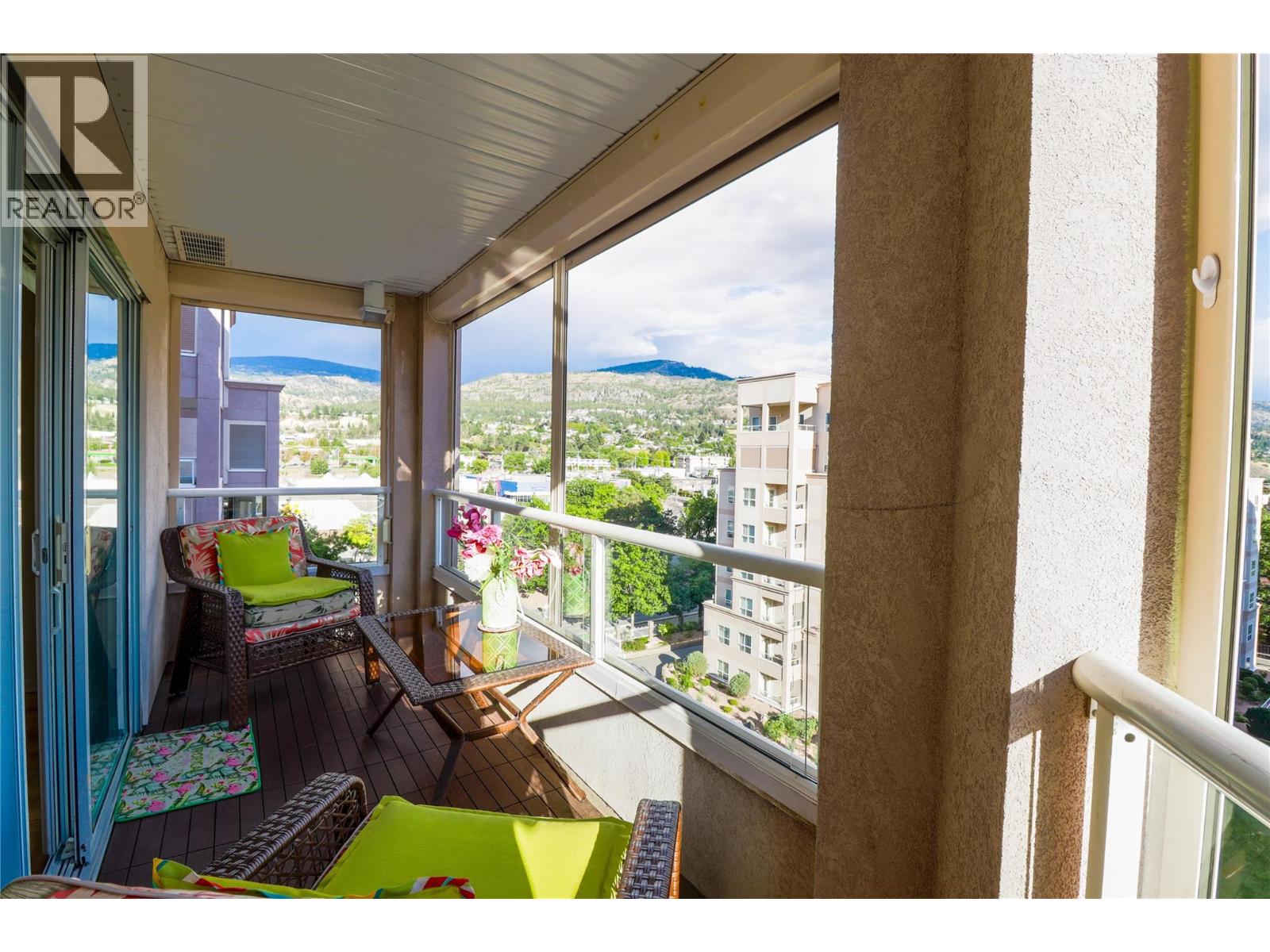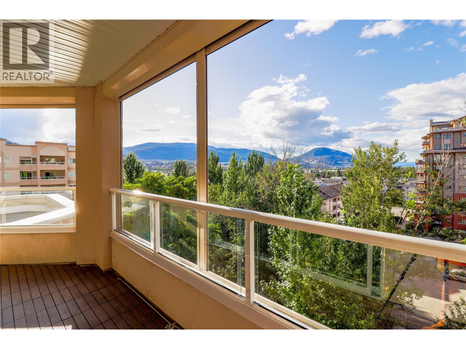 Experience refined living in the heart of Penticton with this exceptional junior penthouse in the sought-after Regency building at Cherry Lane Towers. Offering over 1,900 sqft of well-designed space, this 2-bedroom + den, 3-bathroom home combines the comfort of a detached residence with the ease of condo living. Bright and airy, the open-concept layout is perfect for entertaining, featuring a spacious living area, formal dining room, and a versatile den. The kitchen is a chef’s dream, showcasing solid surface countertops, bright with abundant cabinetry. Each bedroom is a private retreat, complete with walk-in closets and ensuite bathrooms for added luxury. Enjoy breathtaking views in every direction—North, West, and South—from any of the four private balconies, enhanced by custom electric shutters for year-round comfort and privacy. Additional highlights include in-suite laundry, multiple hallway closets, separate storage unit, secure parking, and an electric fireplace. Located just steps from Cherry Lane Mall, this home offers unmatched convenience with shopping, restaurants, transit, and bike routes at your doorstep. If you're seeking a downsizing option that doesn't compromise on space or lifestyle, this rare offering delivers it all—comfort, style, and central location in one beautiful package. Come see why this suite is one of the most desirable in the city. (id:47466)