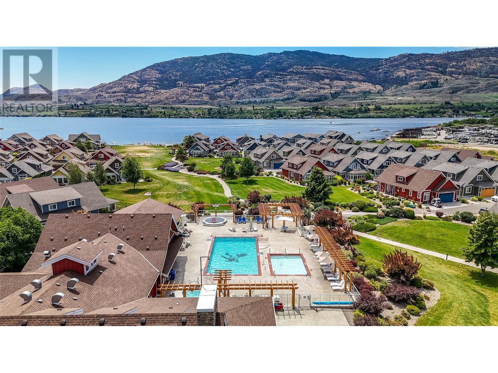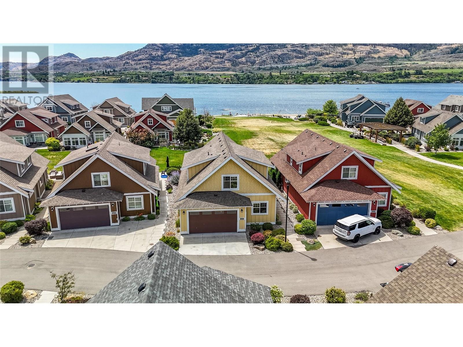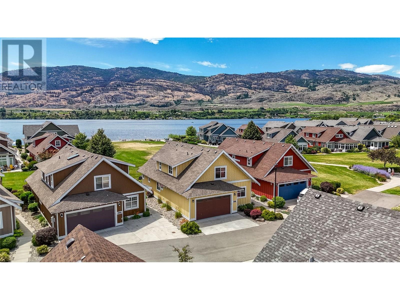 Welcome to this stunning 4-bedroom plus den custom-built home, thoughtfully designed for both functionality and comfort. BONUS: boat slip included! Located in one of the most desirable spots within The Cottages, this beautifully crafted home features a spacious, well-laid-out floorplan ideal for full-time living or a relaxing vacation home. The main level includes a generous primary suite complete with a walk-in closet and full ensuite, a bright den perfect for a home office, and a beautiful sunroom filled with natural light. The kitchen is a chef’s dream with quartz countertops, stainless steel appliances including a wine fridge, and plenty of cabinetry for storage. The large living and dining areas are perfect for gathering with family and friends, while the laundry room and double-car garage add everyday convenience. Upstairs, you’ll find three generously sized bedrooms, a full bathroom, and a bonus sitting area. Large windows throughout the home fill the space with natural light and frame the spectacular views of Osoyoos Lake. Step outside to your private patio, which opens directly onto a spacious green space without anything obstructing your view of the lake and beach. The clubhouse offers outdoor pools, hot tubs, a fitness centre, & a banquet room. The Cottages also offer walking trails, pickleball courts, a private beach with a volleyball court and firepits, playgrounds for kids, and even a dog park. Short-term rentals are permitted (Min 5 days) (id:47466)
