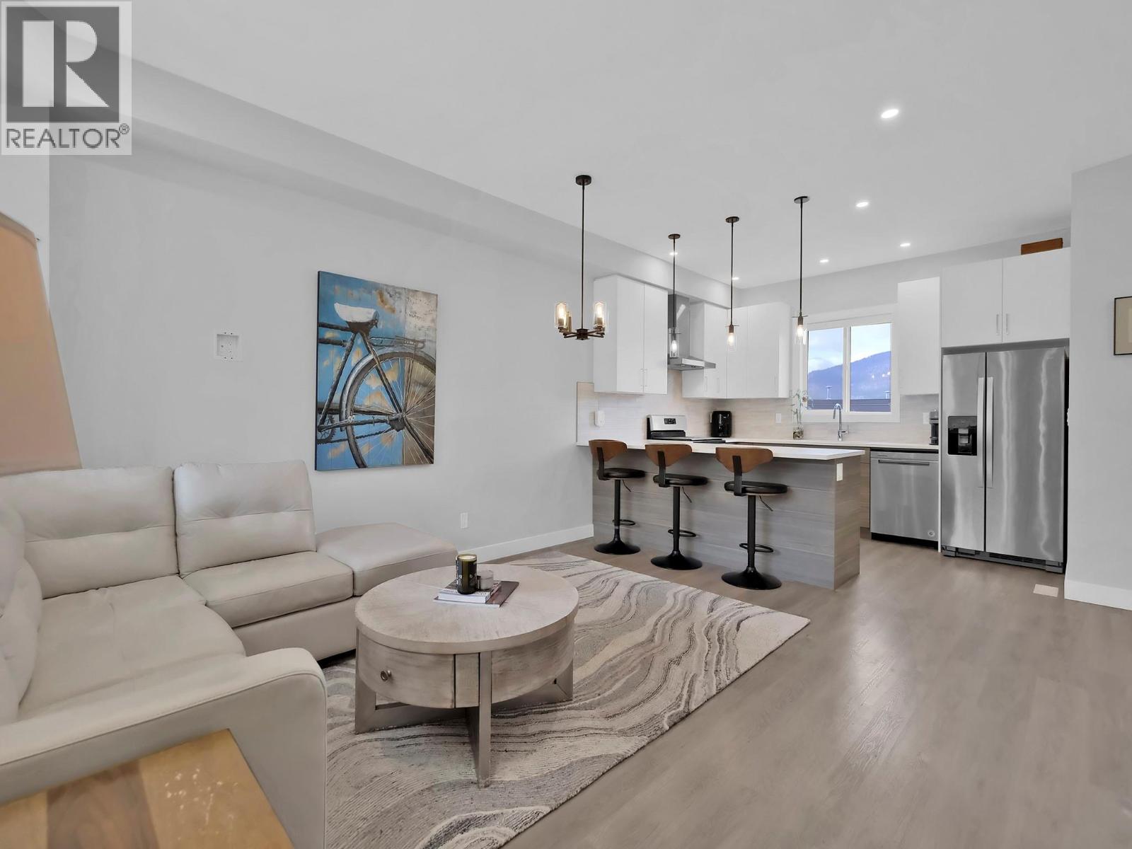 Trendy Corner Townhome Steps from Downtown Penticton! Whether you're a first-time buyer, someone looking to downsize, or seeking a smart investment, this bright & beautifully maintained 3-bedroom, 3-bathroom corner townhome offers the perfect blend of lifestyle and location. Tucked away in a quiet, well-kept development just steps from Okanagan Lake, the KVR Trail, craft breweries, the farmers market, & downtown shops and restaurants - this is urban living without the noise. The main level welcomes you with a sun-filled, open-concept living space, perfect for entertaining or relaxing. The kitchen is a standout feature with a gas stove, stylish cabinetry, and a sit-up breakfast bar ideal for casual meals and hosting friends. A convenient 2-piece powder room completes this level. Upstairs, the spacious primary bedroom includes a walk-in closet, a 3-piece ensuite, & a peek-a-boo lake view. Two more bedrooms, a full bathroom, & laundry round out the upper floor. The lower level features a versatile rec room with direct access to your private, fully fenced patio space, complete with gas BBQ hookup for summer evenings. Pet-friendly, no age restrictions, low strata fees ($210/month), and the confidence of remaining home warranty make this townhome a rare find. Total sq.ft. calculations are based on the exterior dimensions of the building at each floor level & include all interior walls & must be verified by the buyer if deemed important. (id:47466)