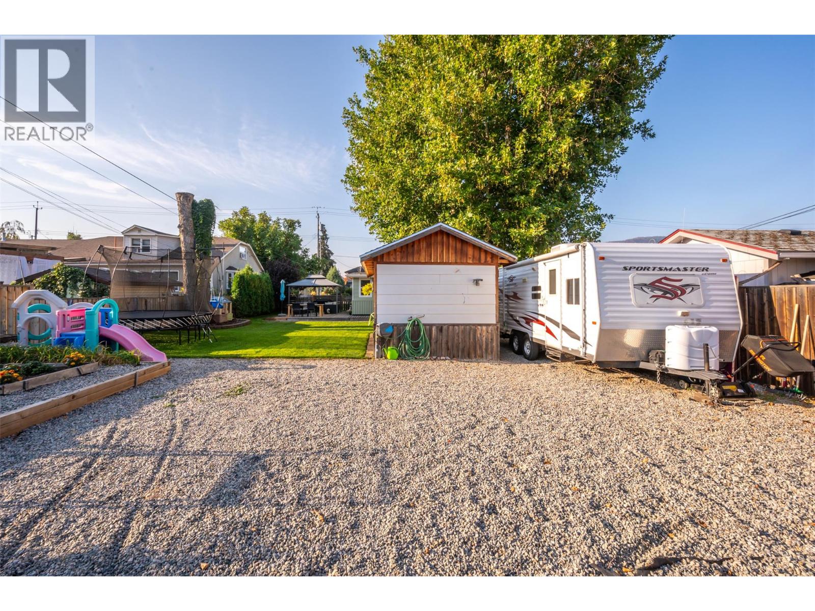 Discover this charming 2-bedroom, 1-bath home that shows small can be just right. Nestled in an excellent neighbourhood just walking distance to downtown and shopping, this 811 square foot gem offers the ideal blend of comfort and location. The heart of this home shines with a beautifully renovated kitchen and bathroom, both updated in 2022 with fresh finishes and brand-new appliances that still have that new-home sparkle. Rich solid hardwood floors flow throughout, adding warmth and character to every room while creating a seamless living experience. Step outside to discover where this property truly sets itself apart. The generous lot provides ample space for outdoor enthusiasts, complete with established garden beds perfect for growing your own slice of paradise. Front and back irrigation systems keep everything lush with minimal effort, while the expansive recreational vehicle parking area includes an on-site sanitation dump for ultimate convenience or build your carriage house for income potential. Practical features abound with off-street parking accessible through the back alley, ensuring you'll never circle the block searching for a spot. Located within walking distance of downtown, school and shopping, this home puts you at the center of community life. Whether you're downsizing, starting out, or seeking a low-maintenance lifestyle without sacrificing space or location, this meticulously maintained property delivers on all fronts with a touch of small-town charm. (id:47466)