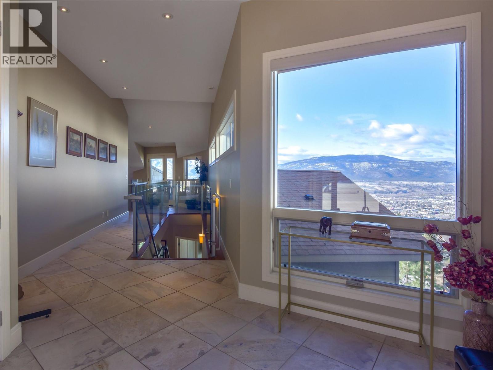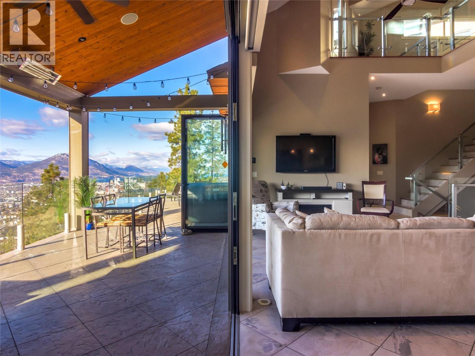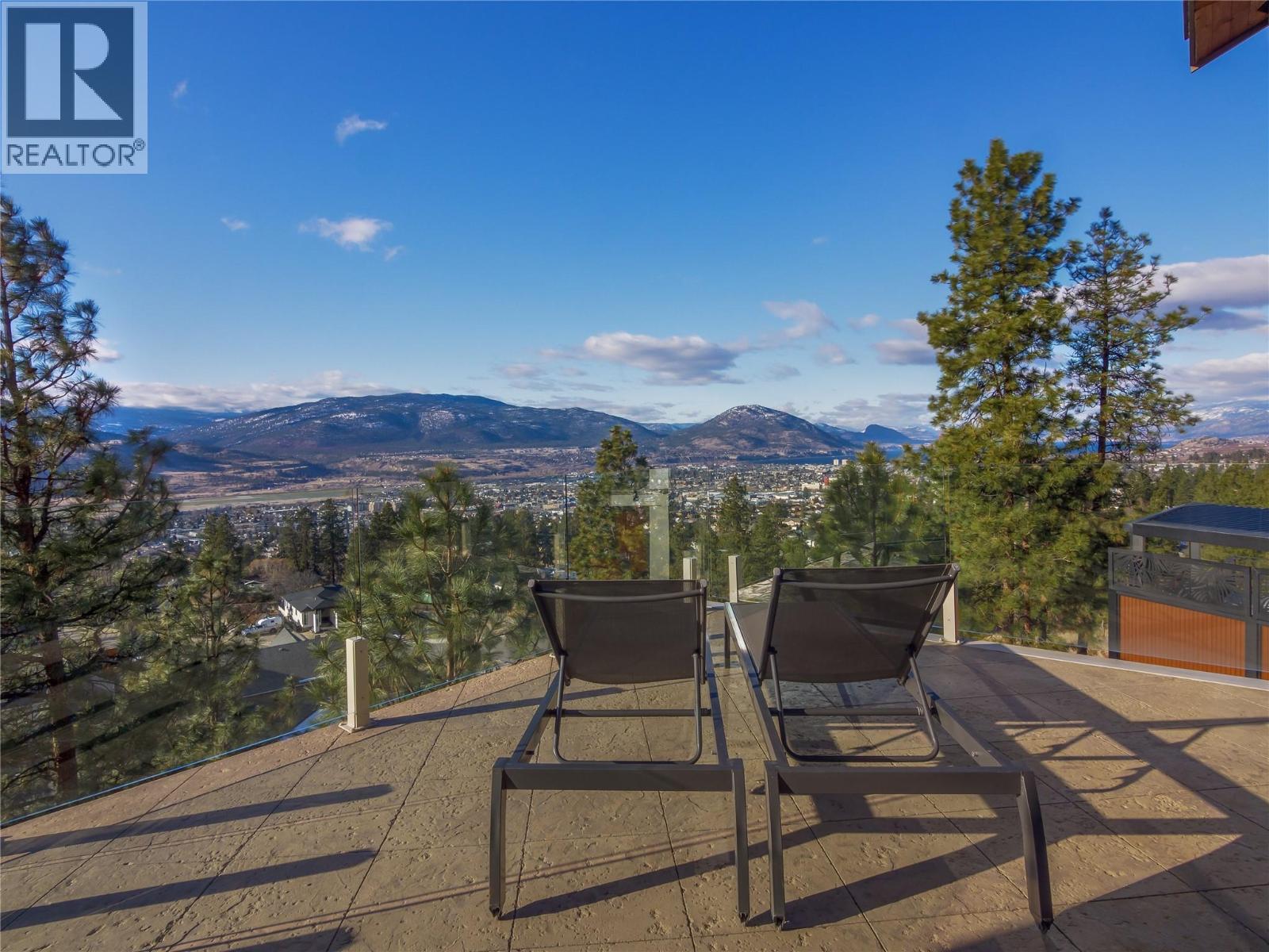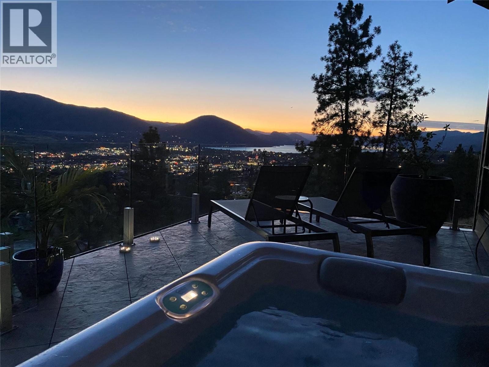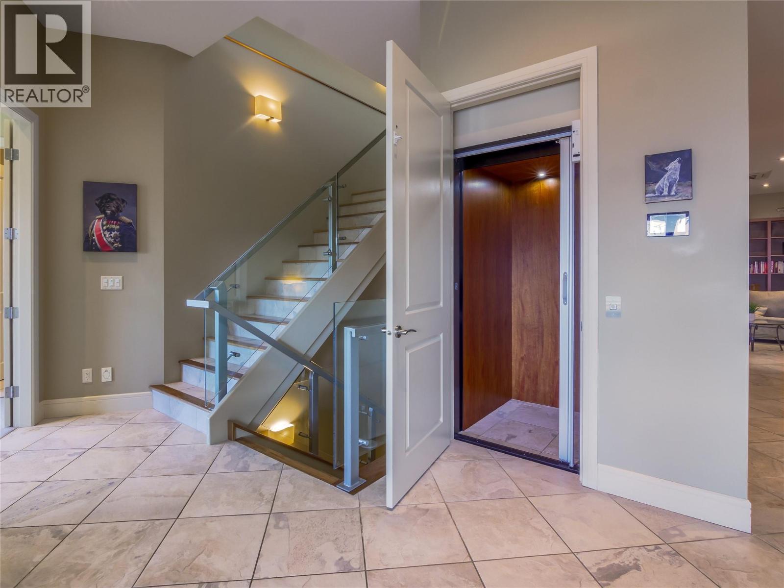 CLICK VIDEO. Welcome to an unparalleled oasis of luxury in the highly sought out Wiltse area where elegance meets breathtaking natural beauty. This extraordinary lakeview estate spans over 3800 square feet of meticulously crafted living space. The heart of the home is the expansive living room, adorned with beautiful accordion doors that lead you onto the deck, seamlessly expanding the space and blending the indoors with the breathtaking outdoors that overlook the mountains and both Okanagan Lake and Skaha Lake. Wheelchair friendly and RV hookup. Enjoy the library that includes built-in bookshelves and a wine rack. The exquisite gourmet kitchen, featuring granite countertops, dual built-in ovens, a sleek gas stove, and a pantry with custom pull-out drawers – a culinary masterpiece designed for both function and lavishness. For your convenience, this home features a private elevator that stops on all three floors. Indulge in the ultimate leisure experience in your theatre room, or rejuvenate in the luxurious steam room, sauna, or hot tub. With heated floors throughout, comfort meets luxury in every corner of this home. Even daily routines become a pleasure in the thoughtfully designed laundry room. Each of the four spacious bedrooms offers a serene sanctuary, while six appointed bathrooms provide a touch of luxury at every turn. The fully finished basement is perfect for guests, in-laws or a nanny suite with it’s own bedroom, bathroom and kitchenette. Call 250-488-9339 (id:47466)