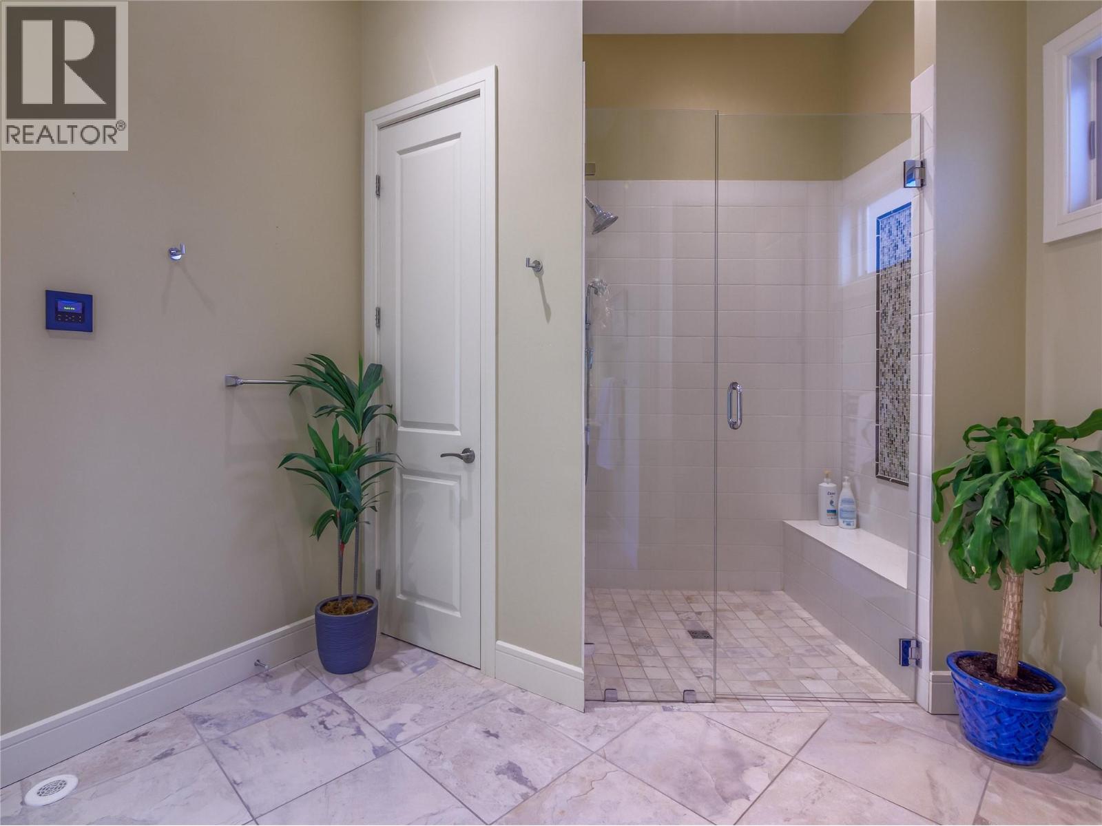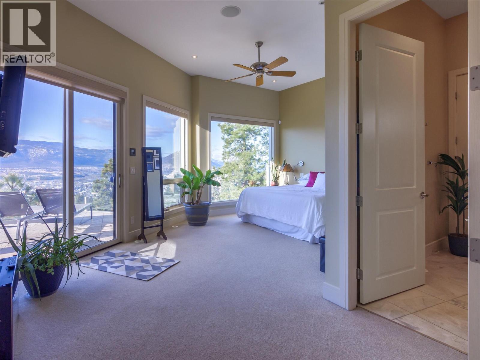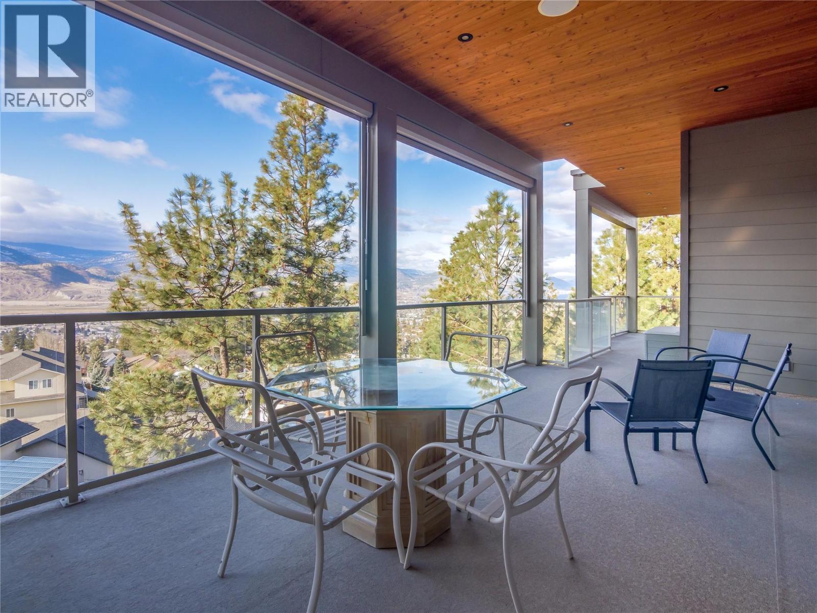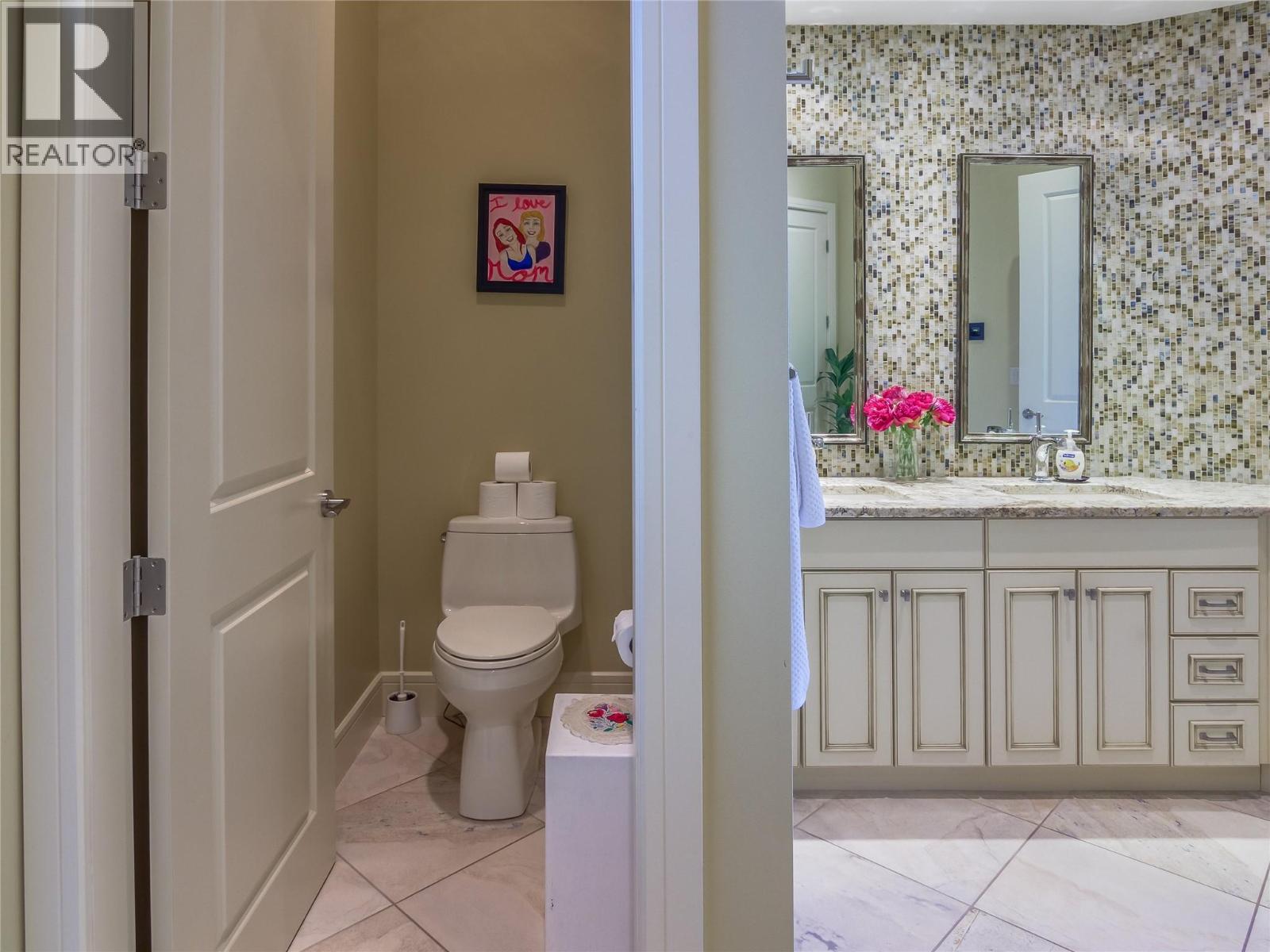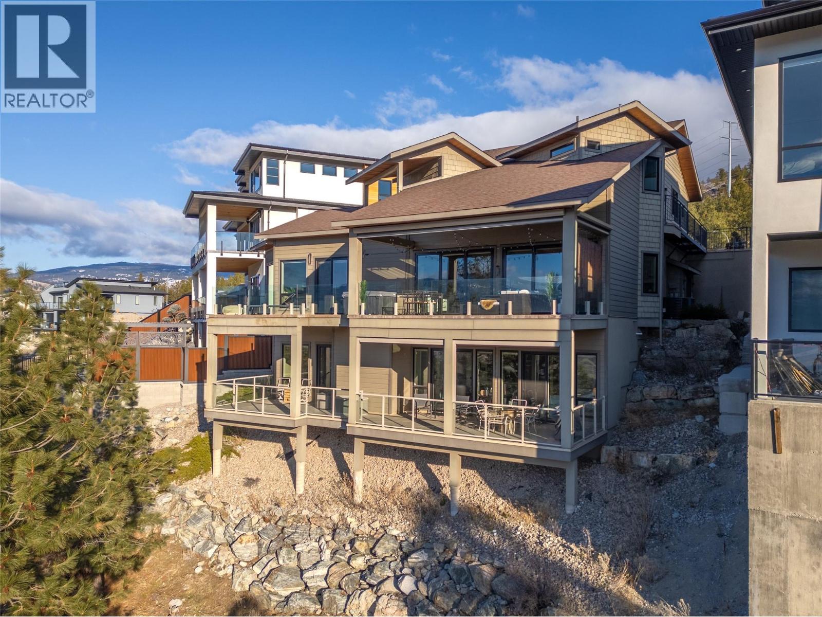 CLICK VIDEO. Welcome to an unparalleled oasis of luxury in the highly sought out Wiltse area where elegance meets breathtaking natural beauty. This extraordinary lakeview estate spans over 3800 square feet of meticulously crafted living space. The heart of the home is the expansive living room, adorned with beautiful accordion doors that lead you onto the deck, seamlessly expanding the space and blending the indoors with the breathtaking outdoors that overlook the mountains and both Okanagan Lake and Skaha Lake. Wheelchair friendly and RV hookup. Enjoy the library that includes built-in bookshelves and a wine rack. The exquisite gourmet kitchen, featuring granite countertops, dual built-in ovens, a sleek gas stove, and a pantry with custom pull-out drawers – a culinary masterpiece designed for both function and lavishness. For your convenience, this home features a private elevator that stops on all three floors. Indulge in the ultimate leisure experience in your theatre room, or rejuvenate in the luxurious steam room, sauna, or hot tub. With heated floors throughout, comfort meets luxury in every corner of this home. Even daily routines become a pleasure in the thoughtfully designed laundry room. Each of the four spacious bedrooms offers a serene sanctuary, while six appointed bathrooms provide a touch of luxury at every turn. The fully finished basement is perfect for guests, in-laws or a nanny suite with it’s own bedroom, bathroom and kitchenette. Call 250-488-9339 (id:47466)