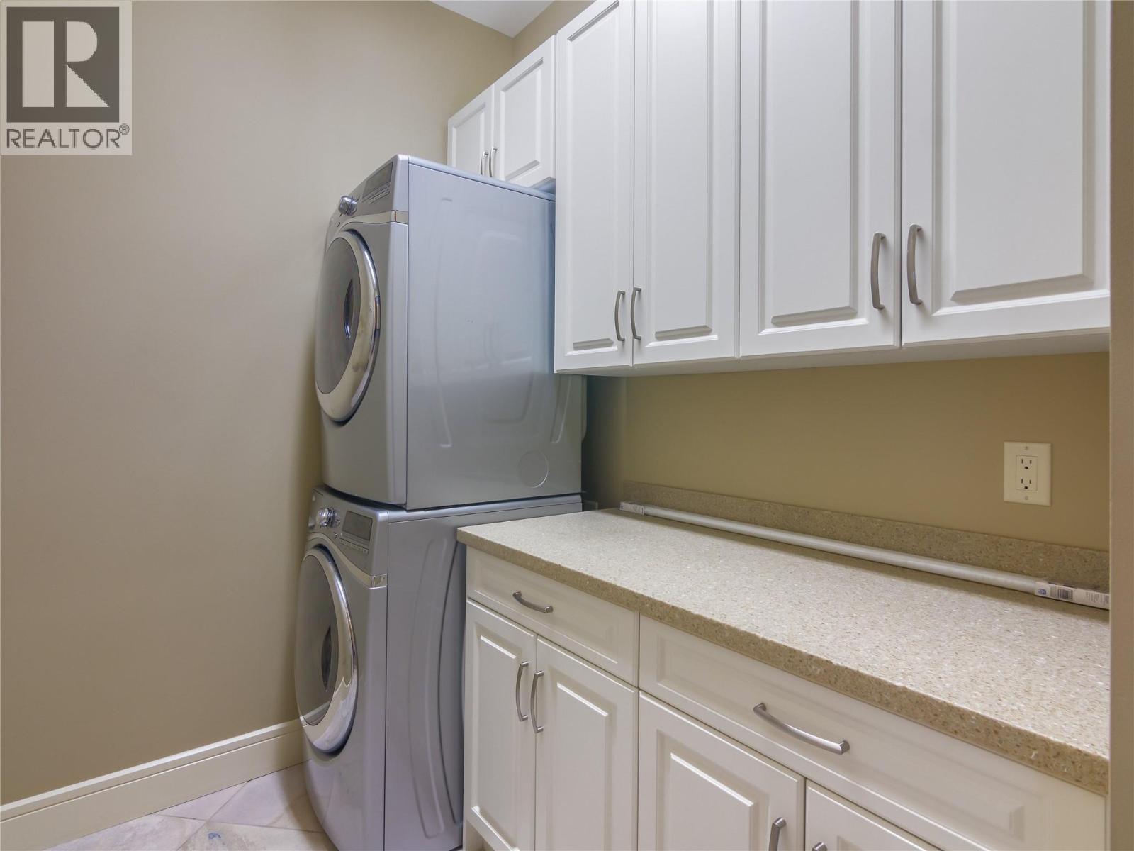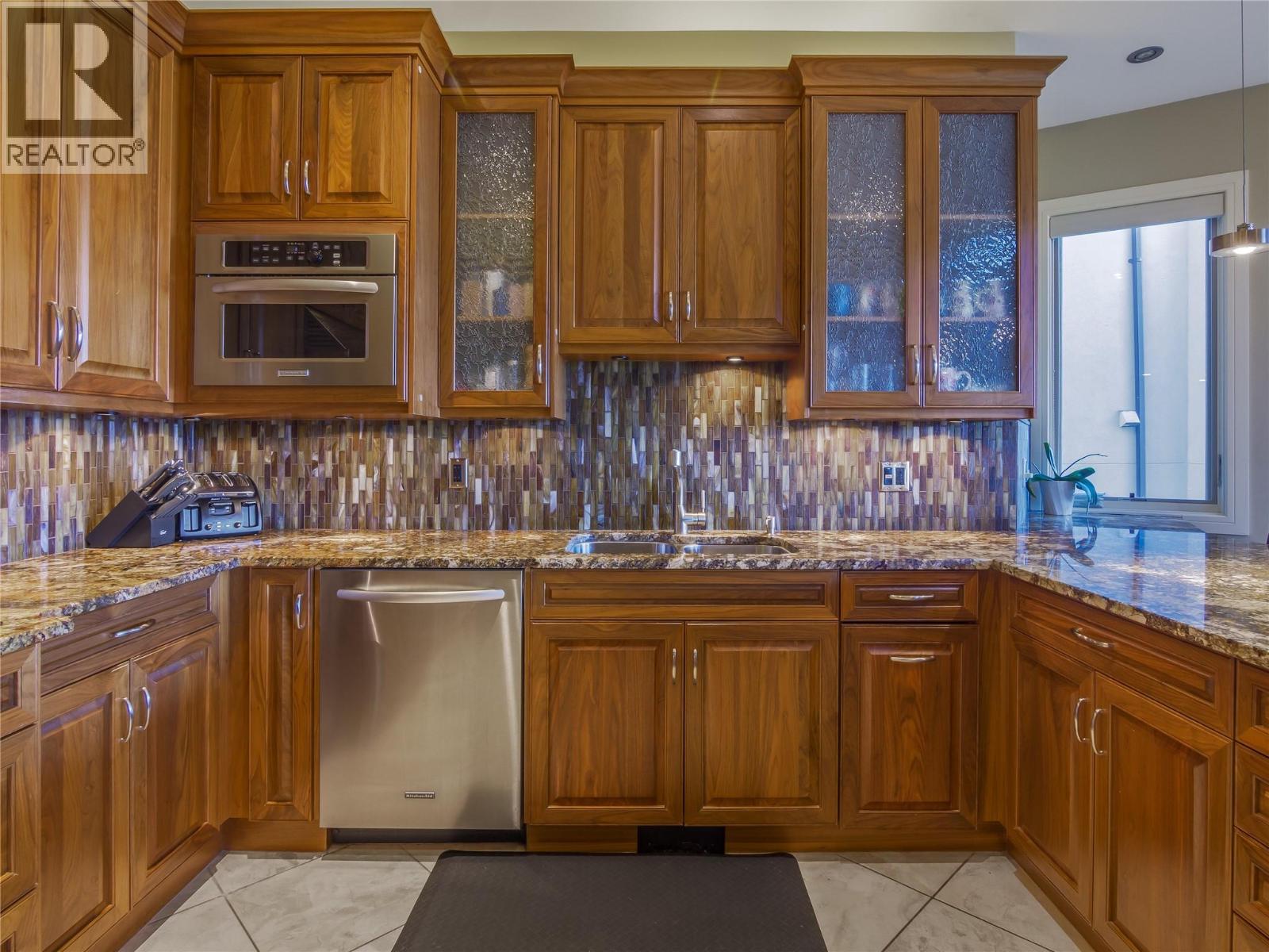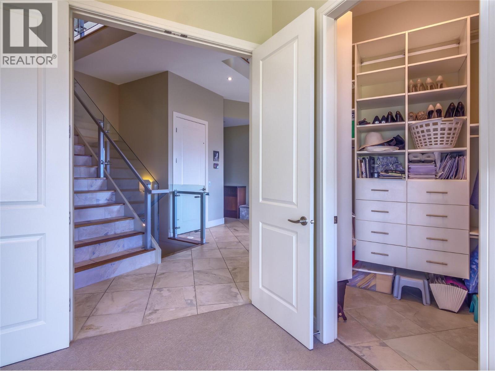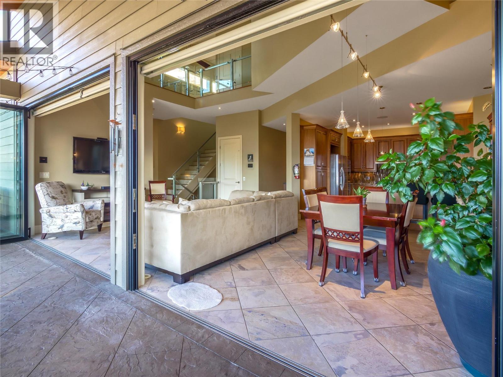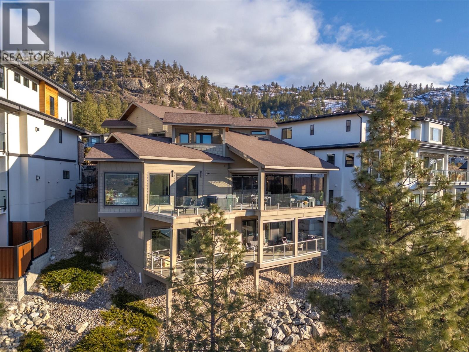 CLICK VIDEO. Welcome to an unparalleled oasis of luxury in the highly sought out Wiltse area where elegance meets breathtaking natural beauty. This extraordinary lakeview estate spans over 3800 square feet of meticulously crafted living space. The heart of the home is the expansive living room, adorned with beautiful accordion doors that lead you onto the deck, seamlessly expanding the space and blending the indoors with the breathtaking outdoors that overlook the mountains and both Okanagan Lake and Skaha Lake. Wheelchair friendly and RV hookup. Enjoy the library that includes built-in bookshelves and a wine rack. The exquisite gourmet kitchen, featuring granite countertops, dual built-in ovens, a sleek gas stove, and a pantry with custom pull-out drawers – a culinary masterpiece designed for both function and lavishness. For your convenience, this home features a private elevator that stops on all three floors. Indulge in the ultimate leisure experience in your theatre room, or rejuvenate in the luxurious steam room, sauna, or hot tub. With heated floors throughout, comfort meets luxury in every corner of this home. Even daily routines become a pleasure in the thoughtfully designed laundry room. Each of the four spacious bedrooms offers a serene sanctuary, while six appointed bathrooms provide a touch of luxury at every turn. The fully finished basement is perfect for guests, in-laws or a nanny suite with it’s own bedroom, bathroom and kitchenette. Call 250-488-9339 (id:47466)