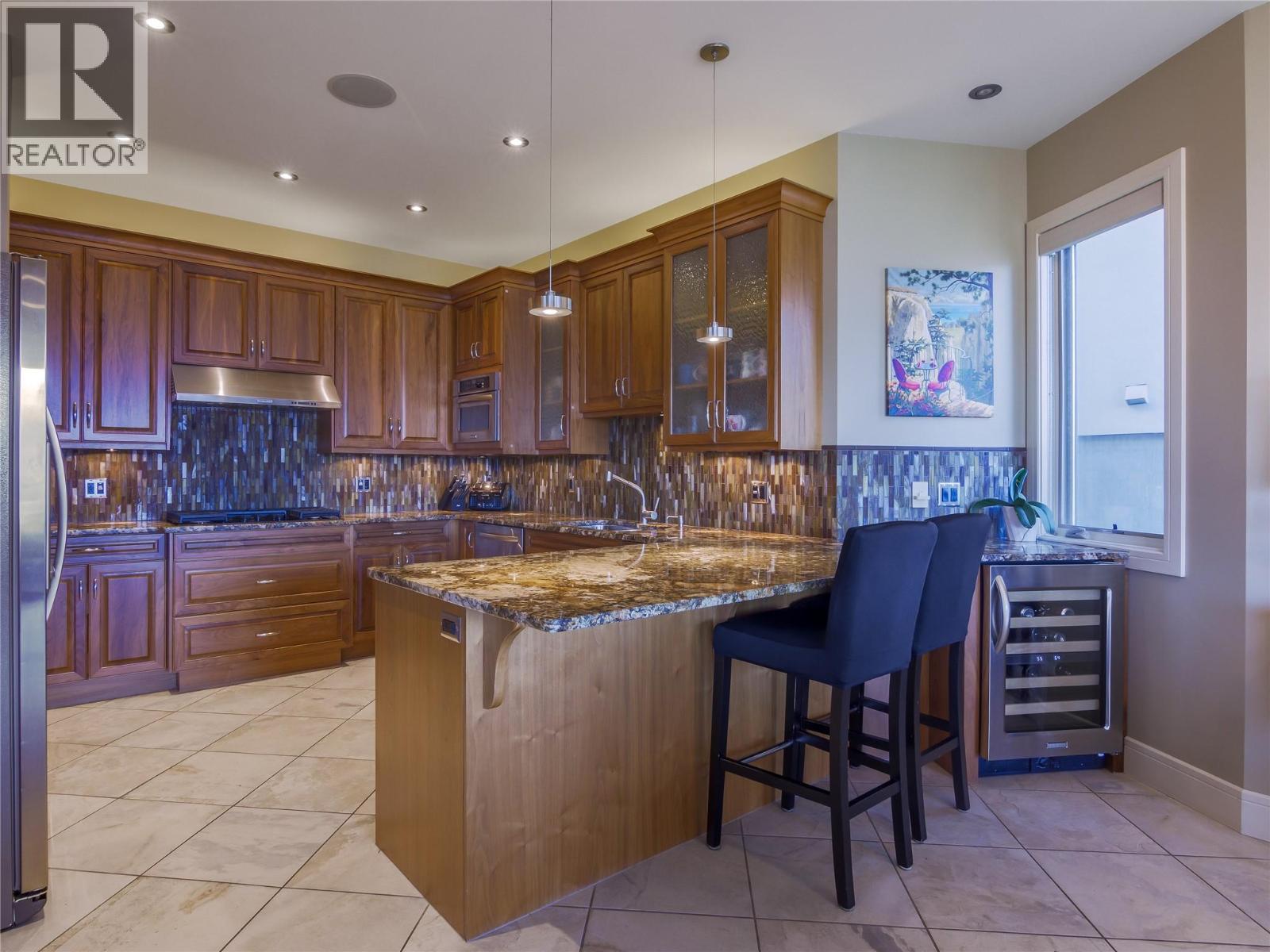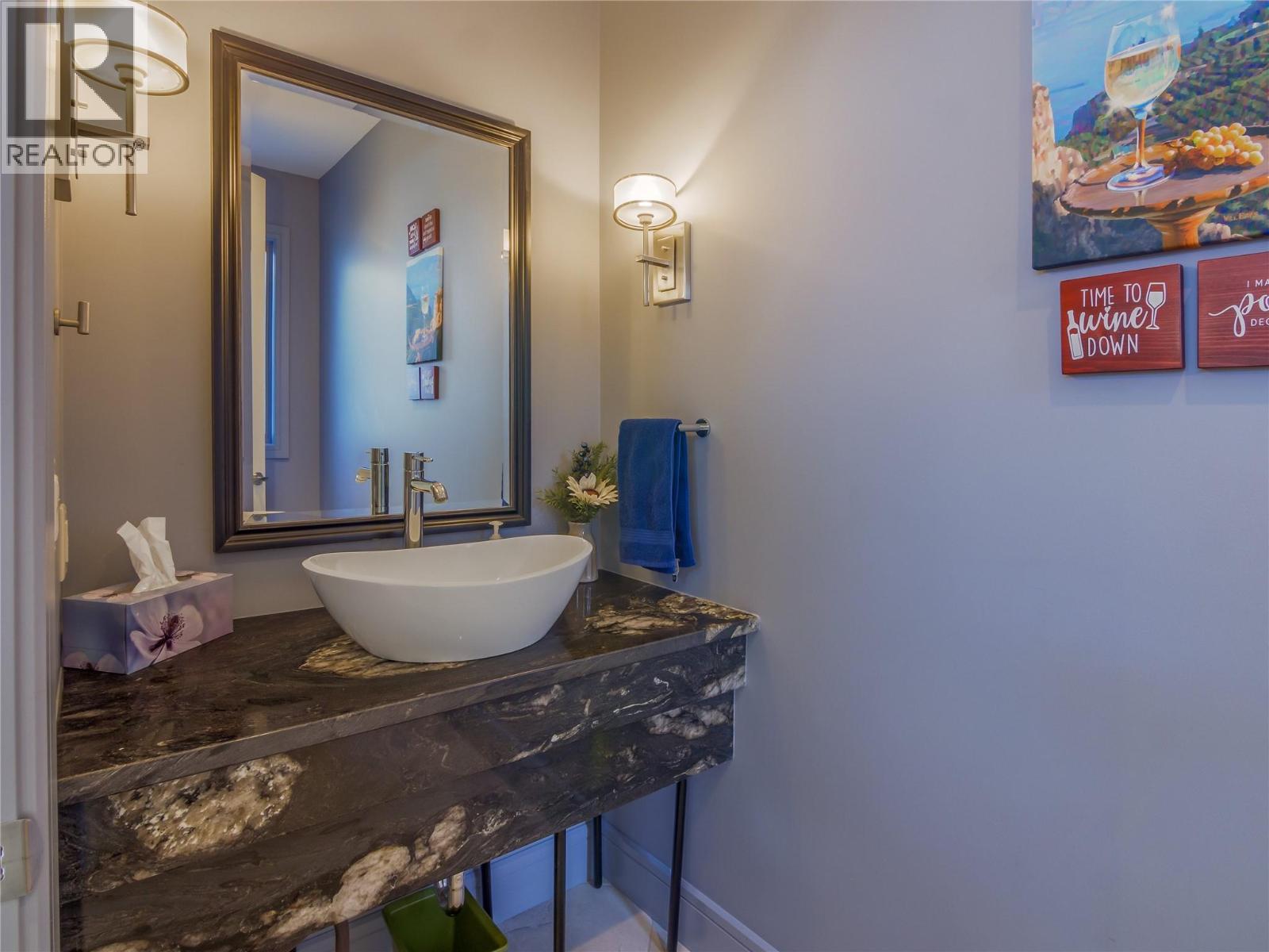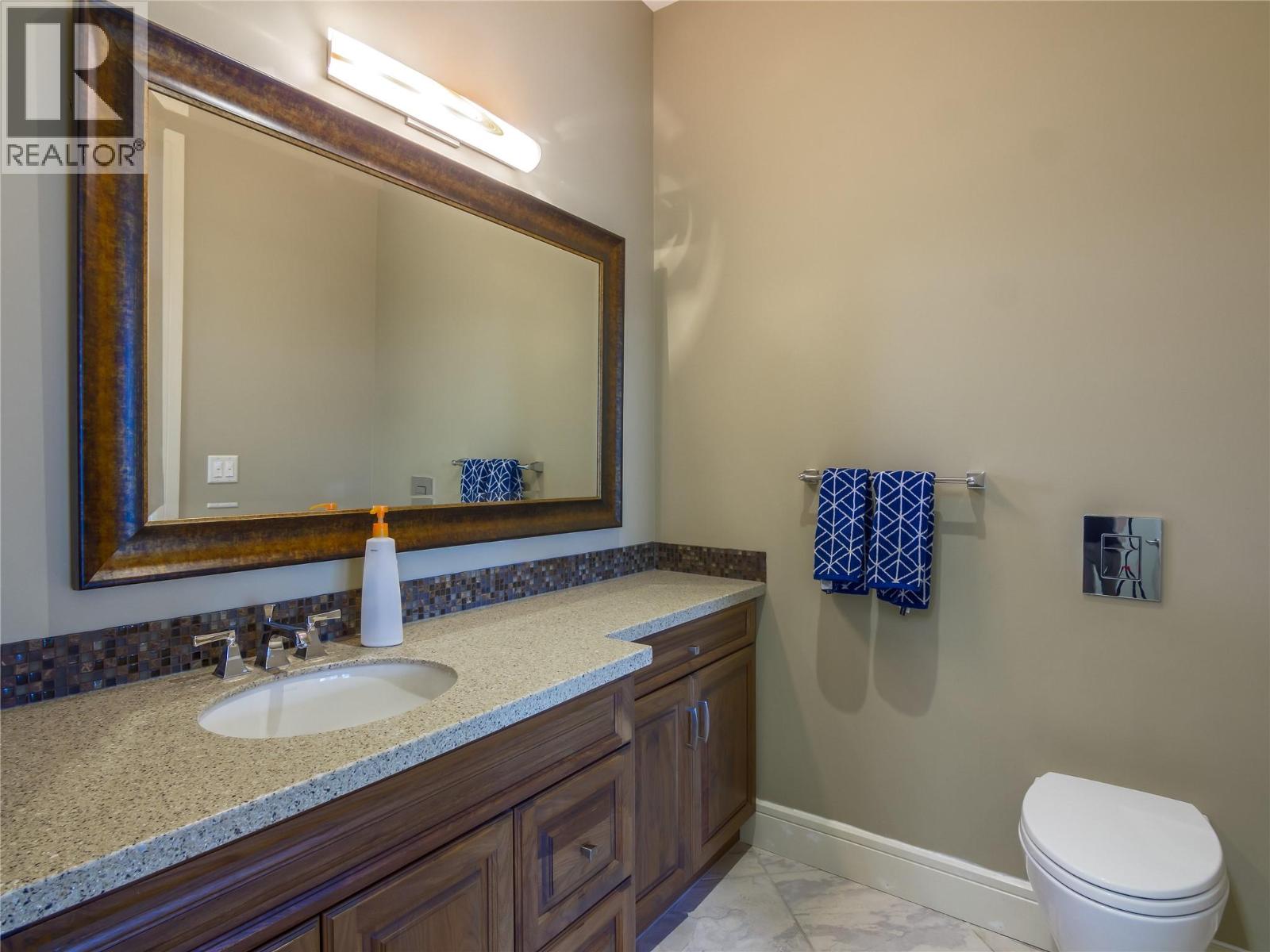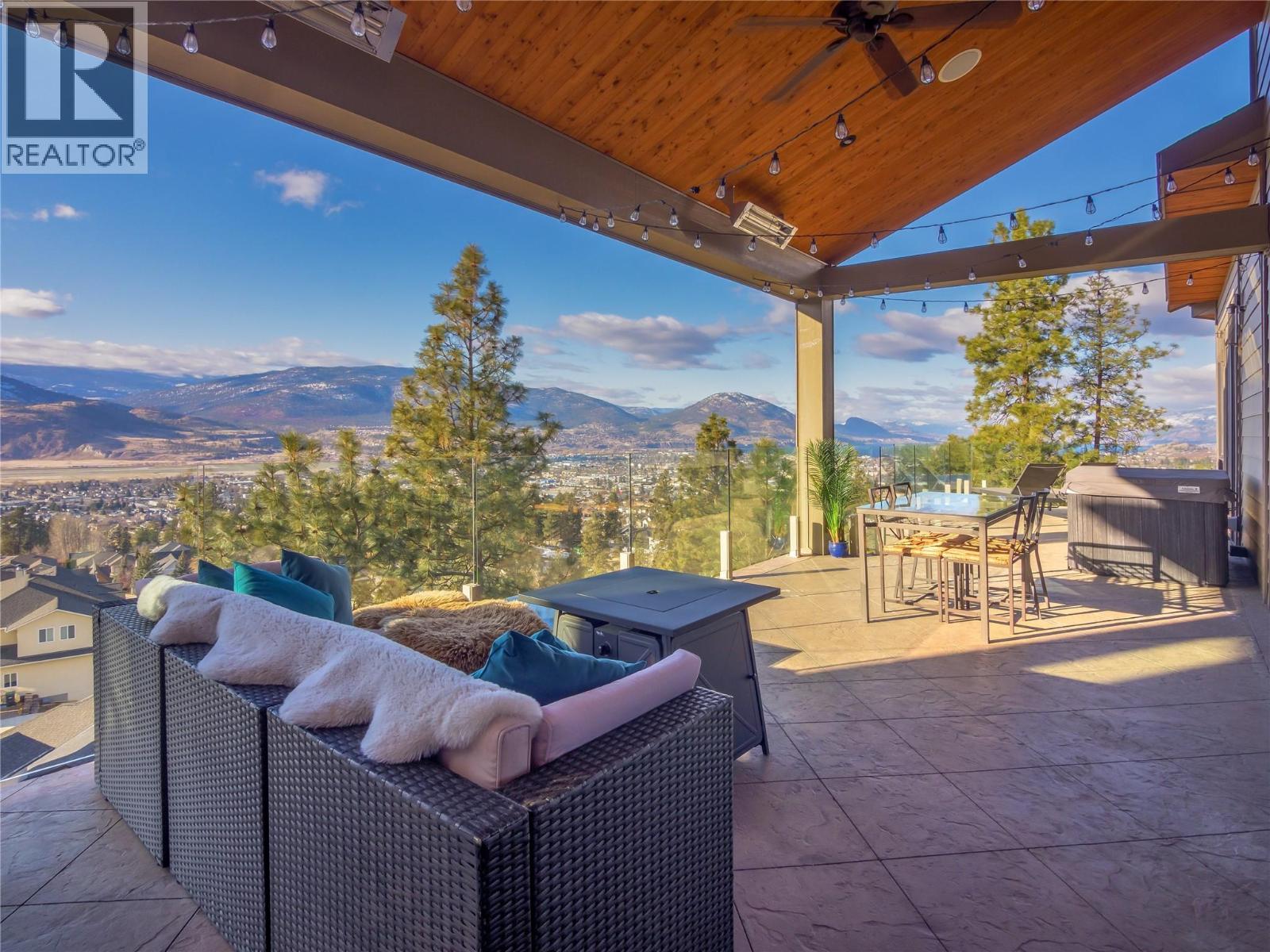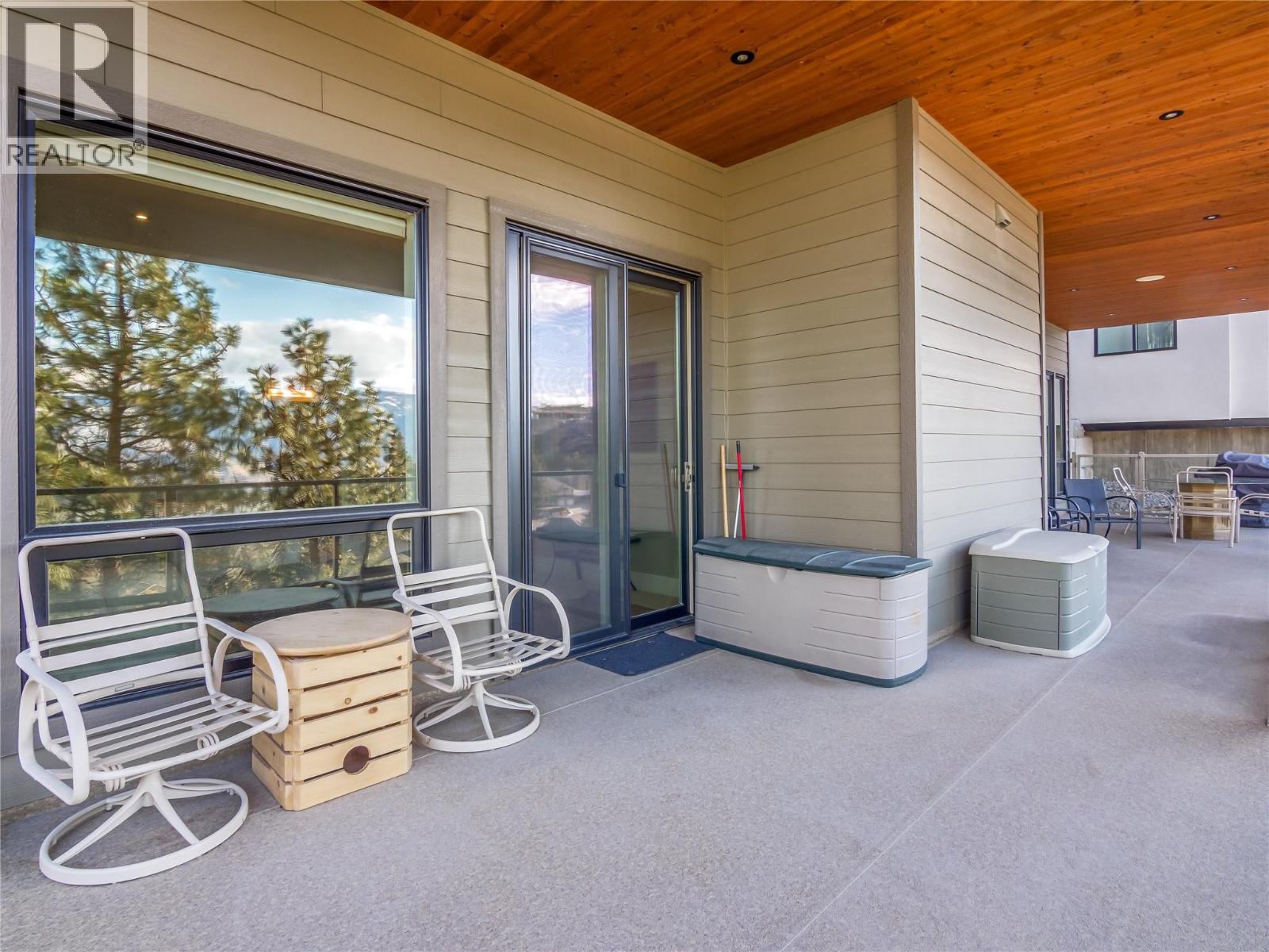 CLICK VIDEO. Welcome to an unparalleled oasis of luxury in the highly sought out Wiltse area where elegance meets breathtaking natural beauty. This extraordinary lakeview estate spans over 3800 square feet of meticulously crafted living space. The heart of the home is the expansive living room, adorned with beautiful accordion doors that lead you onto the deck, seamlessly expanding the space and blending the indoors with the breathtaking outdoors that overlook the mountains and both Okanagan Lake and Skaha Lake. Wheelchair friendly and RV hookup. Enjoy the library that includes built-in bookshelves and a wine rack. The exquisite gourmet kitchen, featuring granite countertops, dual built-in ovens, a sleek gas stove, and a pantry with custom pull-out drawers – a culinary masterpiece designed for both function and lavishness. For your convenience, this home features a private elevator that stops on all three floors. Indulge in the ultimate leisure experience in your theatre room, or rejuvenate in the luxurious steam room, sauna, or hot tub. With heated floors throughout, comfort meets luxury in every corner of this home. Even daily routines become a pleasure in the thoughtfully designed laundry room. Each of the four spacious bedrooms offers a serene sanctuary, while six appointed bathrooms provide a touch of luxury at every turn. The fully finished basement is perfect for guests, in-laws or a nanny suite with it’s own bedroom, bathroom and kitchenette. Call 250-488-9339 (id:47466)