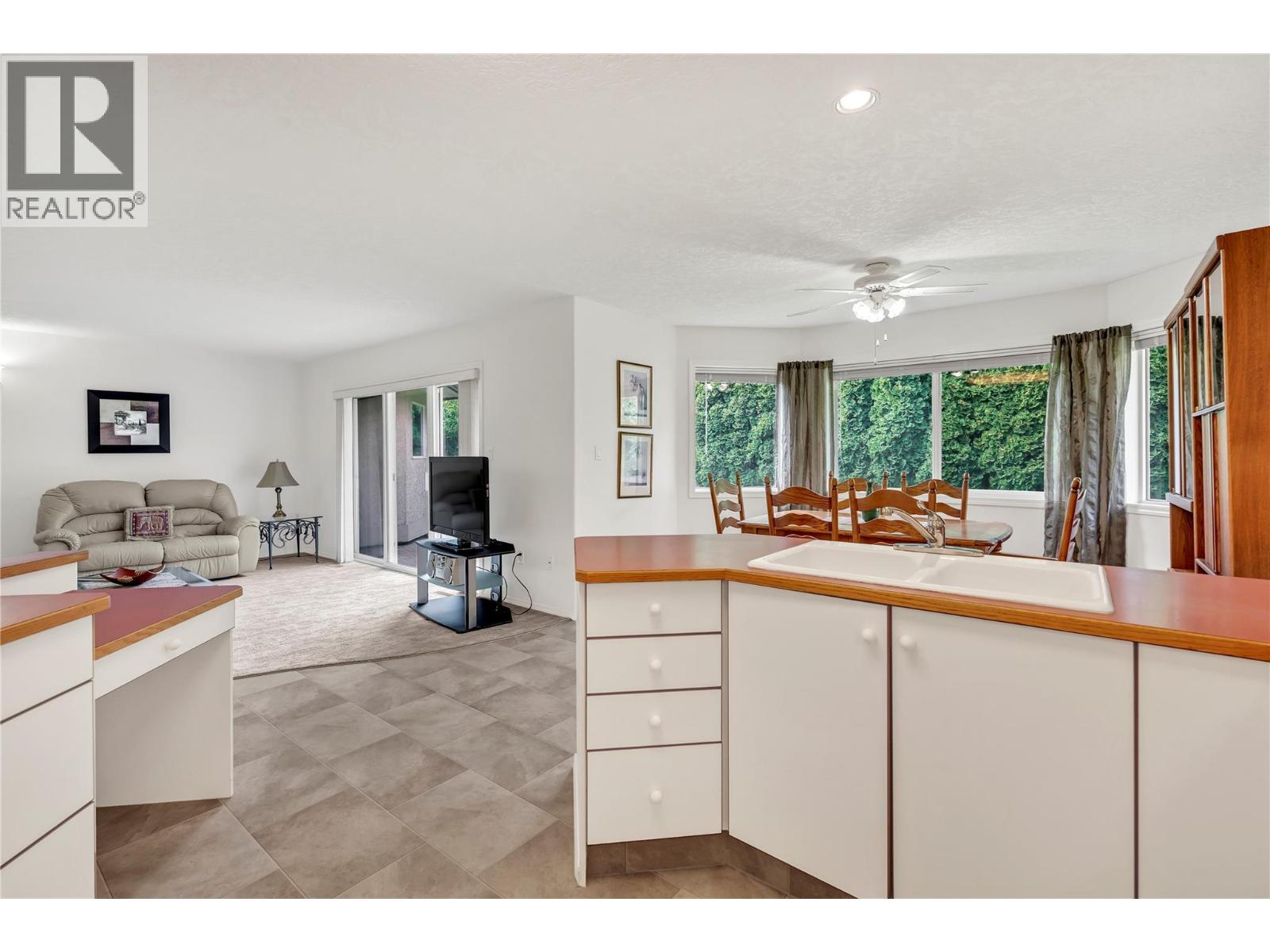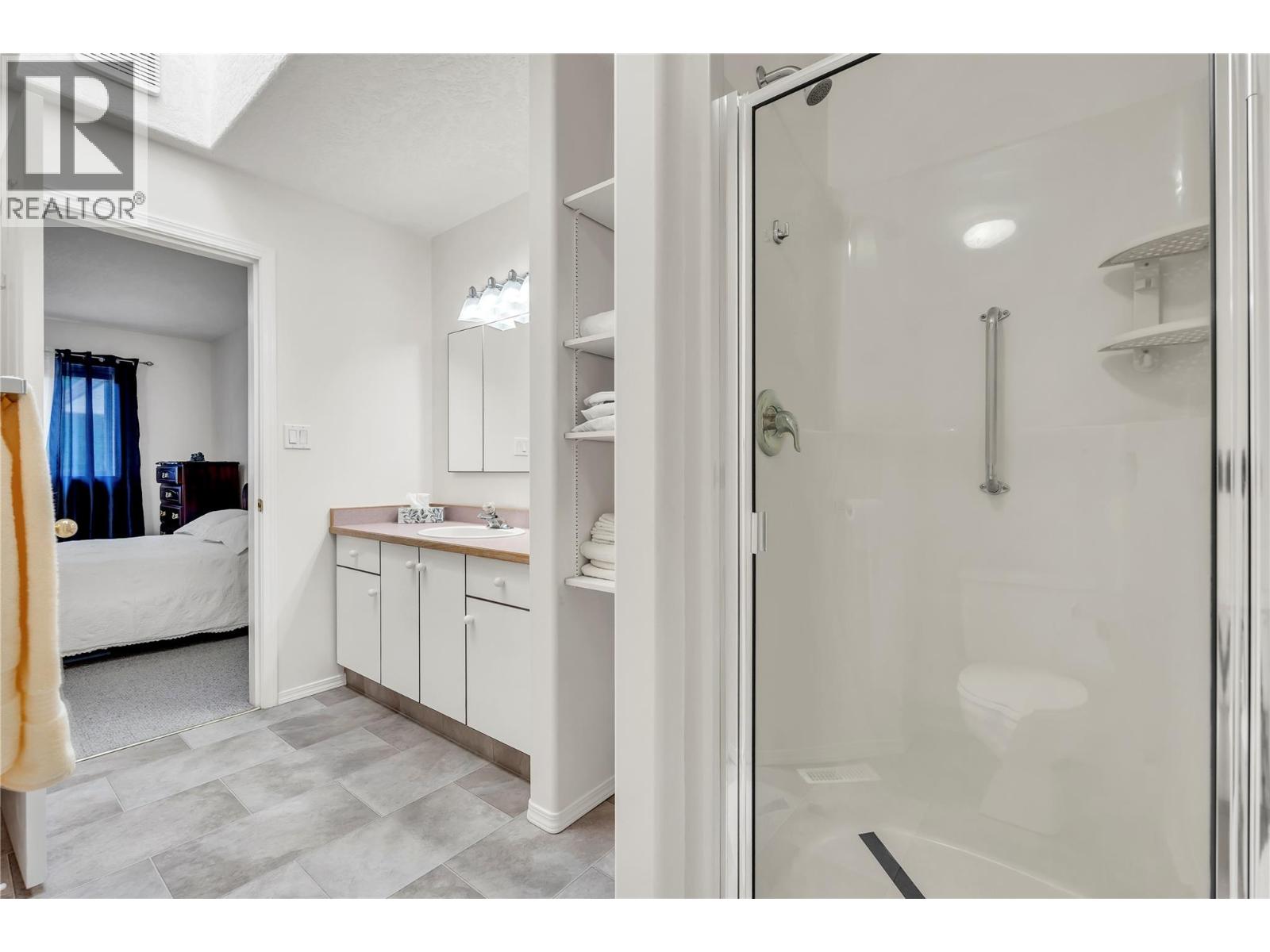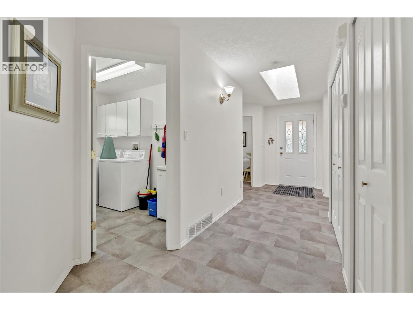 Bright, Easy-Care Living for Your Next Chapter! This lovingly maintained, level-entry end unit was designed with comfort and convenience in mind. Filled with natural light-thanks to multiple skylights-this home offers an airy, welcoming feel the moment you enter. The spacious primary suite features a walk-in closet, 3pce ensuite and skylight, while the second bedroom, with its large north-facing window, is perfect for hobbies, crafting, or welcoming overnight guests. A generous main bath with full tub/shower is also bathed in natural light. The living room's cozy natural gas fireplace and wall of windows open to a private rear patio-ideal for morning coffee or evening relaxation. The bright kitchen keeps everything within easy reach, and the dining area's large bay window frames a beautiful mountain view. With thoughtful storage throughout-including a pantry, double front closet, laundry room with freezer space, and an exterior storage locker-you'll have room for everything you need. Enjoy a friendly entry courtyard for container gardening or a BBQ, plus a complex with RV parking for those who love to travel. Perfect for snowbirds or those ready to downsize without sacrificing space or comfort. 55+, Cats and Dogs permitted with restriction. (id:47466)