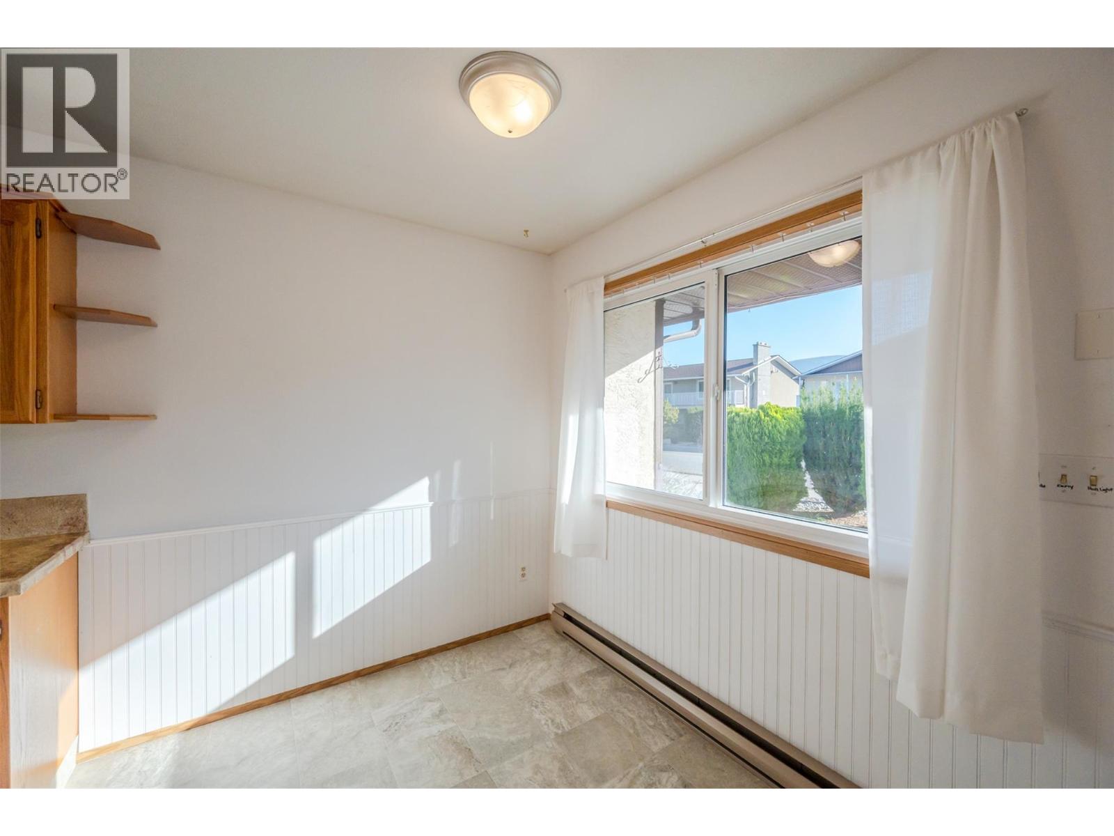 One-level townhouses are hard to find, and this clean, bright 2 bedroom, 1.5 bathroom rancher-style unit in Wilson Gardens is a rare opportunity. Offering over 1,000 sq ft of well-designed living space, the home features a large living room with a skylight and bay window that fill the space with natural light, as well as a newer ductless heat pump to keep things comfortable year-round while lowering utility costs. The kitchen is spacious and practical, with plenty of storage, generous counter space, and newer white appliances including a dishwasher. An under-sink osmosis water system adds extra convenience. Both bedrooms are tucked down the hall for privacy—the primary bedroom connects directly to the main 4-piece bathroom, while the second bedroom makes an ideal guest room, office, or hobby space. A newly added 2-piece bathroom in the laundry area, updated windows with cellular shades, newer laminate flooring, and newer washer & dryer are among the many recent upgrades. Outside, you’ll enjoy a private garden/patio area, and plenty of storage as well as a single covered carport. Wilson Gardens is a quiet, well-maintained 55+ complex in Penticton’s south end, just steps from shopping, Walmart, pharmacy, transit, parks, and Skaha Lake. One indoor cat and a small dog are allowed. Call today to arrange your private viewing—or take a self-guided Virtual Tour! (id:47466)