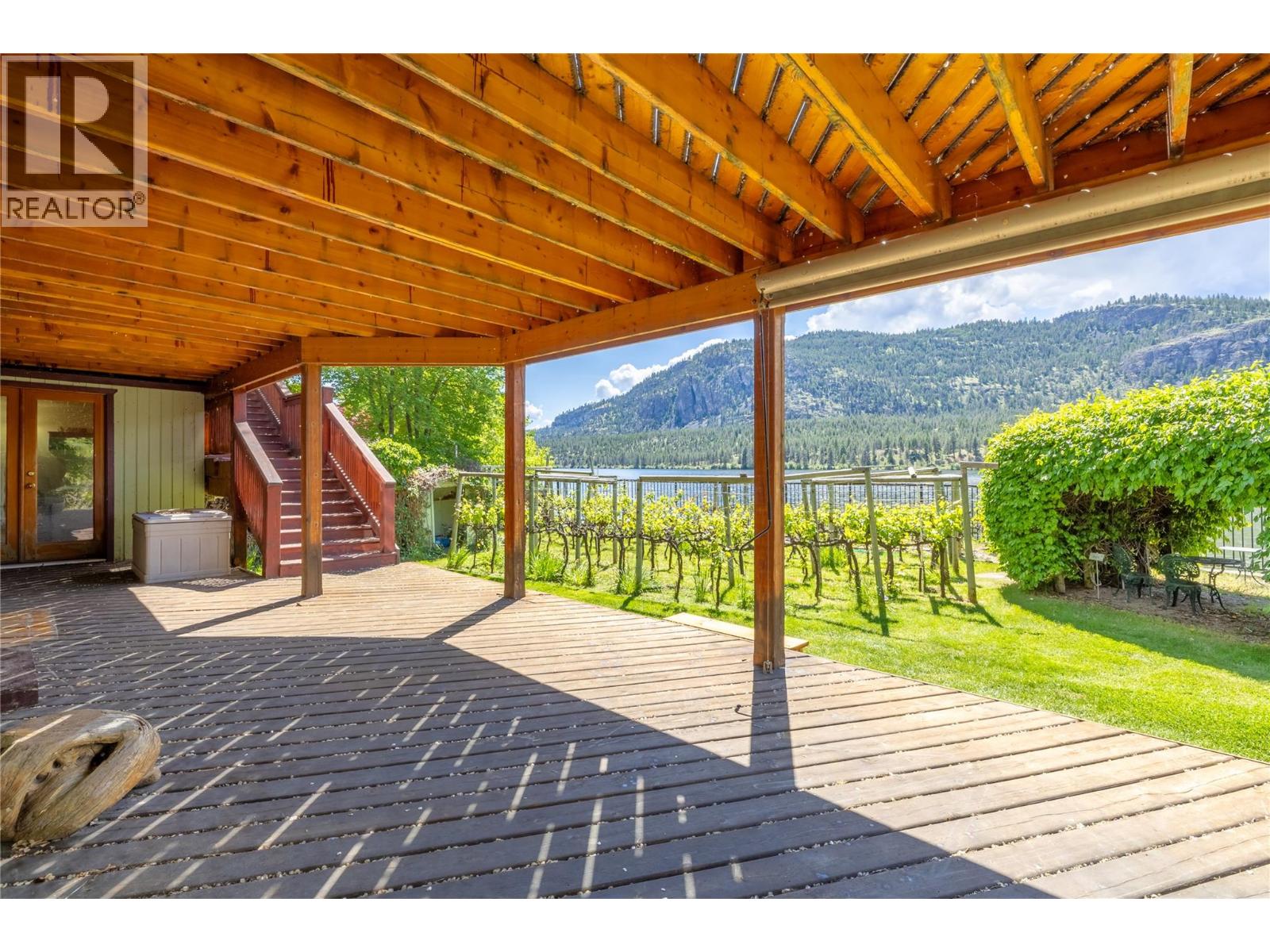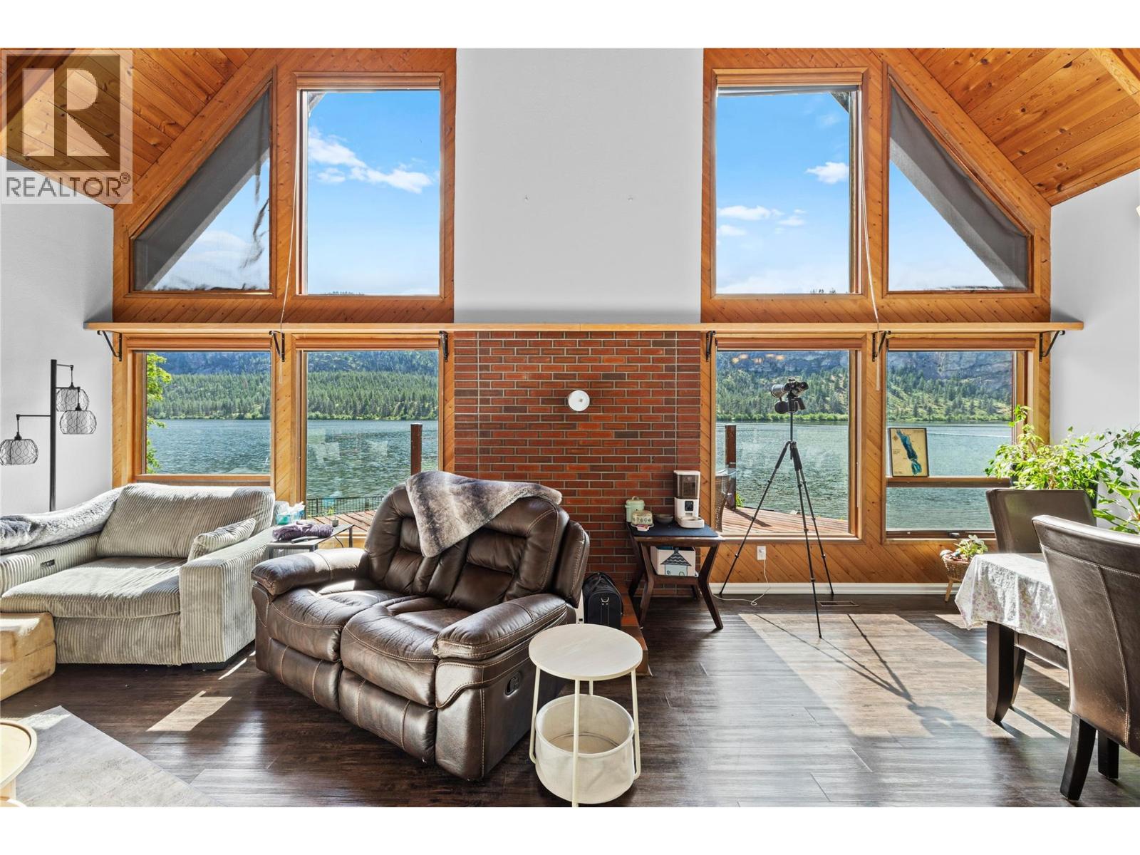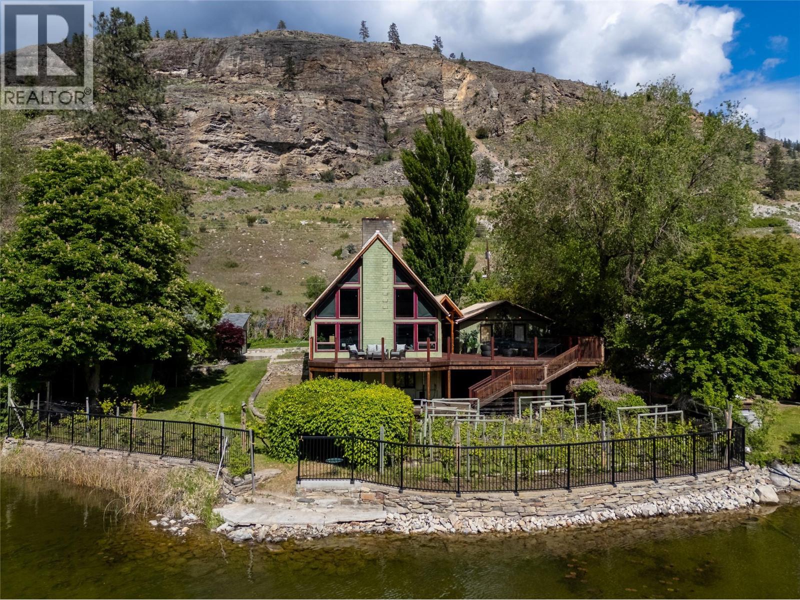 Welcome to your private lakefront retreat on the serene shores of Vaseux Lake in Okanagan Falls. This stunning 5-bedroom, 4-bathroom A-frame home offers a perfect blend of rustic charm and modern comfort, with vaulted ceilings, panoramic windows, and an airy open-concept design that fills the home with natural light and captures breathtaking lake and mountain views. Spanning over 3,200 sq ft, the home features a spacious layout ideal for entertaining or multigenerational living. The master suite and main living areas offer unobstructed views of the lake, creating a seamless indoor-outdoor connection and year-round tranquility. Step outside to a massive wrap-around deck perfect for alfresco dining, gatherings, or simply soaking in the peaceful surroundings. With approx. 100 feet of shoreline, this rare waterfront property offers direct access to one of the Okanagan’s most pristine, non-motorized lakes ideal for paddleboarding, kayaking, and swimming. Recent upgrades include a new heat pump, hot water tank, septic field, lake-facing windows, updated flooring, fresh paint, lighting, a refinished upper deck, and new stainless steel appliances. Located minutes from Okanagan Falls and award-winning wineries, with nearby hiking and birdwatching in this protected migratory sanctuary this home is more than a residence; it's a lifestyle surrounded by nature, serenity, and timeless views. (id:47466)