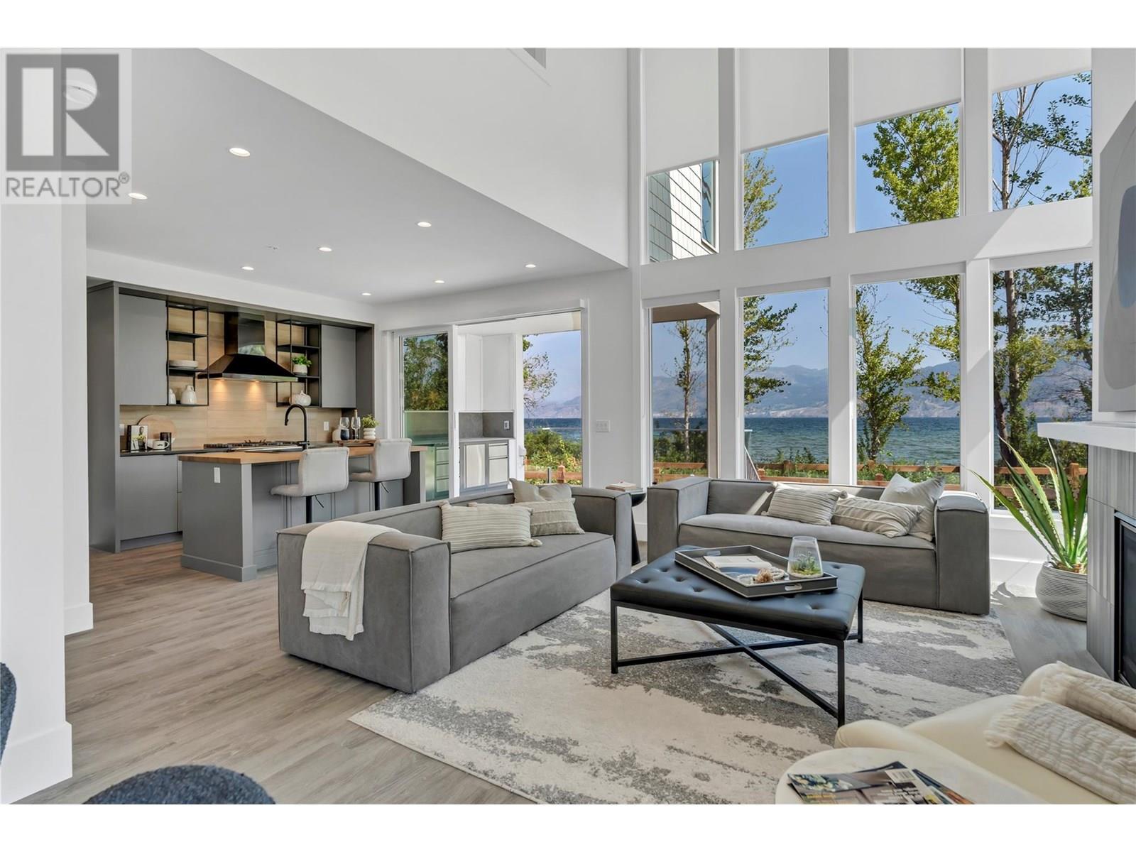 Welcome to Lakehouse! This 4-bedroom, 3-bath luxury brand new home is move-in ready and waiting. Lakehouse is a boutique collection of just 45 exclusive residences nestled directly on the shores of Okanagan Lake in Trout Creek, one of the South Okanagan’s most coveted waterfront communities. This rare offering is not just a lakeview—it’s true lakeside living, with private access and panoramic water views from your own backyard. This spacious, thoughtfully designed home blends elevated architecture with everyday comfort. Soaring ceilings and floor-to-ceiling windows flood the interiors with natural light, while rich wood accents, custom European cabinetry, quartz countertops, and premium stainless steel appliances create a sense of refined luxury. Designed with space and flow in mind, this layout offers ideal multigenerational living—giving everyone room to relax, connect, and entertain. Enjoy your private outdoor kitchen, plus world-class amenities including a pool, hot tub, gym, wet bar, fireside lounge deck, and more. Whether you’re hosting the whole family or escaping to your forever summer, this is the kind of home you hold onto for life. Price is plus GST. (id:47466)