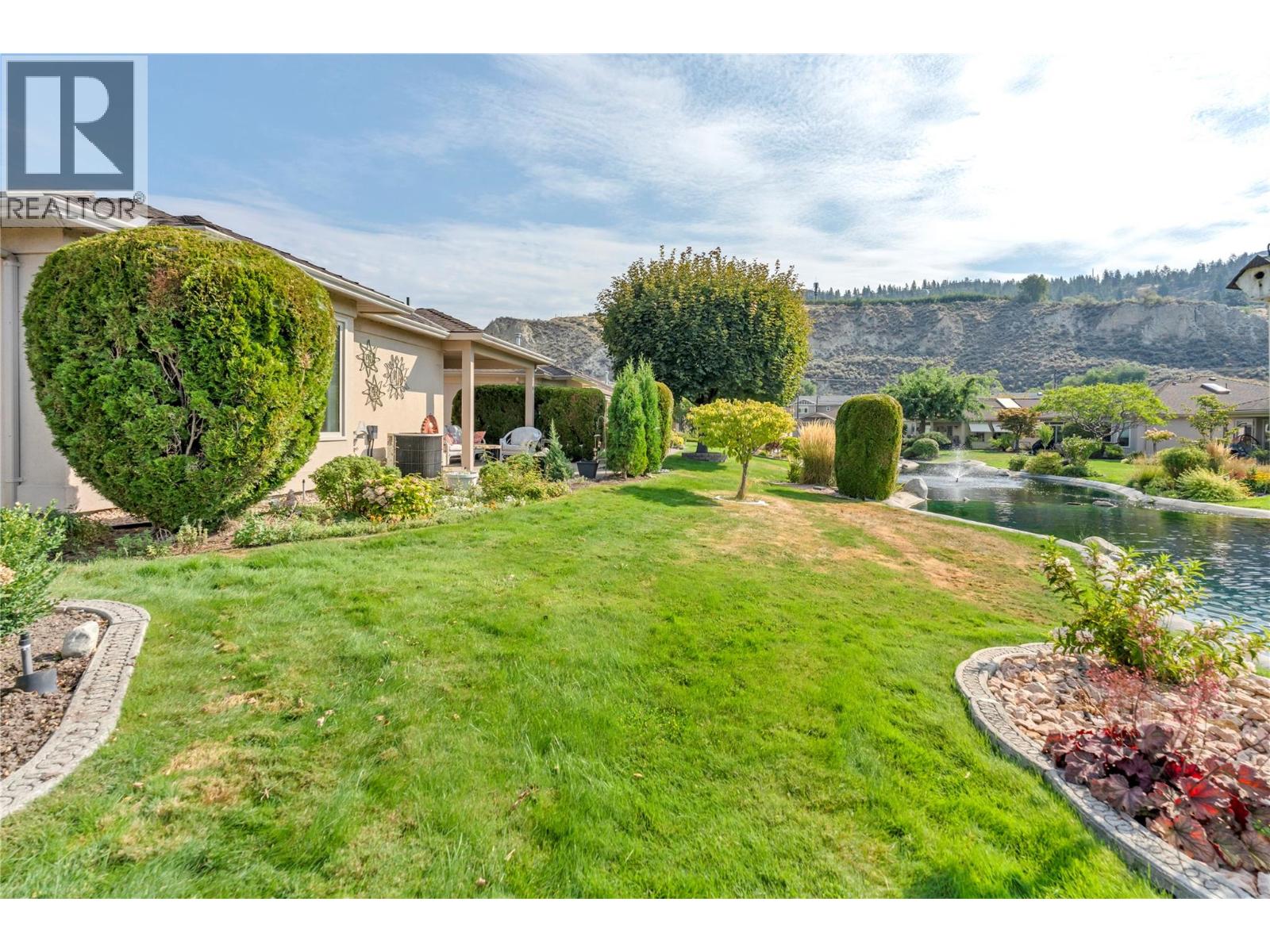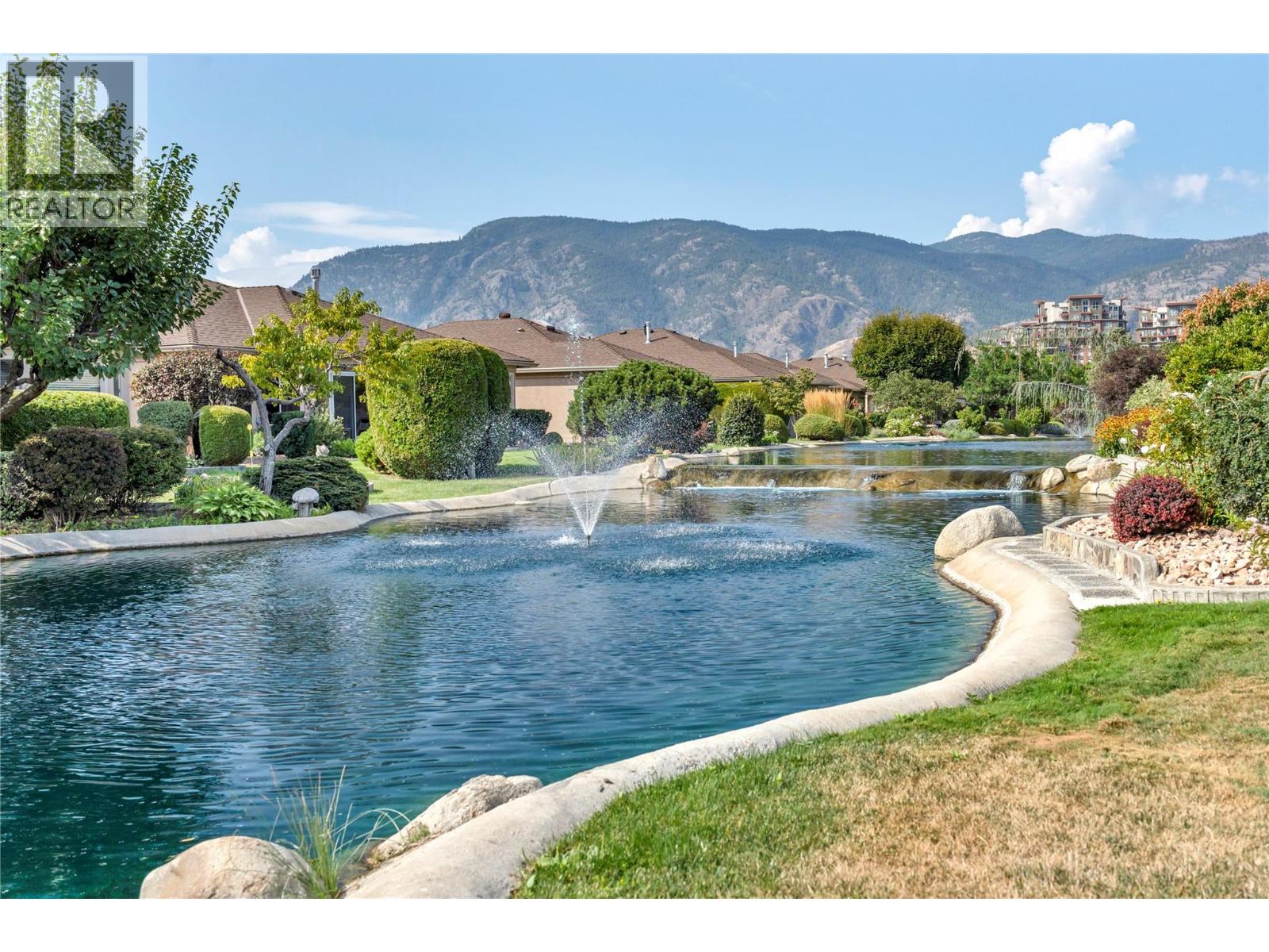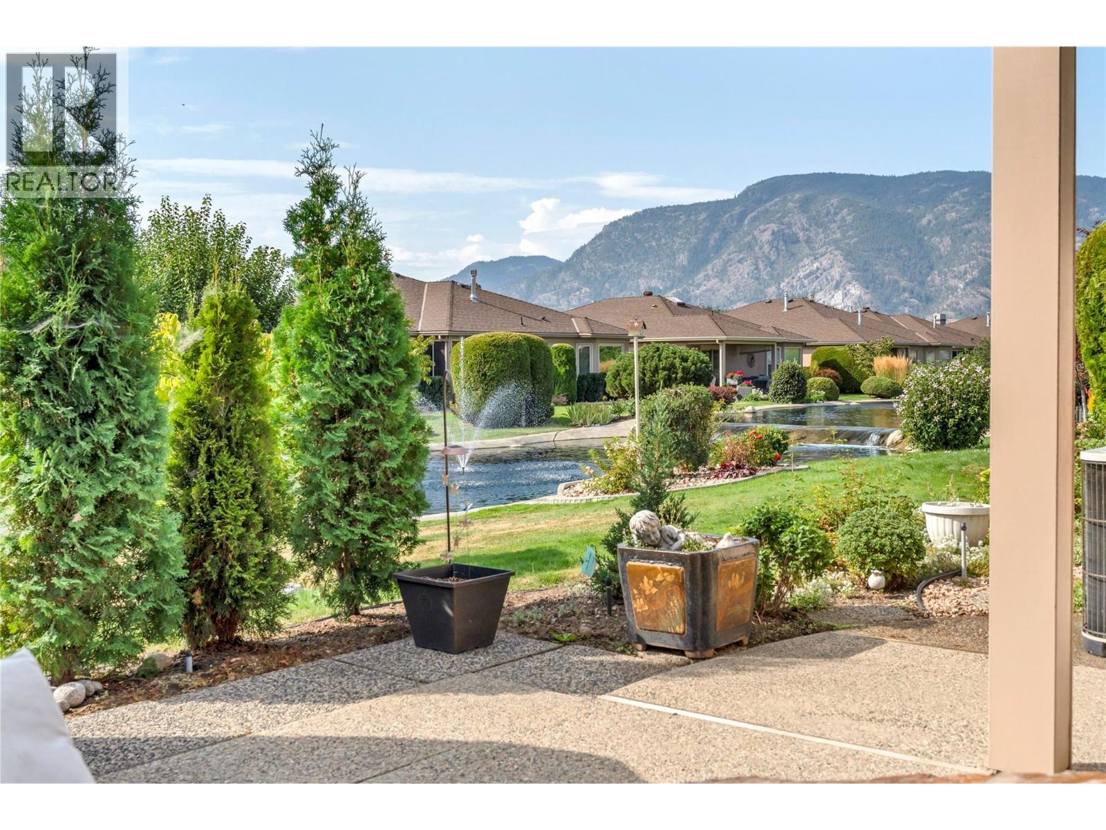 ON THE WATER IN SANDBRIDGE! This 1348 sq ft, 2 bed/2 bath home is where you want to be. Quiet location that is soothing & private, backing on the highly sought after water feature. This one level rancher is well laid out is spacious & brightened by bay windows & skylights. The main living area is roomy, warm & welcoming. The large primary suite's bay window overlooks the peaceful water feature. Roomy 4-piece ensuite. Fabulous location is walking distance to Skaha Lake & shopping. Sandbridge is a well-run strata & welcoming community. If you travel in winter, just lock up & go in this secure environment. Wonderful location, home & community, make it yours! (id:47466)