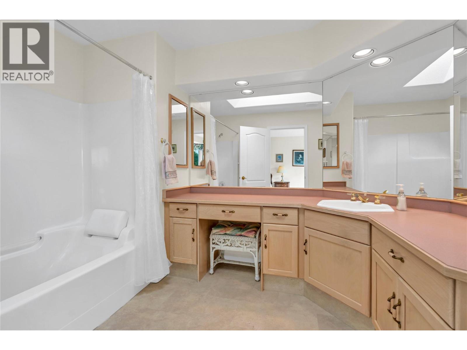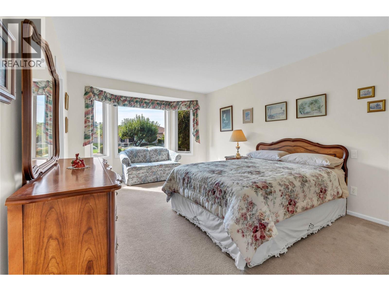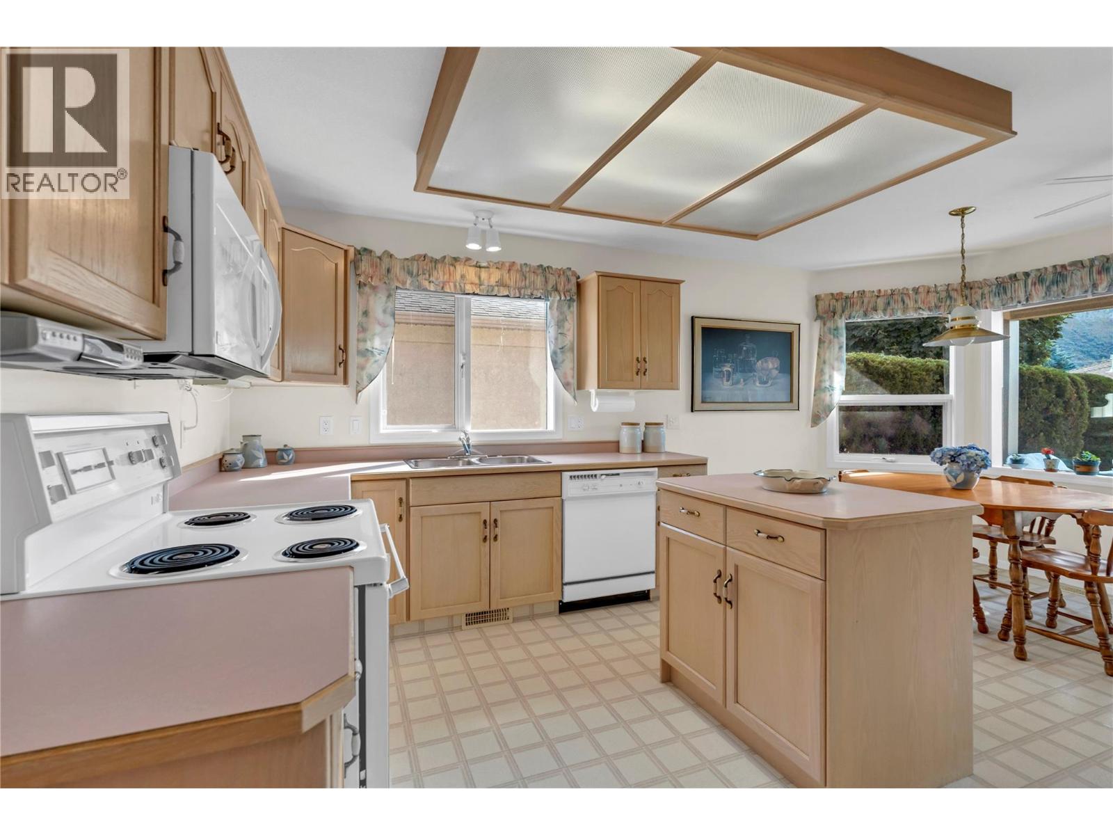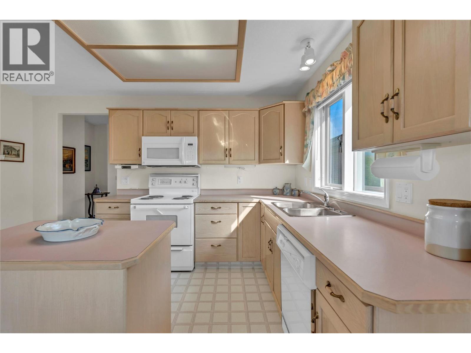 ON THE WATER IN SANDBRIDGE! This 1348 sq ft, 2 bed/2 bath home is where you want to be. Quiet location that is soothing & private, backing on the highly sought after water feature. This one level rancher is well laid out is spacious & brightened by bay windows & skylights. The main living area is roomy, warm & welcoming. The large primary suite's bay window overlooks the peaceful water feature. Roomy 4-piece ensuite. Fabulous location is walking distance to Skaha Lake & shopping. Sandbridge is a well-run strata & welcoming community. If you travel in winter, just lock up & go in this secure environment. Wonderful location, home & community, make it yours! (id:47466)