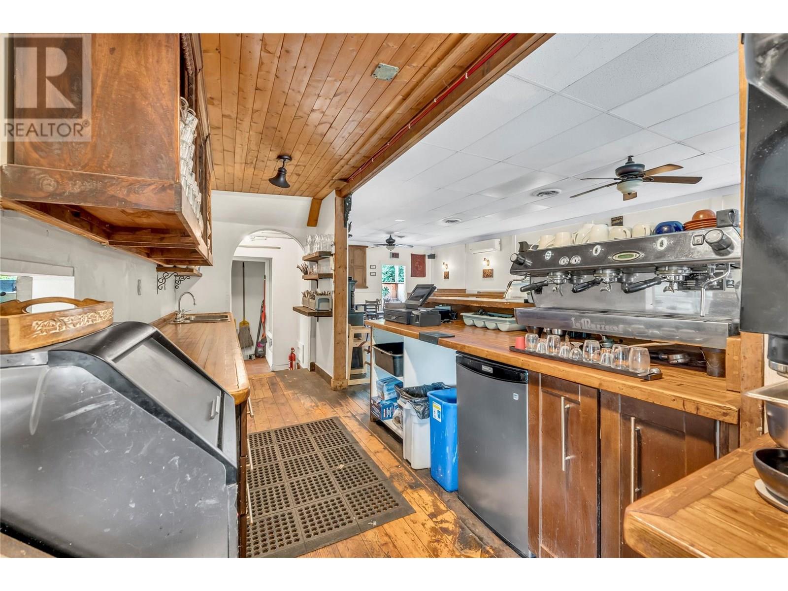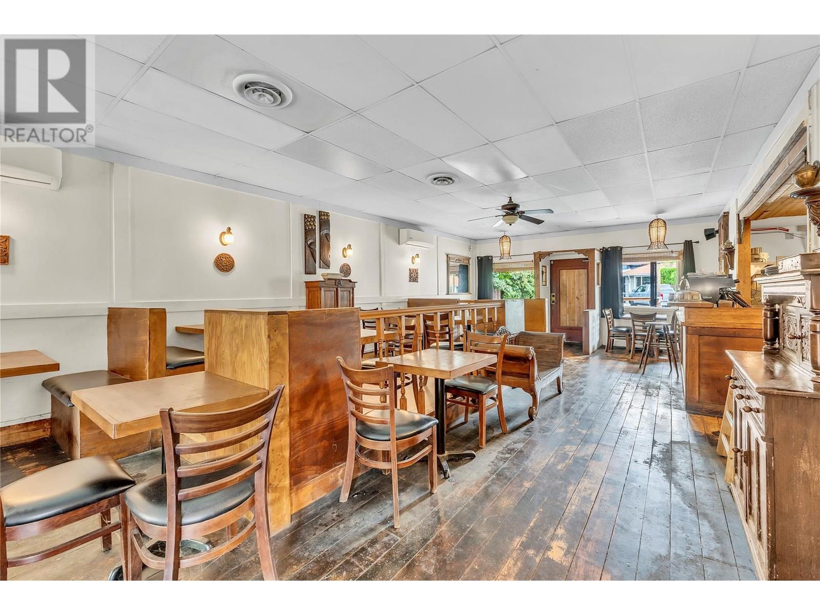 Amazing Opportunity to own and operate your own restaurant in the heart of beautiful Naramata, and live next door in the cozy 3 bedroom house. The restaurant building is licensed for 60 seats indoors and another 24 outside on the private peaceful patio. It comes complete with all the tables and chairs, kitchen and coffee bar equipment, and lots of parking out front. All ready for your creative culinary touches. The almost 1200 square foot house has 3 bedrooms, 1 bath, nice sized living room, separate dining room, and a large rear deck. On a corner lot so lots of off street parking. The home could be used as a rental, owner occupied, or staff housing. The whole package is a great holding/development property as well as it is situated on four 30x100 foot commercial lots, ideal for future use. Rarely does a full package like this become available. Contact the listing Agent for more information. (id:47466)