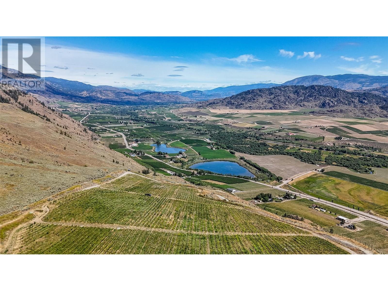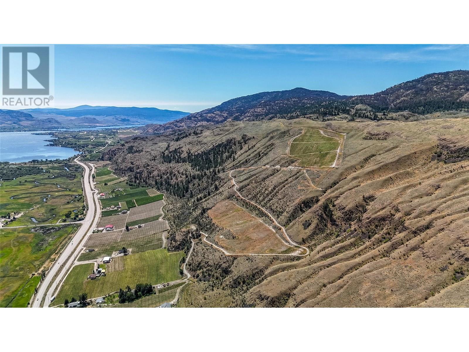 Located just 13 km south of Oliver, Crux Vineyard is a distinctive 77-acre agricultural property perched above the renowned Golden Mile. Set within the Agricultural Land Reserve, the site features two southeast-facing benches ideal for premium grape growing. The upper 16-acre bench is already planted with Sauvignon Blanc, Chardonnay, Vermentino, Merlot, Cabernet Franc, and Tempranillo, while the lower 9-acre bench is prepped and ready for planting. Exceptional soil conditions and excellent air drainage contribute to healthy vine growth and help mitigate frost risk. With elevations ranging from 350m to 590m, the property benefits from increased sun exposure—averaging 1 to 1.5 hours more sunlight per day during the growing season than the valley below—making it a truly unique viticultural site. The southeast corner of the property includes a 1-acre building site offering breathtaking panoramic views of the valley, vineyards, and surrounding mountains. Additional features include a VSP steel post trellis system, two high-capacity wells producing a combined 120 gpm, and excellent access from both Highway 97 and Highway 3. (id:47466)