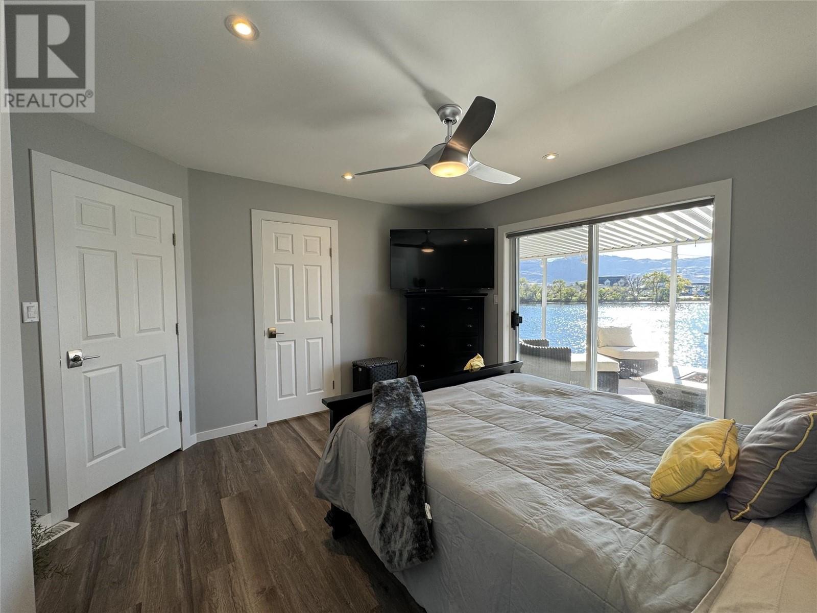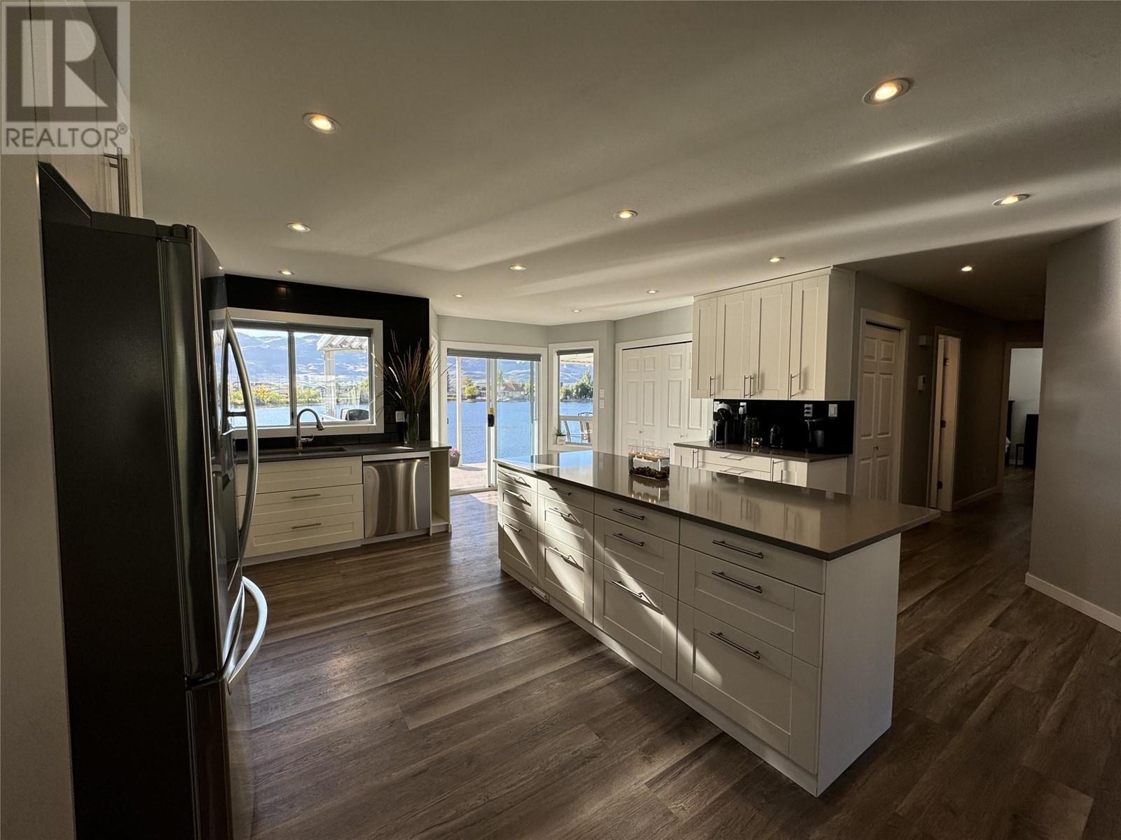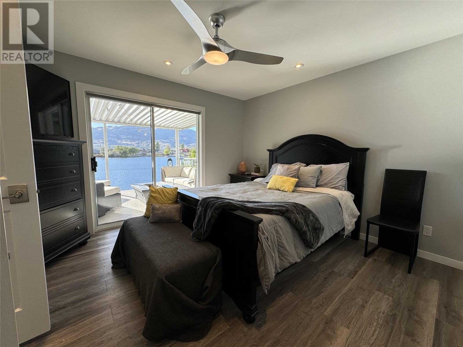 WATERFRONT HOME ON PEACEFUL SOLANA BAY Savor your morning coffee or a glass of one of the region’s exquisite local wines while watching the sunset from your expansive covered porch. Just steps away, your private dock awaits, offering easy access to the main lake for boating adventures. This prime location provides shelter from the wind, even during the occasional Osoyoos storm. Designed for effortless entertaining, this single-level rancher is perfect for hosting close family and friends all summer long. As fall arrives and the weather cools, gather around the outdoor fire pit, basking in the warmth while listening to the soft chorus of crickets. This comfortable 3-bedroom, 2-bathroom home boasts a spacious, open-concept layout, offering breathtaking views of the surrounding mountains and serene bay. The ideal location also places you just a short walk from popular local restaurants, amusement parks, coffee shops, and renowned wineries. Many extra features include: pure fibre internet (Telus), Full Hookups for RV, New Energy efficient appliances (LG). new roof (1017), Underground water sprinklers, New tankless hot water on demand heater, New custom blinds, New flooring, Bluetooth bathroom fans, Ceiling fans in each bedroom, Smart Home light switches, LED energy efficient lights, Central Vacuum with kick plate in kitchen. Make this peaceful retreat your year-round sanctuary, where every season brings its own charm and adventure. (id:47466)