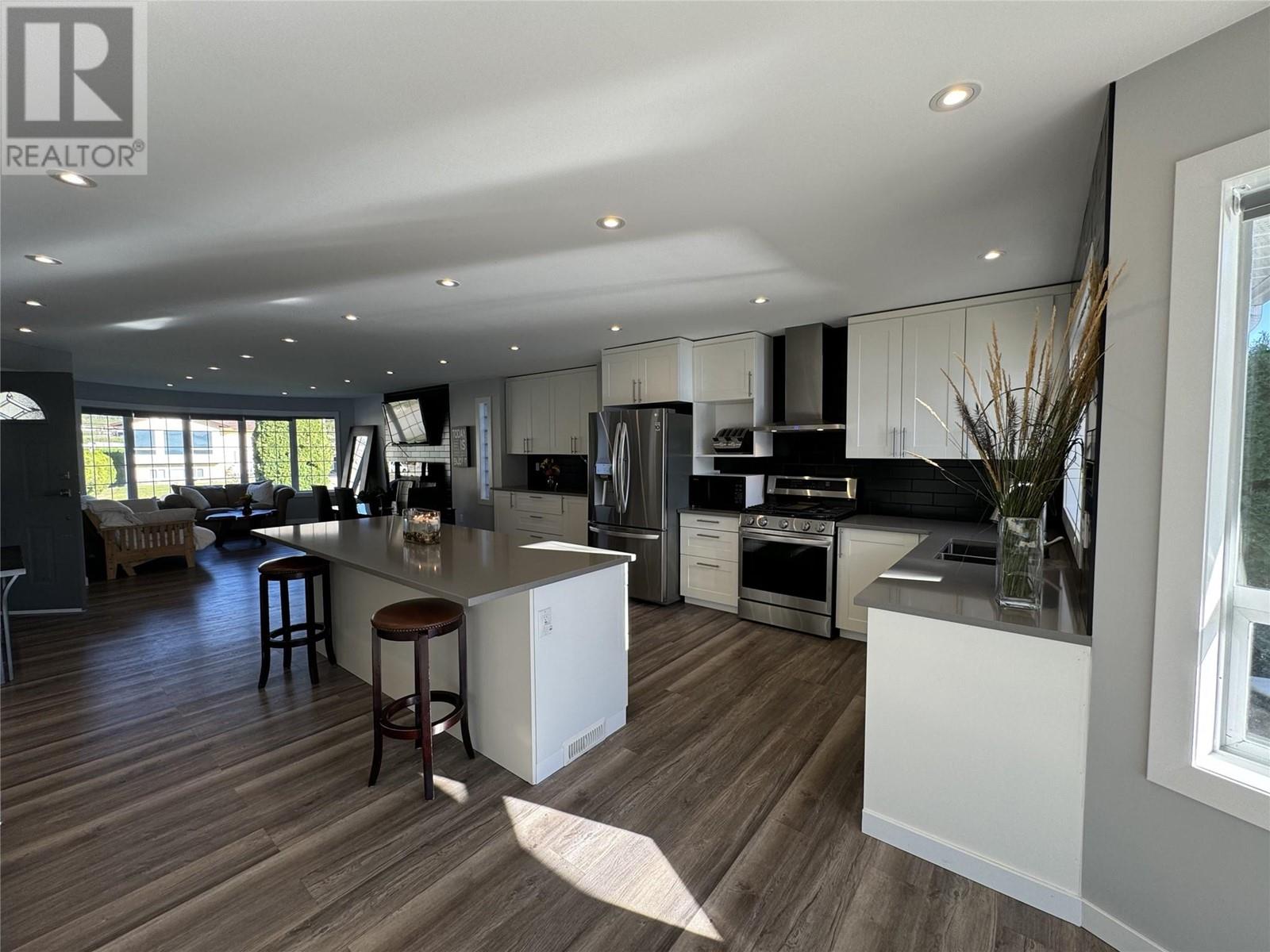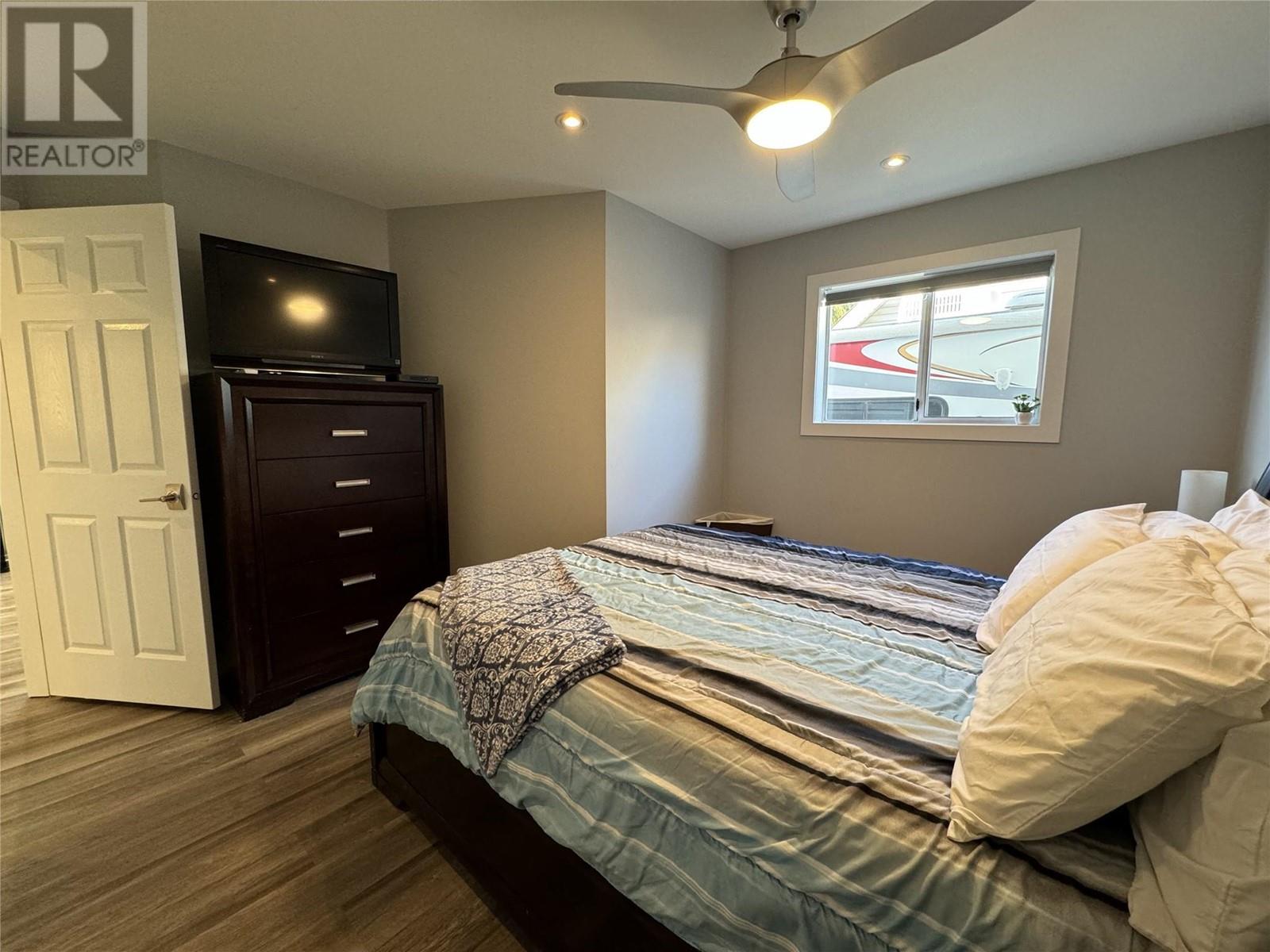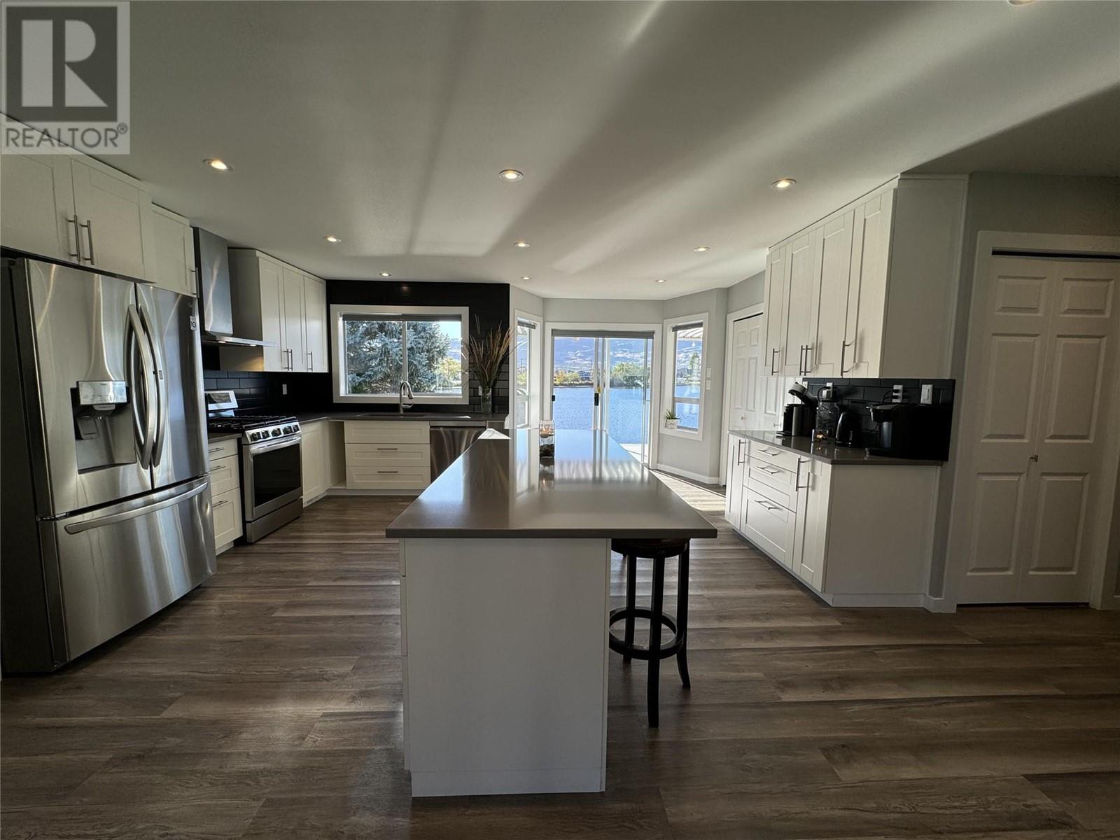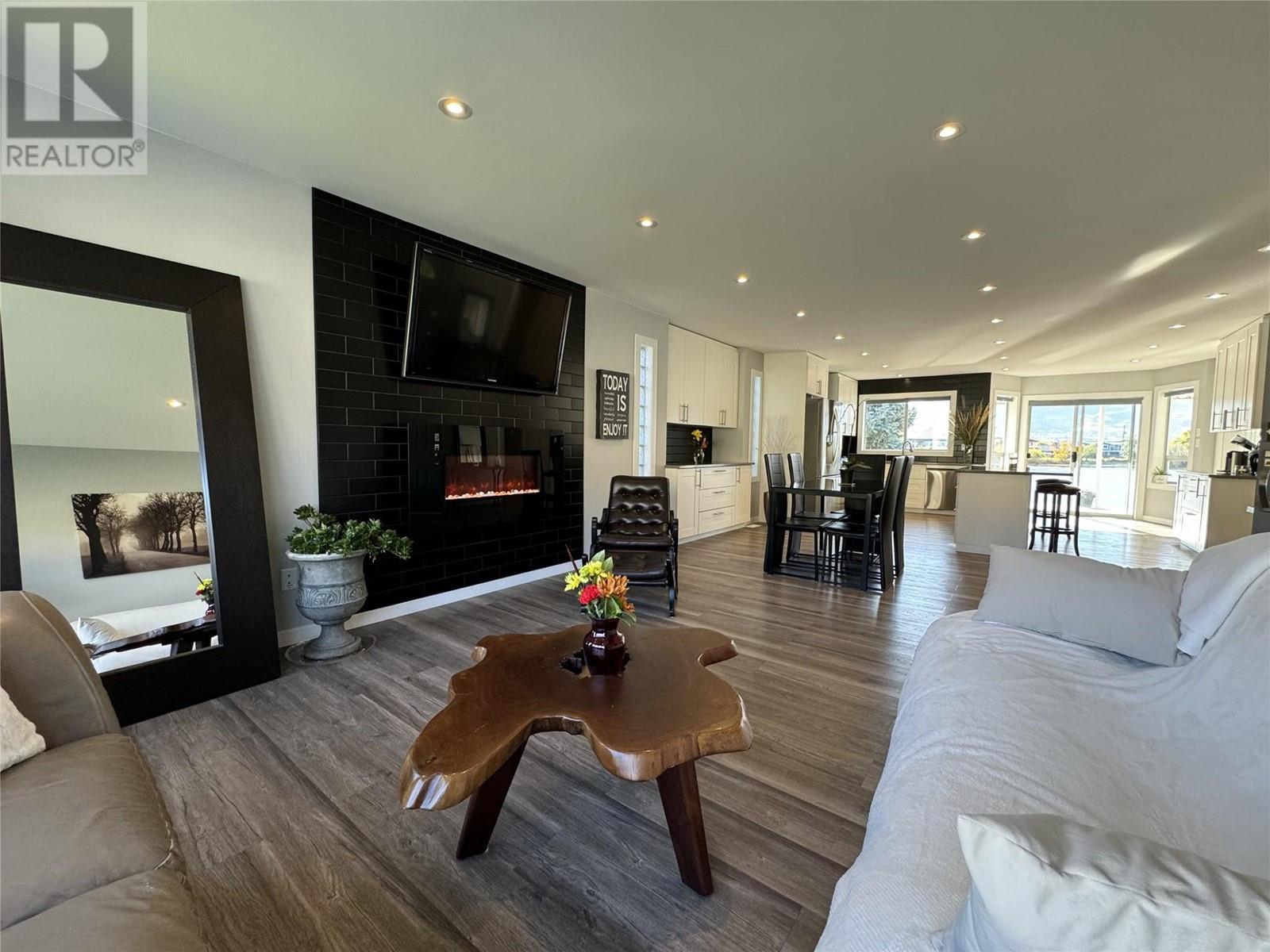 WATERFRONT HOME ON PEACEFUL SOLANA BAY Savor your morning coffee or a glass of one of the region’s exquisite local wines while watching the sunset from your expansive covered porch. Just steps away, your private dock awaits, offering easy access to the main lake for boating adventures. This prime location provides shelter from the wind, even during the occasional Osoyoos storm. Designed for effortless entertaining, this single-level rancher is perfect for hosting close family and friends all summer long. As fall arrives and the weather cools, gather around the outdoor fire pit, basking in the warmth while listening to the soft chorus of crickets. This comfortable 3-bedroom, 2-bathroom home boasts a spacious, open-concept layout, offering breathtaking views of the surrounding mountains and serene bay. The ideal location also places you just a short walk from popular local restaurants, amusement parks, coffee shops, and renowned wineries. Many extra features include: pure fibre internet (Telus), Full Hookups for RV, New Energy efficient appliances (LG). new roof (1017), Underground water sprinklers, New tankless hot water on demand heater, New custom blinds, New flooring, Bluetooth bathroom fans, Ceiling fans in each bedroom, Smart Home light switches, LED energy efficient lights, Central Vacuum with kick plate in kitchen. Make this peaceful retreat your year-round sanctuary, where every season brings its own charm and adventure. (id:47466)