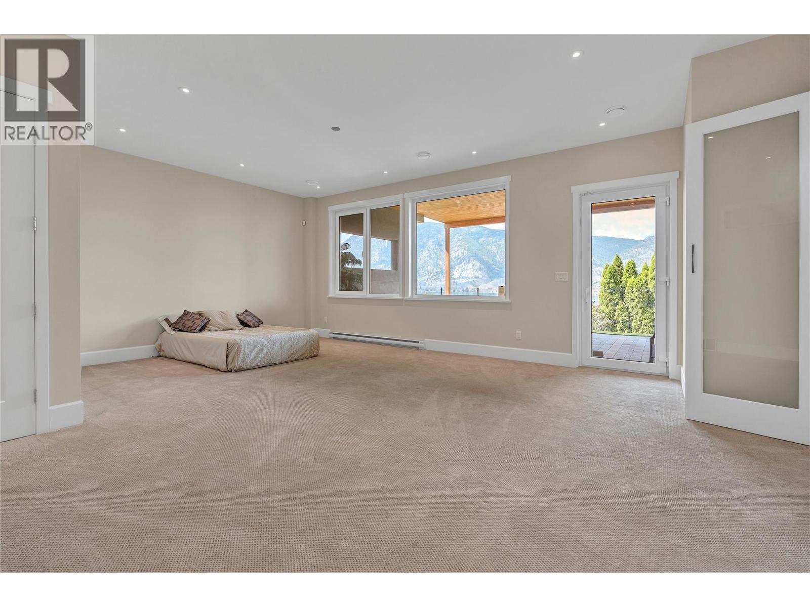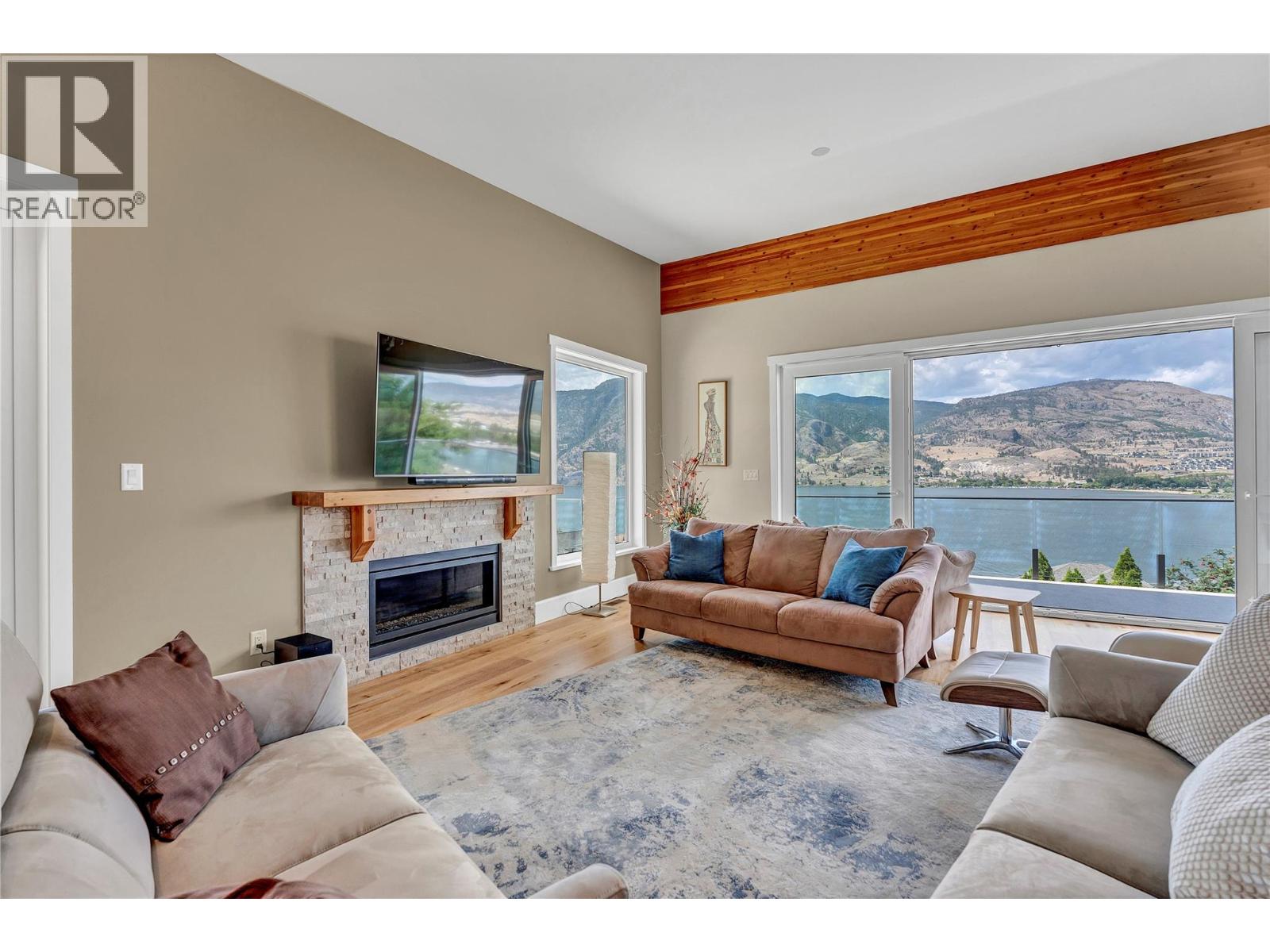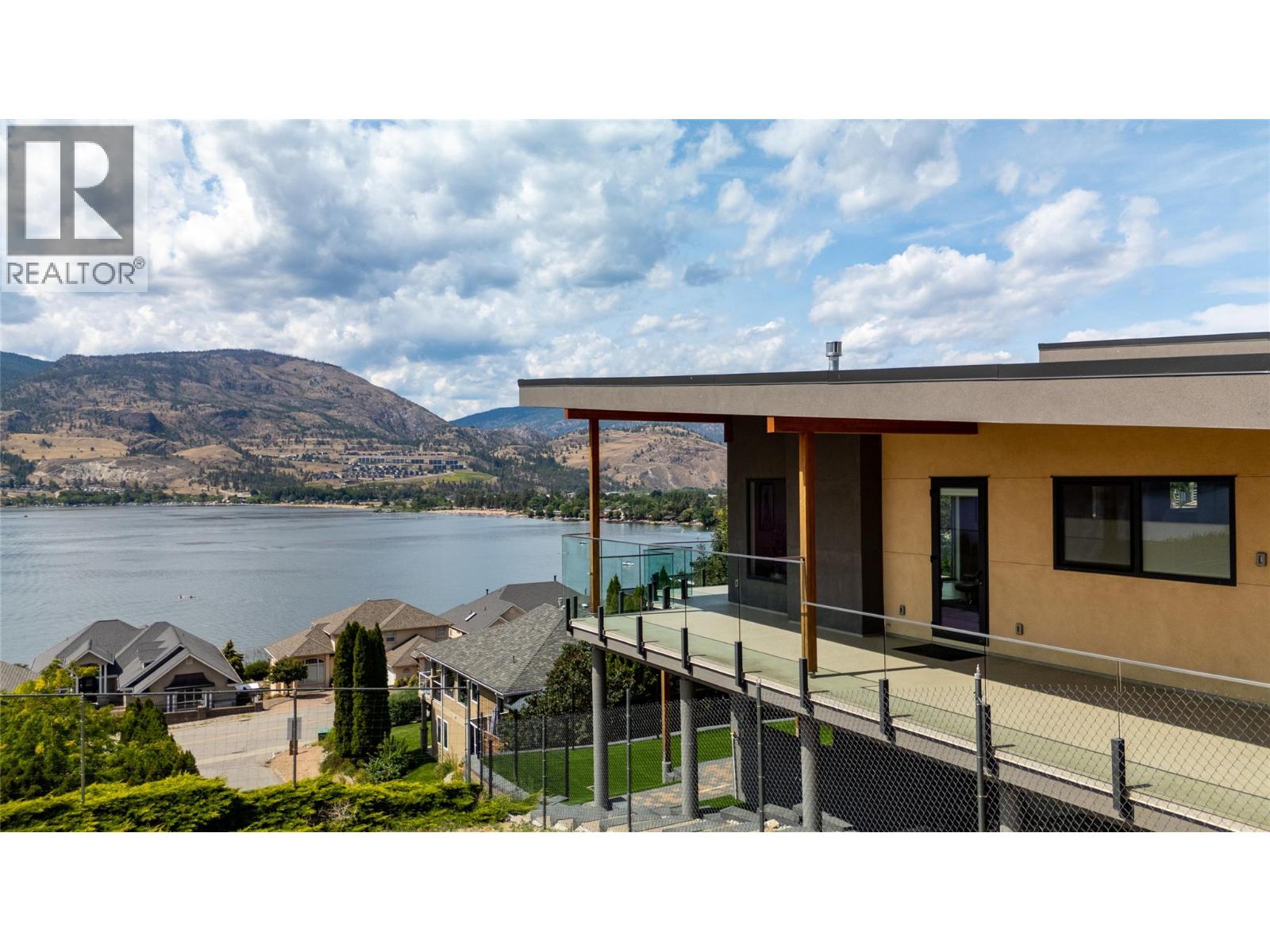 OPEN HOUSE: Saturday September 13 11AM - 1PM. Perched high above the sparkling waters of Skaha Lake, this stunning 4-bedroom, 4.5-bathroom masterpiece offers over 3,000 sq ft of refined living space, built in 2018 with meticulous attention to detail. Designed to capture the essence of luxury Okanagan living, every angle of this home showcases unobstructed, sweeping west and south-facing views that will leave you breathless. A soaring entryway welcomes you, setting the tone for the open-concept design and contemporary sophistication that flows throughout. The main living area is an entertainer’s dream, featuring a wall of floor-to-ceiling windows and Euroline doors that flood the space with natural light while seamlessly blending indoor and outdoor living. Step out onto the expansive main balcony – the ultimate vantage point to watch the sun sink behind the hills and paint the lake with evening colours. The chef-inspired kitchen is as beautiful as it is functional, featuring high-end appliances, sleek cabinetry, and an oversized island perfect for hosting. Each of the bedrooms offers a private sanctuary, complete with its own ensuite bathroom for ultimate comfort and privacy. The primary suite is a true retreat – complete with its own private balcony, a lavish 5-piece ensuite featuring a deep soaker tub and a large shower. The home’s versatile design offers the potential for a self-contained main floor suite, ideal for guests, extended family, or as an income opportunity (id:47466)