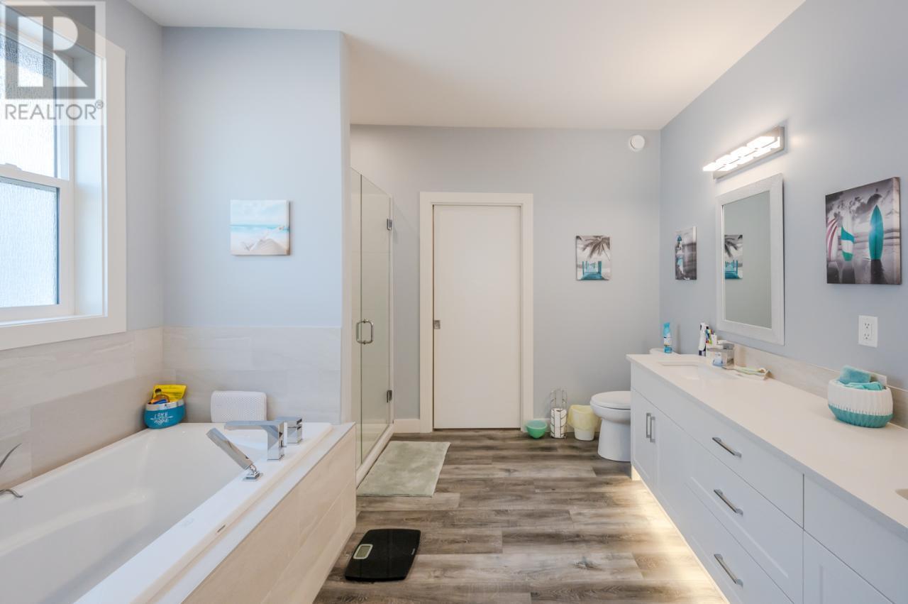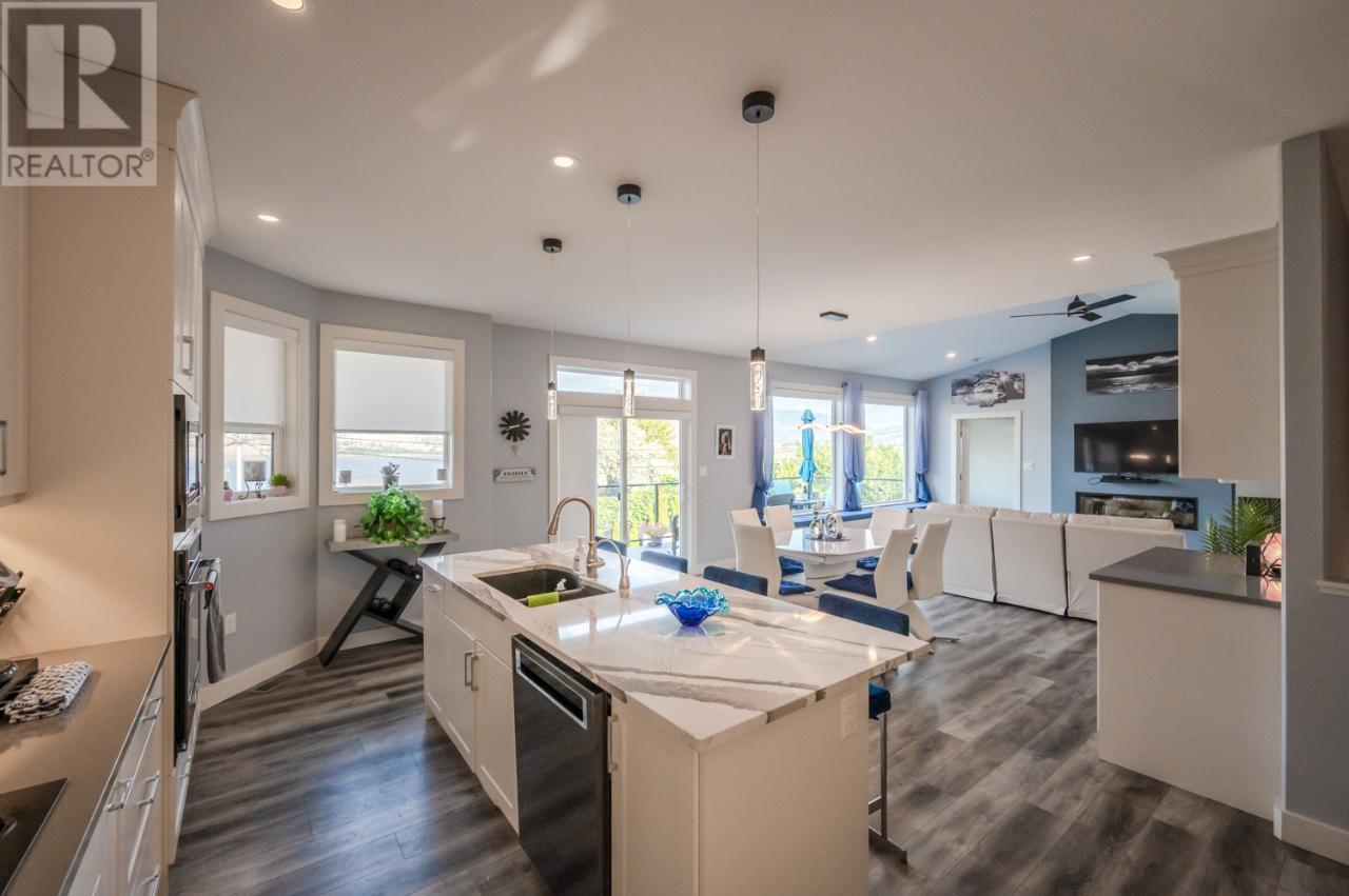 Beautiful Lakeview home in a very desirable neighbourhood. 4 bed +Den/ 5 bathroom home on the south end of Penticton overlooking Skaha Lake and close to one of Canada's finest Lake, beach and parks. Main floor boasts 2 large bedrooms each with own ensuite, master has a soaker tub and walk in closet. Open concept kitchen dining and living area, Quartz countertops throughout the house. Heated double garage, central vac, double blackout blinds. Relax on the deck looking out to Skaha Lake and mountain views. Lower basement level main area has a guest bedroom bathroom and den, utility room and large storage area. BONUS! is a well laid out 1 bedroom 1 bathroom legal suite, open kitchen and own laundry with separate entrance out to the backyard Oasis. Take a refreshing dip in the in ground 4' deep kidney shaped salt water pool or ease into the hot tub to unwind. This home is what living in Penticton is all about! Call Stu Trimble 250-809-5843 or your other favourite agent. (all measurements to be verified by buyer or their agent if important) (id:47466)