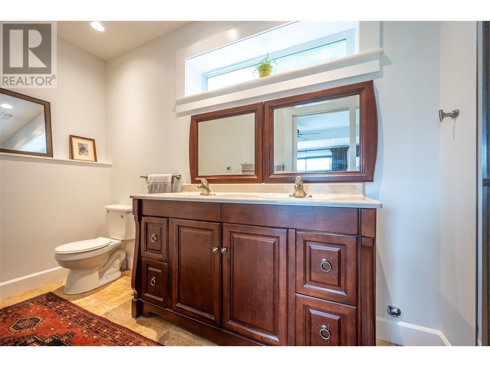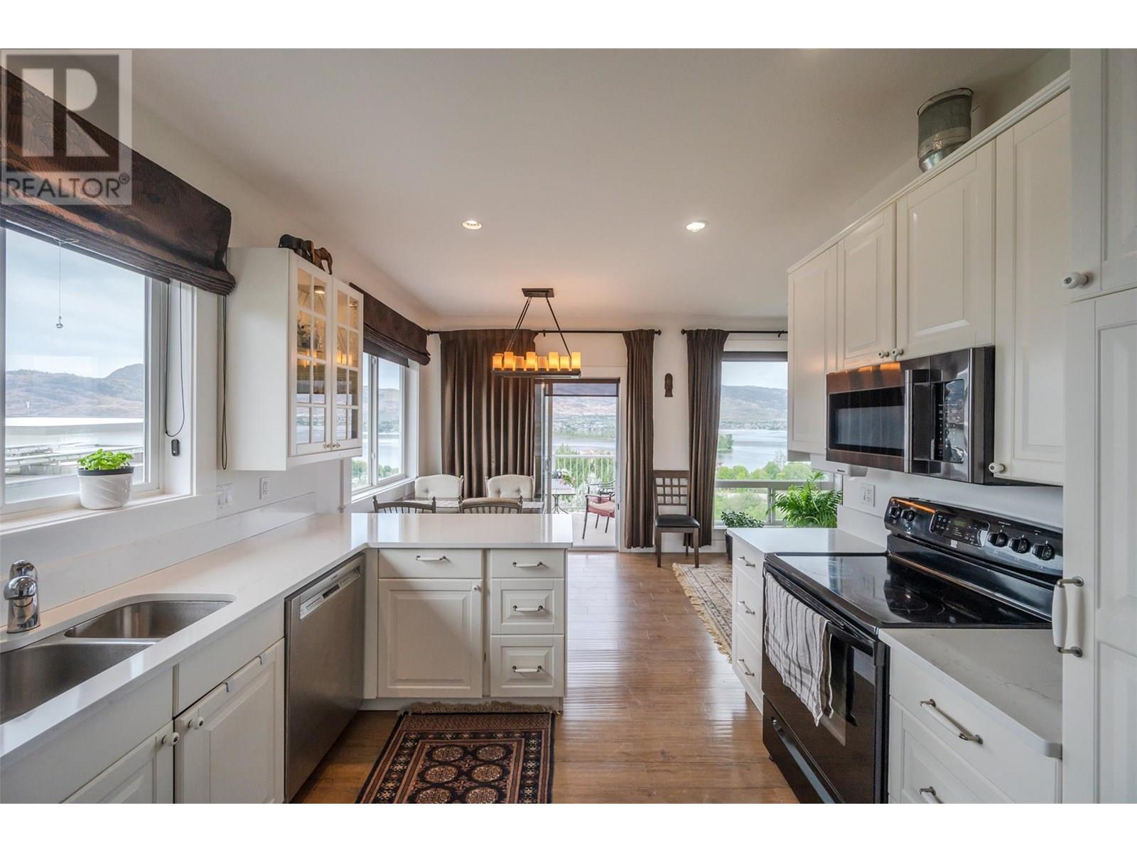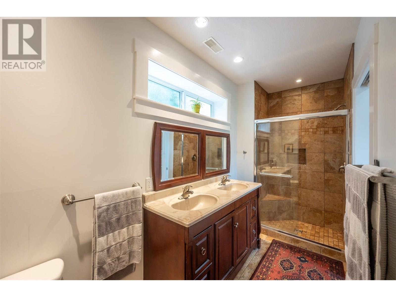 MILLION DOLLAR VIEWS! Perched on the sunny East Bench of Osoyoos, this stunning home offers panoramic 180° views of Osoyoos Lake, the town, vineyards, orchards, and surrounding mountains—some of the best vistas in the entire Okanagan Valley. Enjoy peaceful mornings or evening wine from your deck, soaking in the breathtaking scenery. Built in 2011, this quality 2 bed 3 bath home is located in a high-end neighborhood on a spacious 0.44-acre lot. The main floor showcases an open-concept layout with a bright white kitchen, large dining area, and a living room with a wall of windows that capture the incredible views! Downstairs, you’ll find two spacious primary bedrooms, each with their own exclusive ensuite and direct access to the backyard through private sliding doors. Both ensuites feature heated floors for year-round comfort. Outside, the beautifully landscaped yard includes stamped concrete patios, fruit trees, and plenty of space to relax or entertain. A detached garage includes a bonus unfinished lower level—perfect for a future guest suite, workshop, or studio. Located within the RDOS, this property benefits from low annual taxes. Just minutes to world-class wineries, beaches, golf courses, shopping, schools, and downtown Osoyoos—this is the ultimate Okanagan lifestyle! (id:47466)