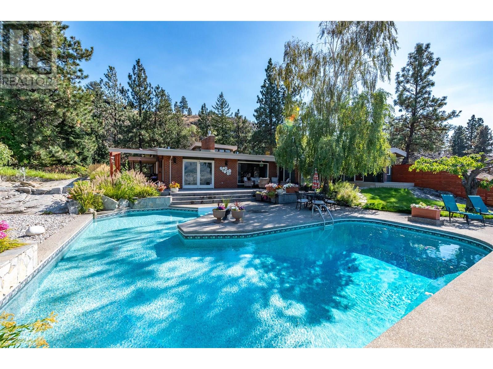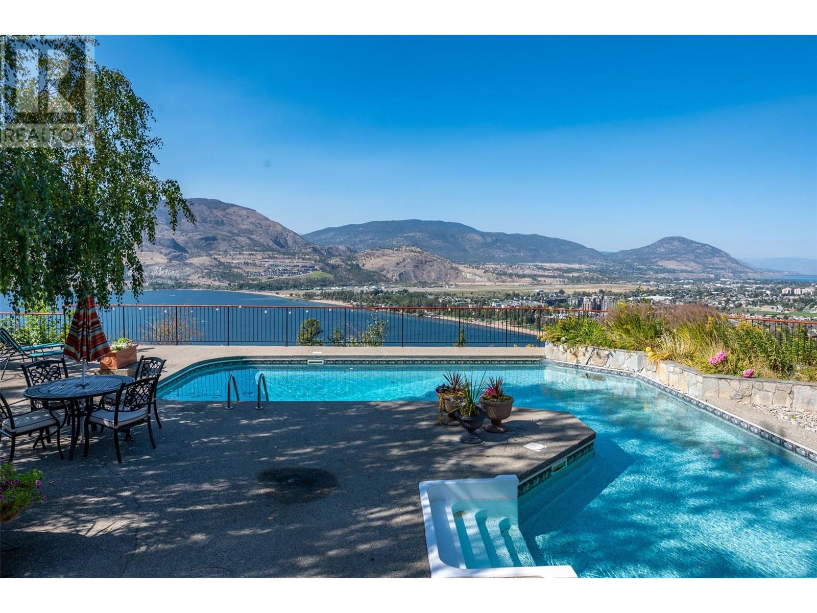 This remarkable secluded lakeview property awaits you. From the moment that you drive up you can feel the calm & tranquility of this amazing lakeview estate. With majestic views over Skaha Lake to the city lights of Penticton, to Okanagan Lake, it truly is an amazing natural setting on 2 acres of privacy. This 5 bed/3 bath executive home features an expansive lakeview primary suite with an updated ensuite. Beautiful hardwood flooring throughout the main living area features a dramatic stone gas fireplace. Spacious kitchen with large island with view out to the incredible outdoor living area. Extensive outdoor living area drinks in the spectacular view with large salt water pool, calming fountain/pond, pool house with outdoor shower and sauna room. This outdoor living space was made for entertaining and/or private moments reflecting over the expansive view. One of the most exclusive addresses in the South Okanagan. Make it yours. (id:47466)