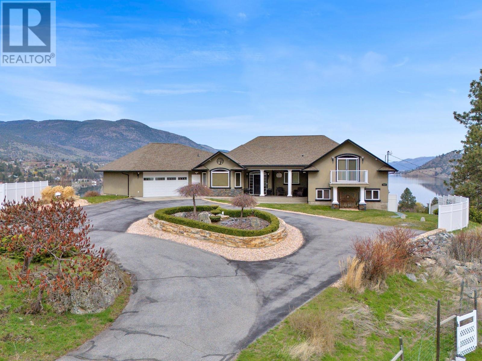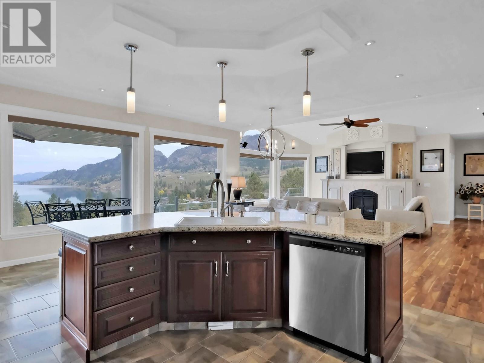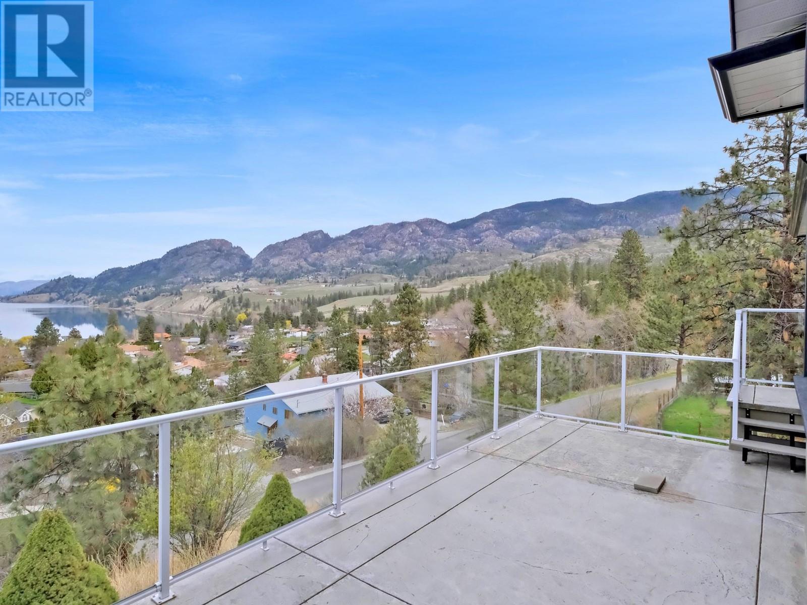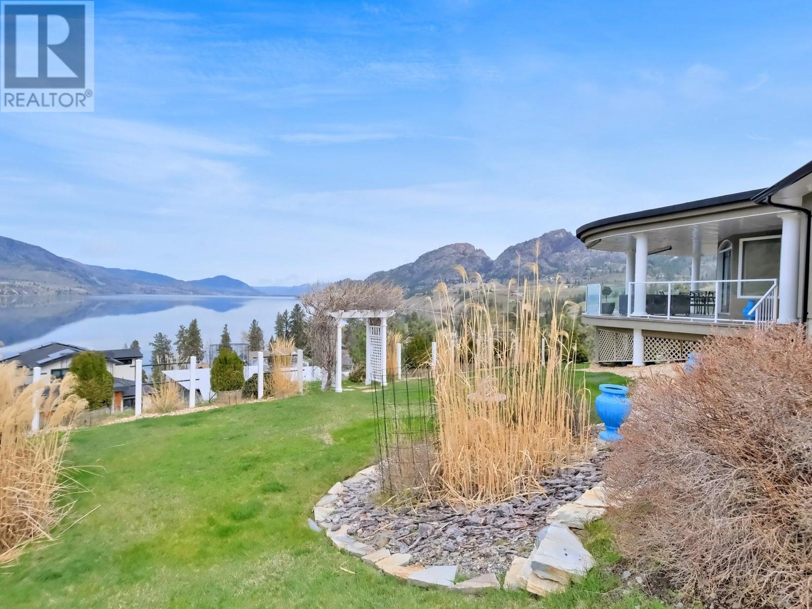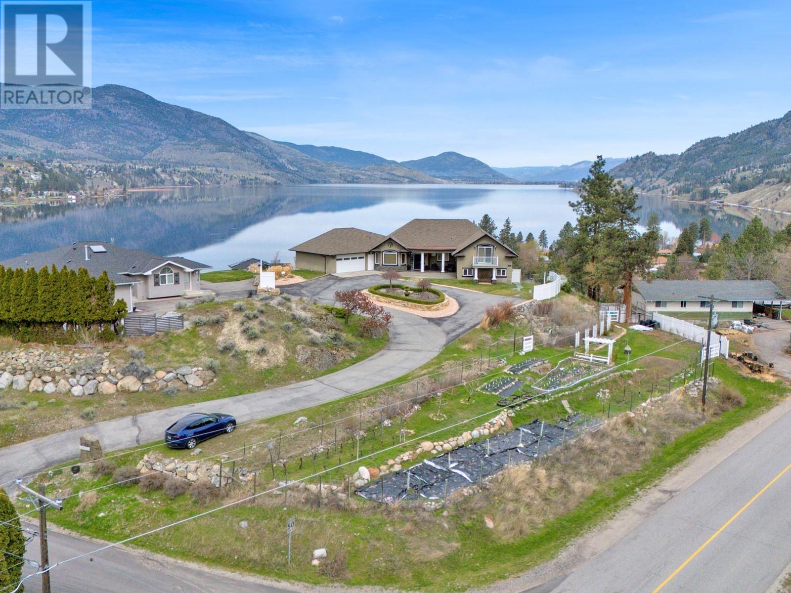 Contemporary Jewel in Okanagan Wine Country Perched above Skaha Lake with captivating views stretching to Penticton and beyond, this one owner custom-built contemporary home offers luxurious living in wine country paradise. The quality of the build is evident in all aspects of the build. The open-concept main area features expansive windows framing panoramic lake and vineyard vistas. This versatile property includes 2 bedrooms plus an Airbnb-style basement studio and a separate in-law suite with private entrance. Brazilian hardwood floors with medallion tile insets create an elegant ambiance throughout, complemented by a gas fireplace with travertine surround in the living room. The gourmet kitchen stands as the home's crown jewel, boasting cherry wood finishes, entertainment island, stainless steel appliances, and granite countertops. French doors lead to a large covered deck with breathtaking views, natural gas grill, and reinforced flooring for a hot tub. Additional features include spacious concrete crawl space for storage, oversized double garage, nearly one acre of landscaped grounds with fruit trees and berries, integrated sound system throughout, and a perfect location for potential pool installation. This exceptional lakeview property seamlessly blends luxury with functionality, offering VRBO potential or abundant space for family gatherings. A rare opportunity to own a distinctive home in this coveted location. (id:47466)