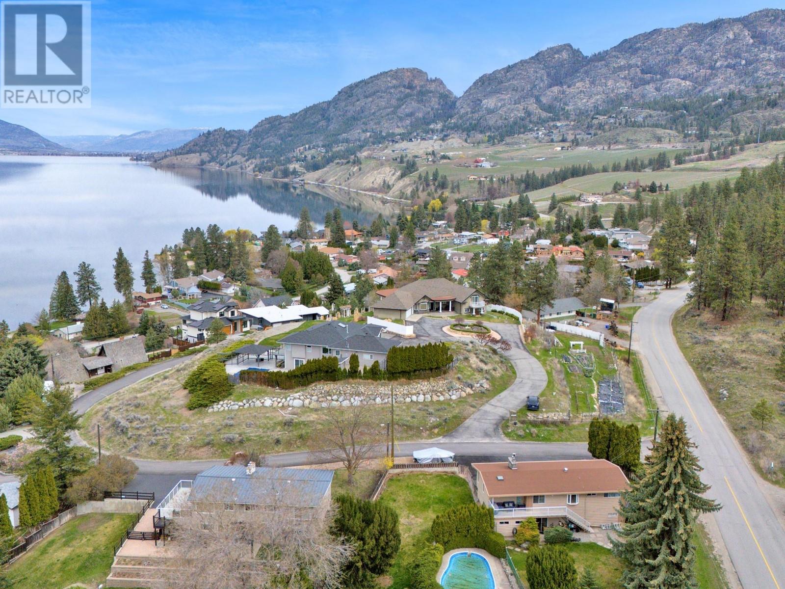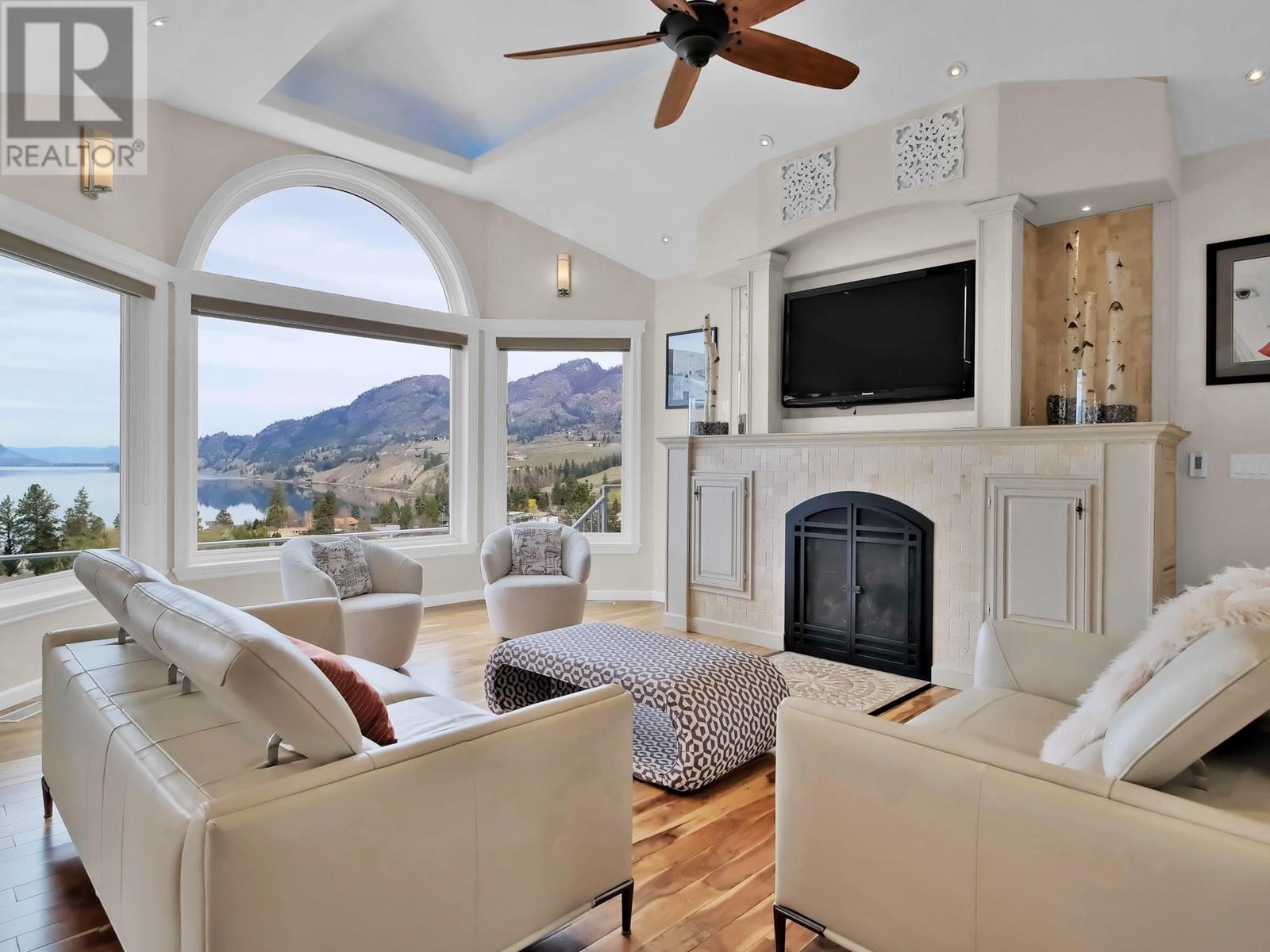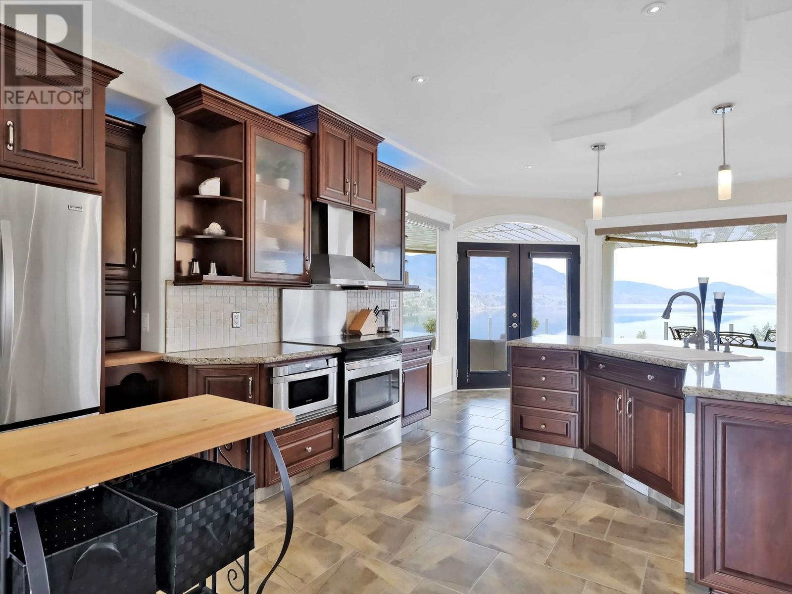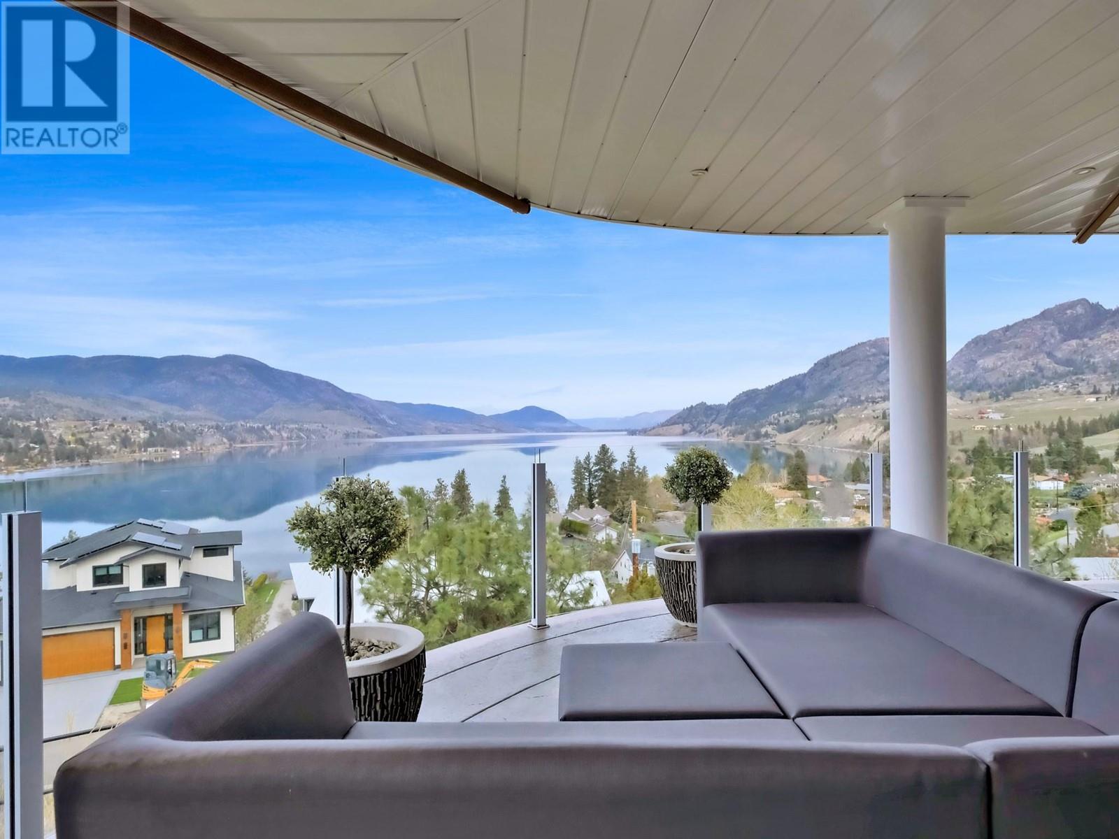 Contemporary Jewel in Okanagan Wine Country Perched above Skaha Lake with captivating views stretching to Penticton and beyond, this one owner custom-built contemporary home offers luxurious living in wine country paradise. The quality of the build is evident in all aspects of the build. The open-concept main area features expansive windows framing panoramic lake and vineyard vistas. This versatile property includes 2 bedrooms plus an Airbnb-style basement studio and a separate in-law suite with private entrance. Brazilian hardwood floors with medallion tile insets create an elegant ambiance throughout, complemented by a gas fireplace with travertine surround in the living room. The gourmet kitchen stands as the home's crown jewel, boasting cherry wood finishes, entertainment island, stainless steel appliances, and granite countertops. French doors lead to a large covered deck with breathtaking views, natural gas grill, and reinforced flooring for a hot tub. Additional features include spacious concrete crawl space for storage, oversized double garage, nearly one acre of landscaped grounds with fruit trees and berries, integrated sound system throughout, and a perfect location for potential pool installation. This exceptional lakeview property seamlessly blends luxury with functionality, offering VRBO potential or abundant space for family gatherings. A rare opportunity to own a distinctive home in this coveted location. (id:47466)