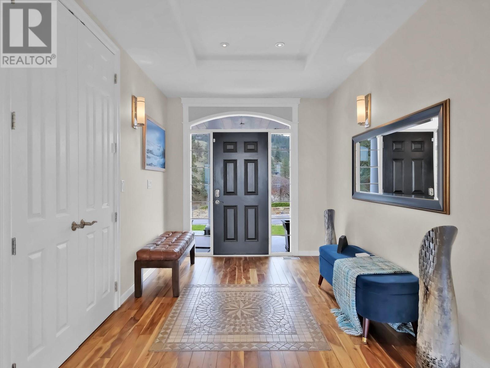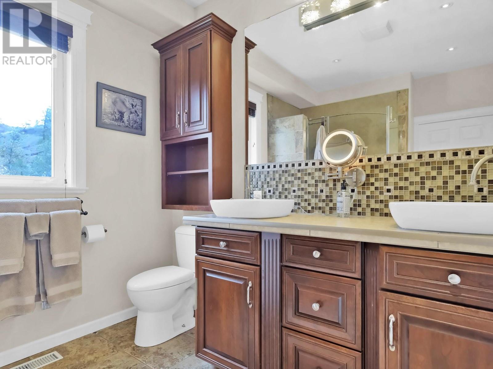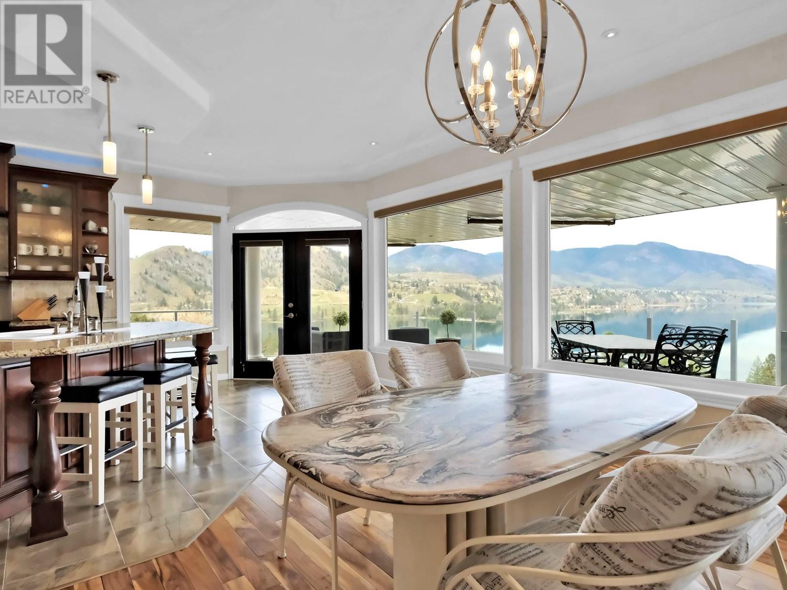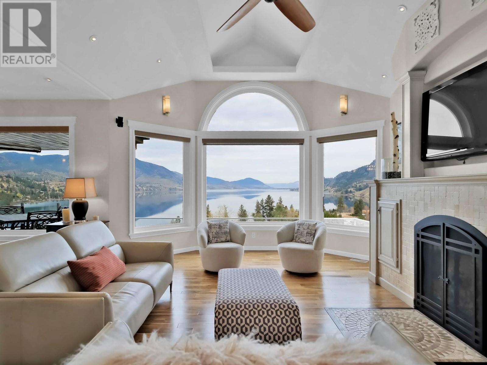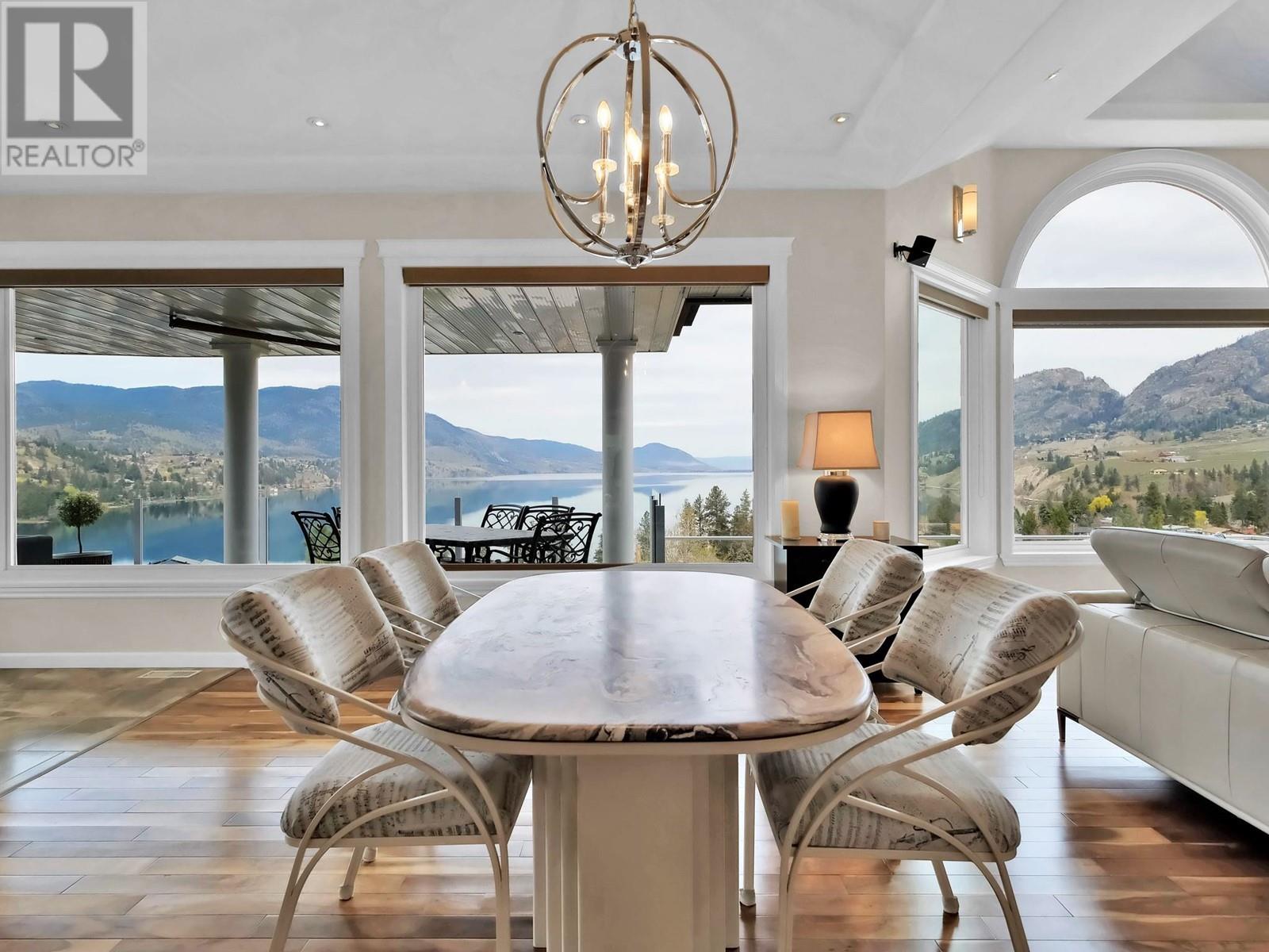 Contemporary Jewel in Okanagan Wine Country Perched above Skaha Lake with captivating views stretching to Penticton and beyond, this one owner custom-built contemporary home offers luxurious living in wine country paradise. The quality of the build is evident in all aspects of the build. The open-concept main area features expansive windows framing panoramic lake and vineyard vistas. This versatile property includes 2 bedrooms plus an Airbnb-style basement studio and a separate in-law suite with private entrance. Brazilian hardwood floors with medallion tile insets create an elegant ambiance throughout, complemented by a gas fireplace with travertine surround in the living room. The gourmet kitchen stands as the home's crown jewel, boasting cherry wood finishes, entertainment island, stainless steel appliances, and granite countertops. French doors lead to a large covered deck with breathtaking views, natural gas grill, and reinforced flooring for a hot tub. Additional features include spacious concrete crawl space for storage, oversized double garage, nearly one acre of landscaped grounds with fruit trees and berries, integrated sound system throughout, and a perfect location for potential pool installation. This exceptional lakeview property seamlessly blends luxury with functionality, offering VRBO potential or abundant space for family gatherings. A rare opportunity to own a distinctive home in this coveted location. (id:47466)