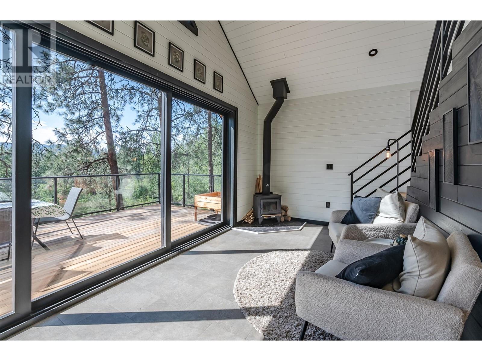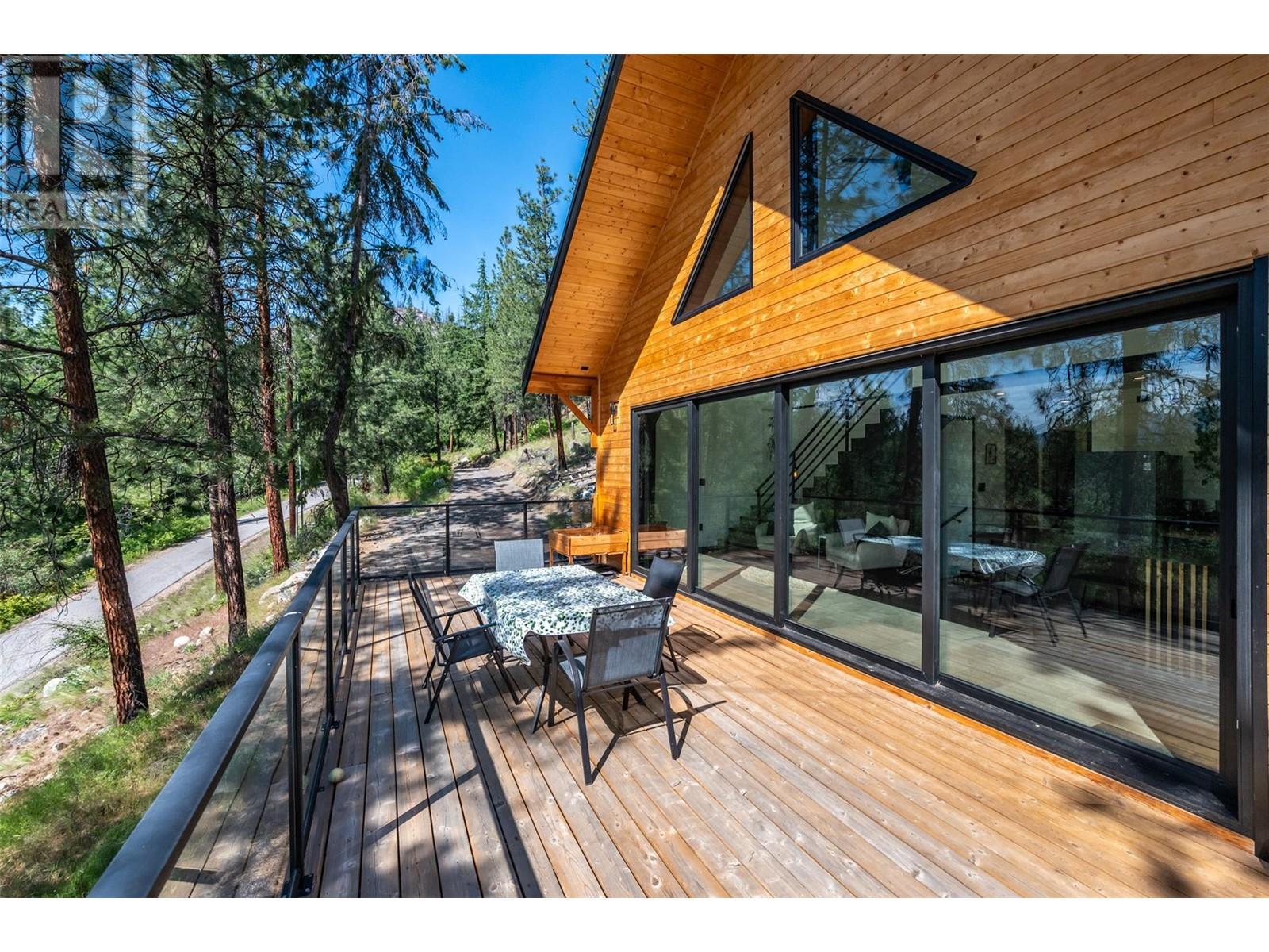 Welcome to this gorgeous newly built home nestled amongst Okanagan pines and natures beauty. This home is only a 15 minute drive to Penticton and 5 minutes to OK Falls. Recently constructed in 2020, this 1736 sq.ft. home is situated on a secluded half-acre parcel in Golden Hills, one of Canada's most unique bare land strata, boasting approximately 160 acres of shared land to explore and enjoy. The home is a captivating blend of natural charm and modern sophistication, featuring a designer kitchen with solid surface countertops, a spa like bathroom with a steam shower, smart appliances, high end windows, and a fresh air exchange system for optimal comfort. The thoughtfully designed layout seamlessly integrates the natural surroundings, with a 20 ft tinted folding glass wall that opens out from the kitchen and dining to a spacious 28x12 deck with panoramic forest and mountain views for the ultimate outdoor living experience. The lower level of the house is primed for an entertainment/living room and a den for guests. This home comes with an amazing water filtration system for the absolute best quality drinking and bathing water. The installed system is an approximate cost of $25,000. Covered parking and ample surrounding land complete this truly one of a kind property. (id:47466)