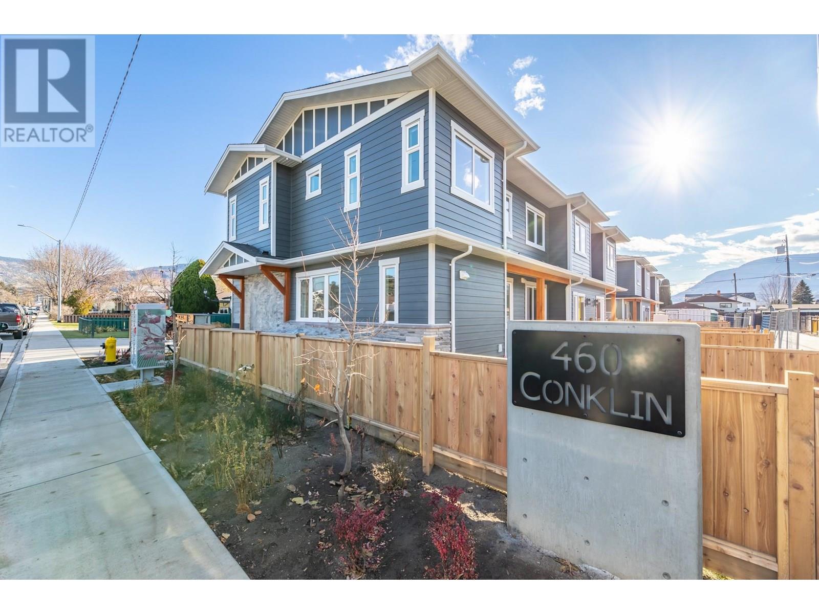 460 Conklin is Move-In Ready! This brand-new 1,257 sq.ft. townhome offers 3 bedrooms, 2.5 bathrooms, and is ready for you to call home. Each unit in this attractive complex includes two dedicated parking stalls and is situated in one of Penticton’s most desirable and charming neighbourhoods. Built by Azura, a trusted local builder known for quality developments such as Sendero Gate, Sendero Canyon, and Riverside, this home features: An open-concept layout, Hard surface countertops, Stainless steel appliances, Vinyl and carpet flooring, Window blinds, In-floor heating, A minimum of 20 sq.ft. of storage space. Enjoy peace and quiet with party walls that provide complete separation between units—minimizing sound transfer. Plus, your investment is protected with the 2/5/10 Travelers Canada home warranty. Bonus for First-Time Homebuyers: Take advantage of the GST exemption, making this the perfect opportunity to step into homeownership at a lower cost. (id:47466)