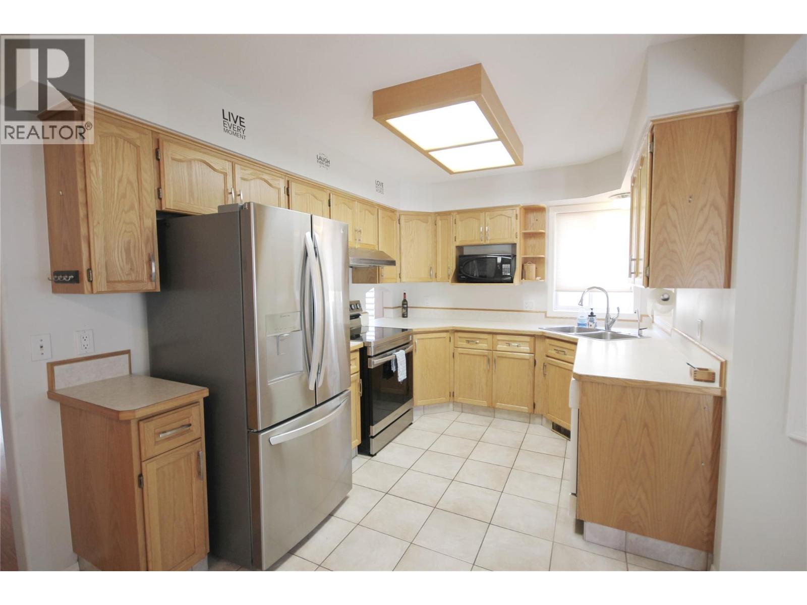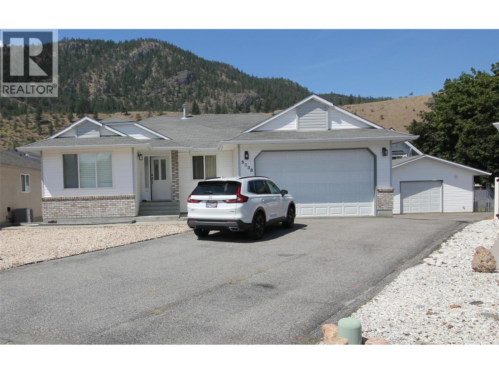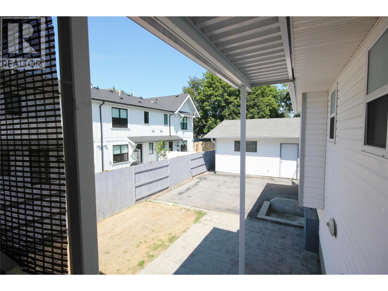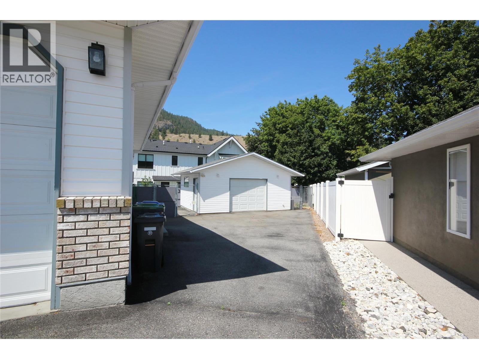 Charming and Well-Maintained Rancher! This tidy 2-bedroom, 2-bathroom home offers 1,160 sqft of functional living space on a single level. The inviting living room features a classic brick gas fireplace, seamlessly flowing into the dining area. The kitchen is equipped with light wood-style cabinetry and sliding doors that lead out to a covered 3-season deck, perfect for year-round enjoyment. The primary bedroom boasts a 3-piece ensuite, while a second bedroom and a full bathroom complete the main living area. The downstairs offers nearly 6 feet of headspace, providing usable space that, though not included in the listed square footage, could be ideal for a home theater or secure storage, thanks to the egress windows. Recent upgrades include a new furnace, heat pump, and hot water tank within the last year. The attached double garage, measuring 21' x 17', is heated and equipped with 220 power. As a bonus, there's a detached workshop (19' x 16'), featuring a concrete floor, heat, 220 power, and a garage door, making it perfect for vehicle storage, woodworking, welding, or other hobbies. The property offers ample open parking, easy-care vinyl siding, and a xeriscape yard. The fenced backyard is pet and child-friendly, offering a safe, low-maintenance space. Located in a peaceful cul-de-sac in central OK Falls, this home is just a short walk to the school. shops and the beach at the shores of Skaha Lake. Quick possession is available. Don’t miss out—schedule your showing today! (id:47466)