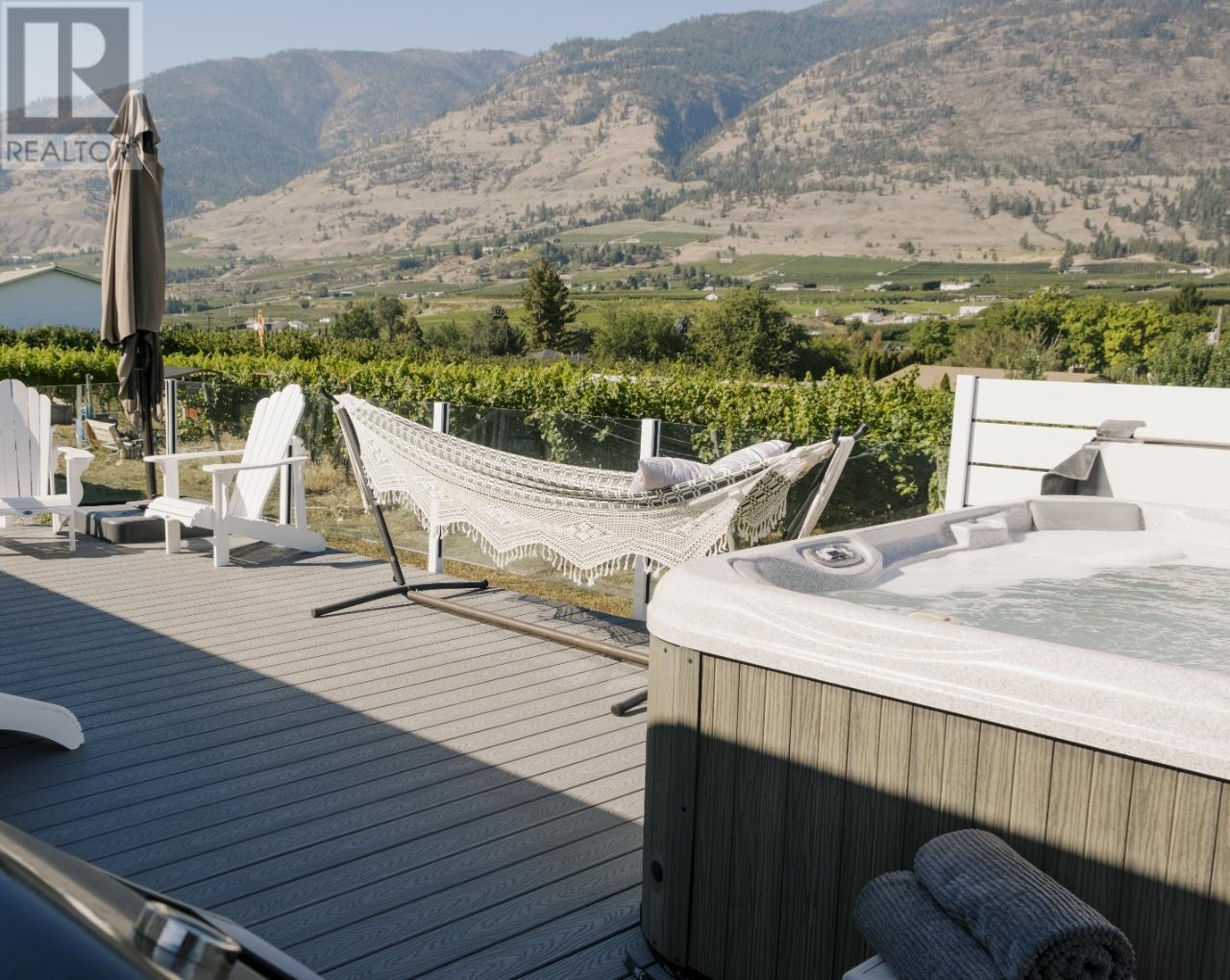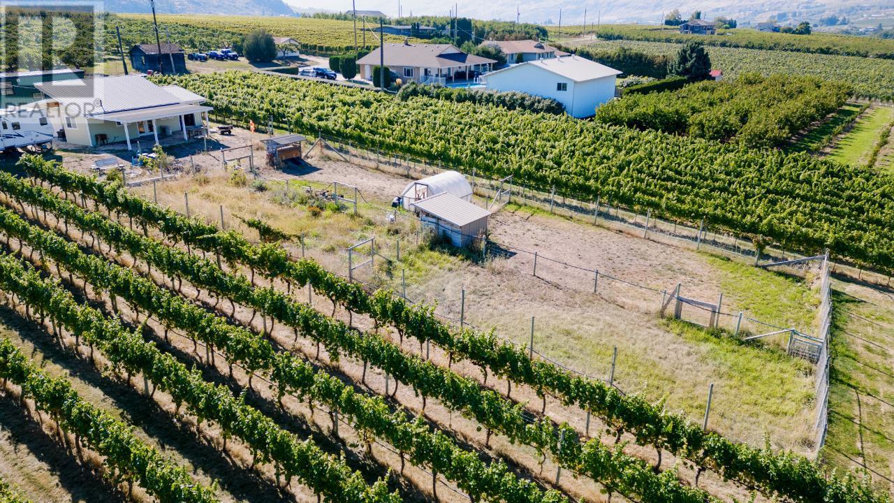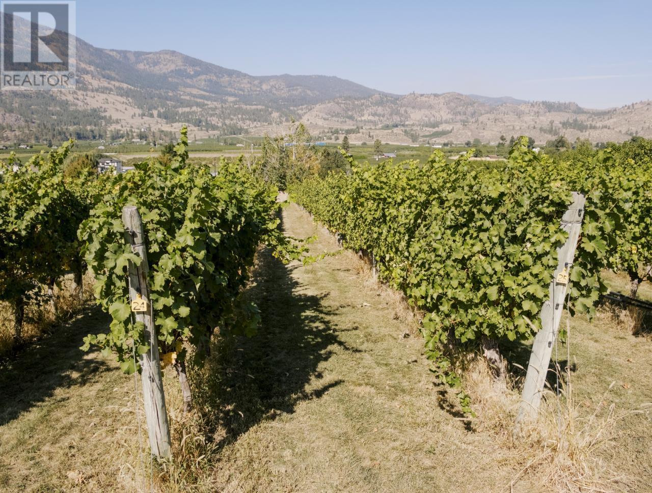 Your south Okanagan dream home awaits! Idyllic, productive hobby farm w/incredible west mountain., valley and sunset views. Flat lot with gentle slope to the west. 1.5 of 2 acres planted with sauvignon-blanc grapes, 5 tons+ avg. yield most years. Paddock for garden/animals, chicken coop, new greenhouse, garden shed. Stunning modern farmhouse extensively renovated in 2016/2017. Loads of premium features: Regency double-sided fireplace, ""travertine"" finish vinyl plank floors, keyless entry, soaring vaulted ceilings, all new windows and blinds, 3M window film on front door & primary window, custom hickory cabinets in kitchen and primary bedroom, quartz counters, massive entertainer's island, premium stainless kitchen appliances, double walk-outs to 28' x 16' Trex deck with South Seas hot tub, aluminum privacy fence with glass panels. Wine and preserves cellar, lower level separate entrance, all new electric, plumbing, furnace, HVAC, water softener & insulation. Workshop & garage: 28' x 24' on concrete pad, built 2015/2016 with 3 piece bath, separate 100 amp electrical service, 240 volt outlets, heated, hot water on demand, R28 insulation, 8' x 20' farm garage, and 28' x 12' covered outdoor storage/work area. Premium metal roofs and separate septic systems. All work permitted & approved. Dimensions and floor plan per Matterport. Buyer to verify if important. Note: Some pantry images show alternate bedroom use via virtual staging imagery. No expense spared. (id:47466)