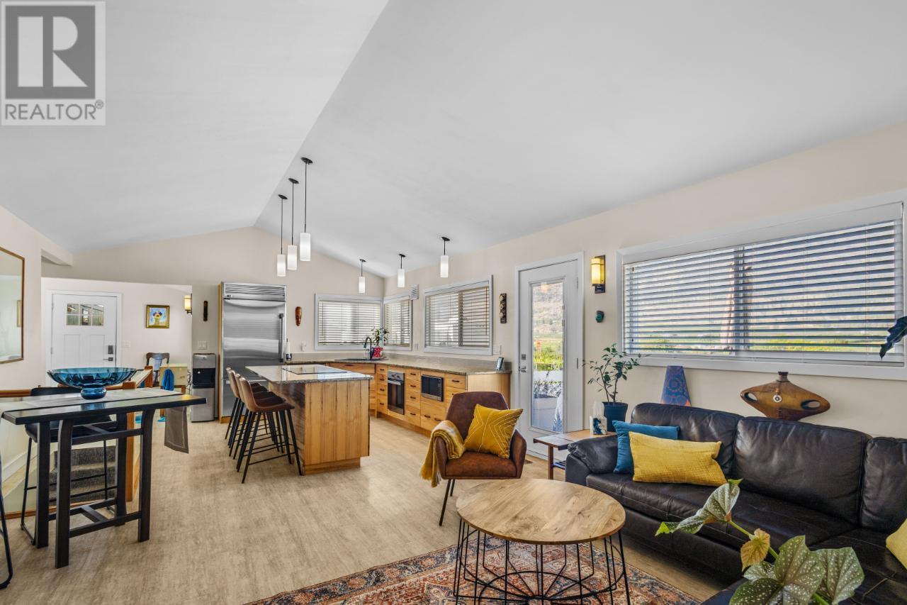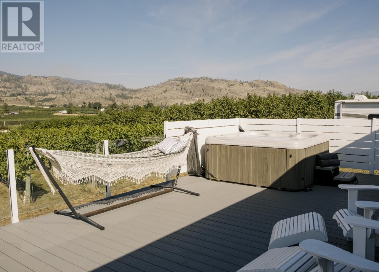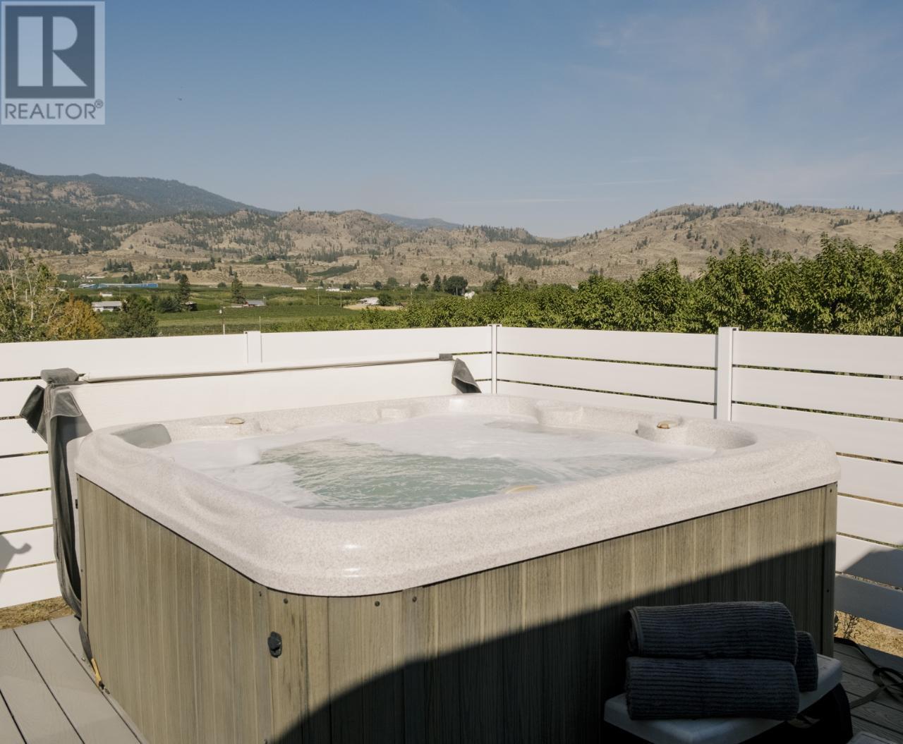 Your south Okanagan dream home awaits! Idyllic, productive hobby farm w/incredible west mountain., valley and sunset views. Flat lot with gentle slope to the west. 1.5 of 2 acres planted with sauvignon-blanc grapes, 5 tons+ avg. yield most years. Paddock for garden/animals, chicken coop, new greenhouse, garden shed. Stunning modern farmhouse extensively renovated in 2016/2017. Loads of premium features: Regency double-sided fireplace, ""travertine"" finish vinyl plank floors, keyless entry, soaring vaulted ceilings, all new windows and blinds, 3M window film on front door & primary window, custom hickory cabinets in kitchen and primary bedroom, quartz counters, massive entertainer's island, premium stainless kitchen appliances, double walk-outs to 28' x 16' Trex deck with South Seas hot tub, aluminum privacy fence with glass panels. Wine and preserves cellar, lower level separate entrance, all new electric, plumbing, furnace, HVAC, water softener & insulation. Workshop & garage: 28' x 24' on concrete pad, built 2015/2016 with 3 piece bath, separate 100 amp electrical service, 240 volt outlets, heated, hot water on demand, R28 insulation, 8' x 20' farm garage, and 28' x 12' covered outdoor storage/work area. Premium metal roofs and separate septic systems. All work permitted & approved. Dimensions and floor plan per Matterport. Buyer to verify if important. Note: Some pantry images show alternate bedroom use via virtual staging imagery. No expense spared. (id:47466)
