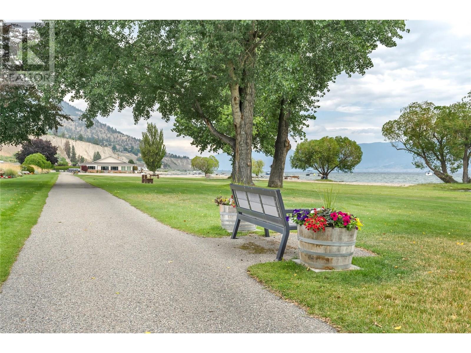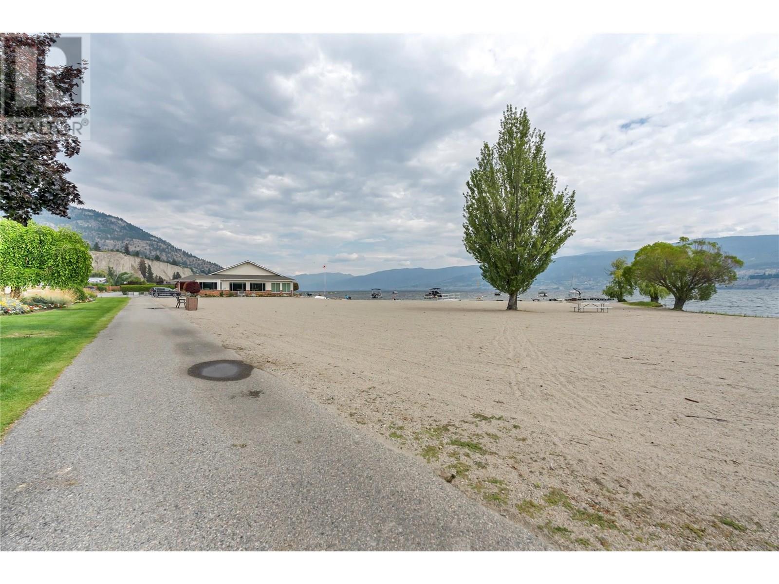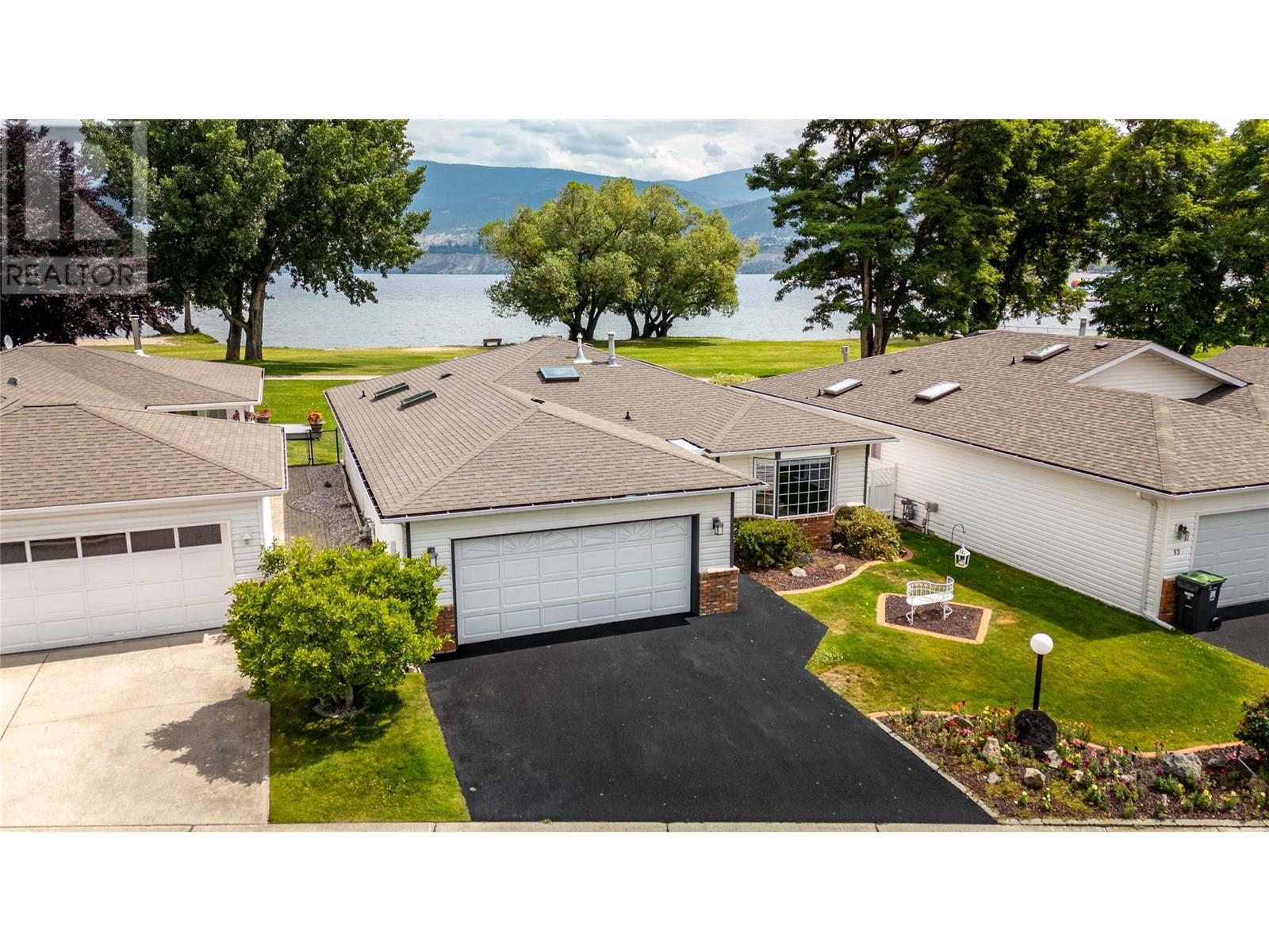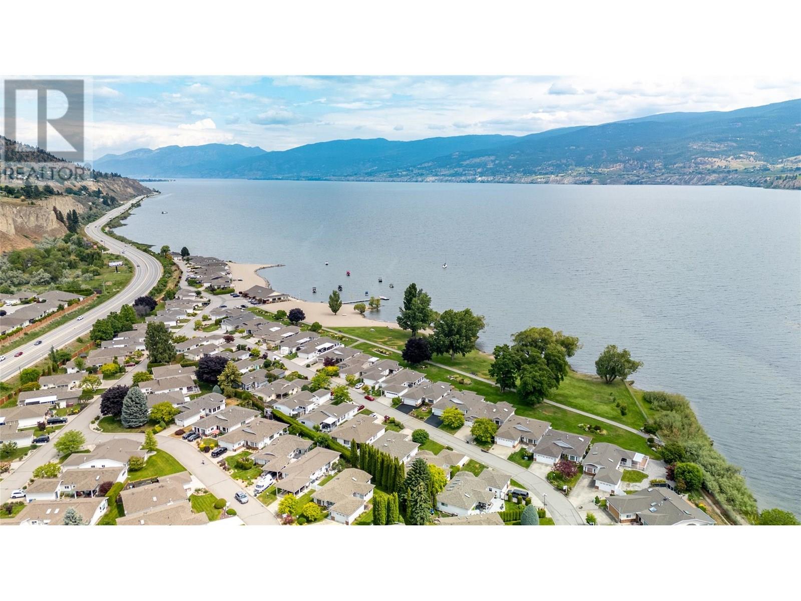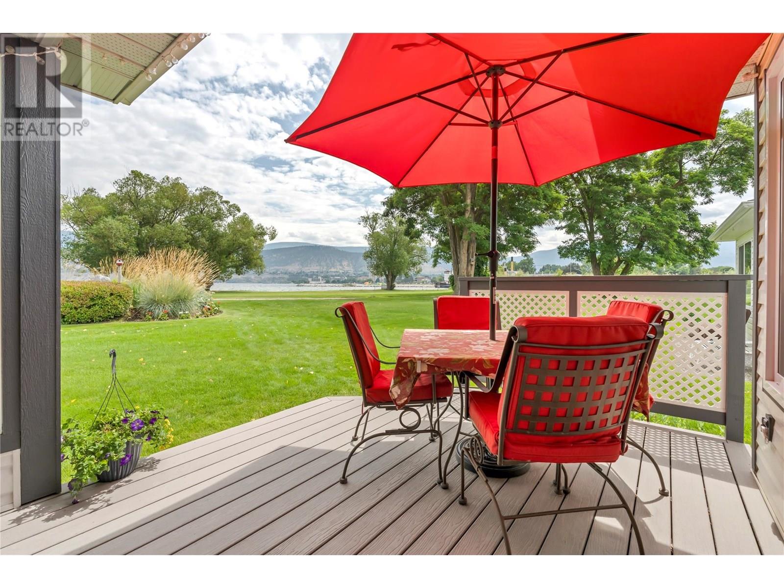 **OPEN HOUSE** SEPT 6th 10:30am - 12:00pm. Beachfront living! Relax on the brand new covered deck with incredible views of Okanagan Lake and Naramata bench. This 2 bedroom, 2 bath rancher is one of the largest and most well laid out units in Red Wing and has been methodically updated over the past 7 years. Backing onto Okanagan Lake with manicured gardens and lawn space, enjoy a renovated patio with hot tub. Inside the entire home has new vinyl flooring, trim, paint and light fixtures. The kitchen has been updated and modified to accommodate larger modern appliances. The rear living room has gas fireplace, and an added window for more of those incredible views. Garage access is through the large laundry room and has new epoxy flooring, tons of storage and rubberized driveway and walkway. Modern, tasteful updates and gorgeous views from almost every room, this home is sure to impress. Enjoy all the amenities Red Wing has to offer while living the Okanagan Dream. Red Wing is a 40+ community that allows pets and has a beautiful lakefront community centre, private beach, RV storage and dock. Pre-paid lease until 2036 and affordable monthly HOA fees of $250. Measurements taken from iGuide, verify if deemed important. (id:47466)