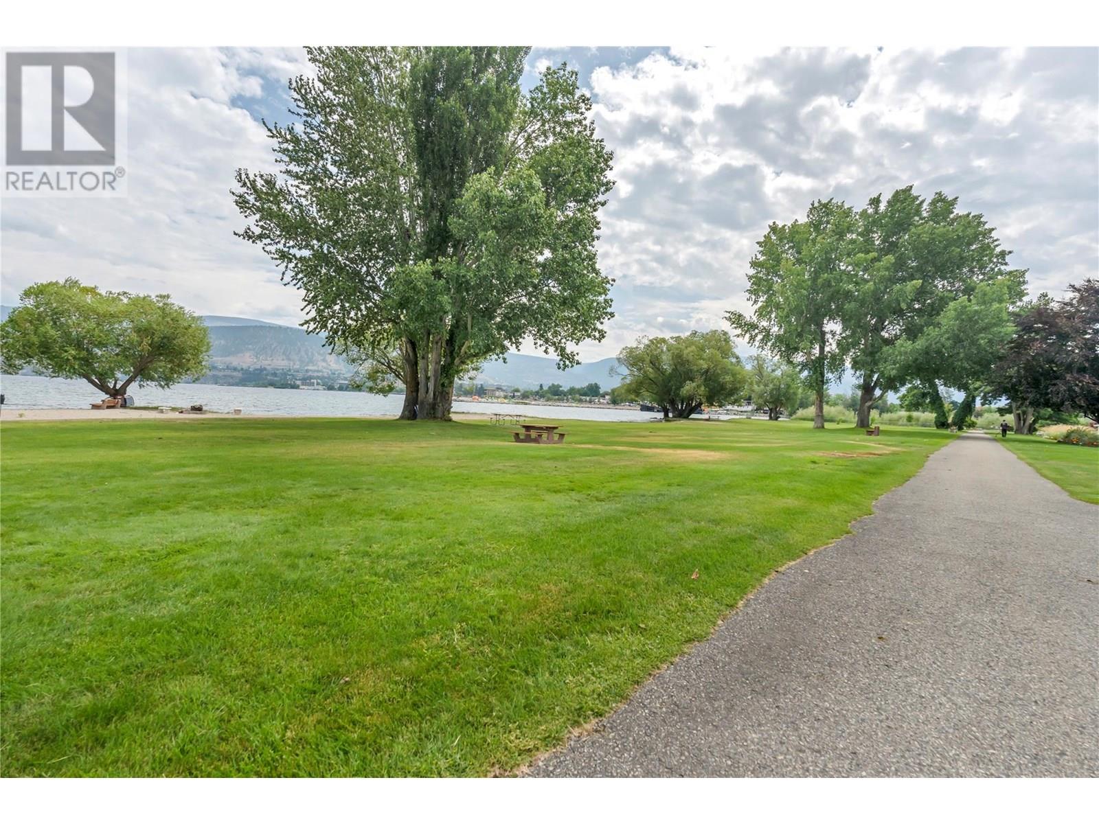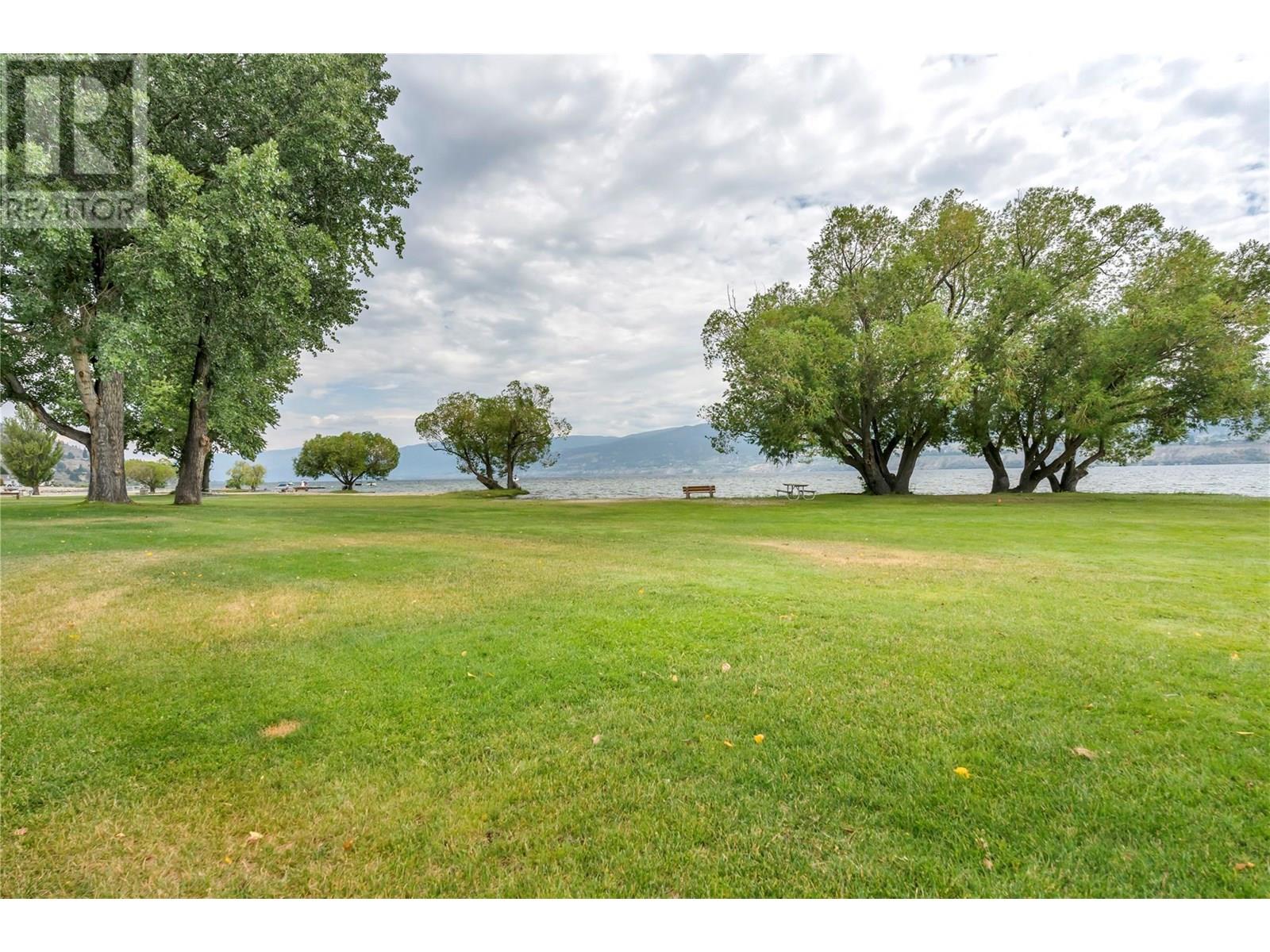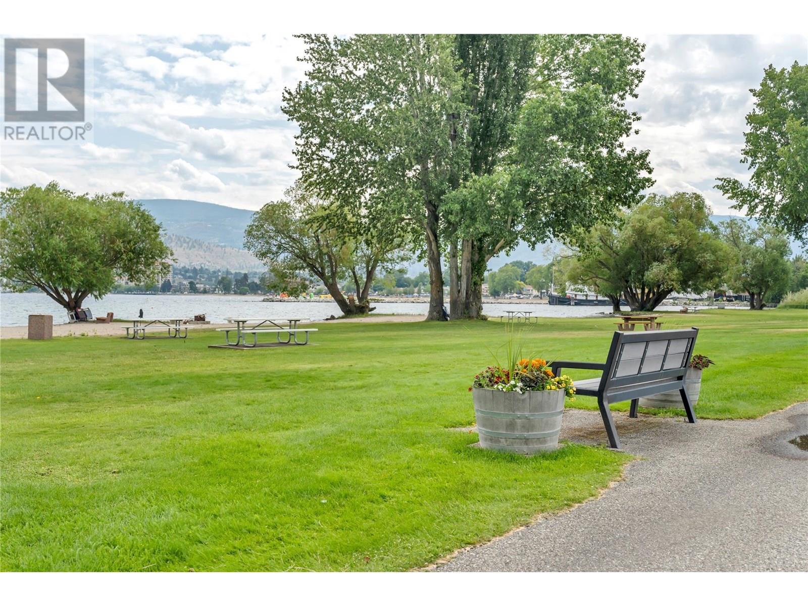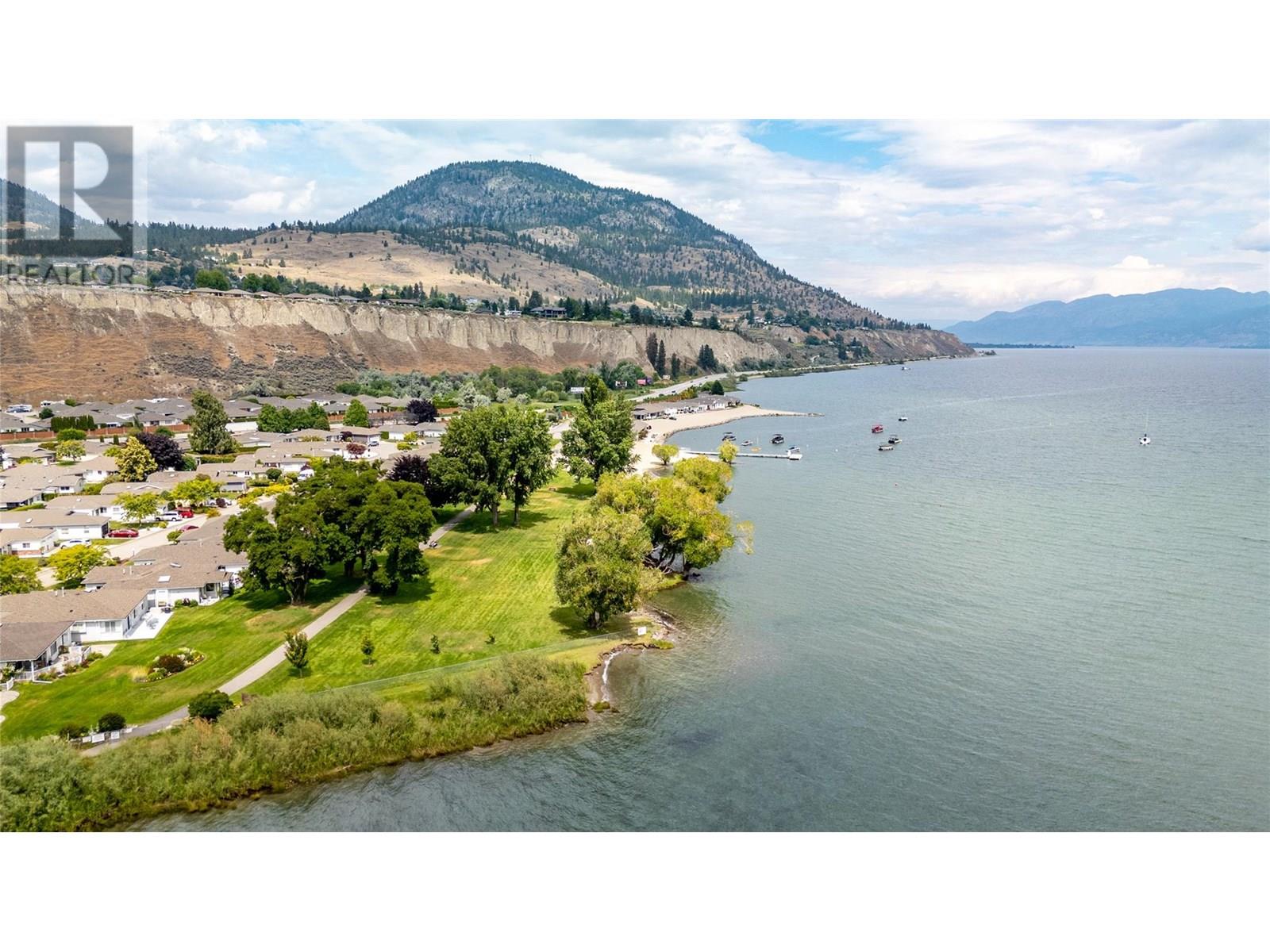 **OPEN HOUSE** SEPT 6th 10:30am - 12:00pm. Beachfront living! Relax on the brand new covered deck with incredible views of Okanagan Lake and Naramata bench. This 2 bedroom, 2 bath rancher is one of the largest and most well laid out units in Red Wing and has been methodically updated over the past 7 years. Backing onto Okanagan Lake with manicured gardens and lawn space, enjoy a renovated patio with hot tub. Inside the entire home has new vinyl flooring, trim, paint and light fixtures. The kitchen has been updated and modified to accommodate larger modern appliances. The rear living room has gas fireplace, and an added window for more of those incredible views. Garage access is through the large laundry room and has new epoxy flooring, tons of storage and rubberized driveway and walkway. Modern, tasteful updates and gorgeous views from almost every room, this home is sure to impress. Enjoy all the amenities Red Wing has to offer while living the Okanagan Dream. Red Wing is a 40+ community that allows pets and has a beautiful lakefront community centre, private beach, RV storage and dock. Pre-paid lease until 2036 and affordable monthly HOA fees of $250. Measurements taken from iGuide, verify if deemed important. (id:47466)