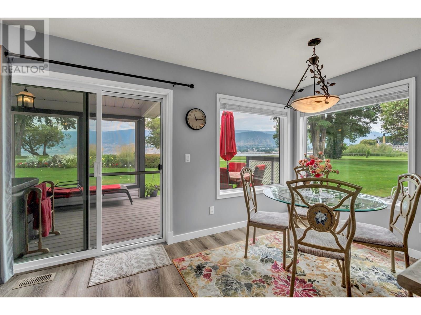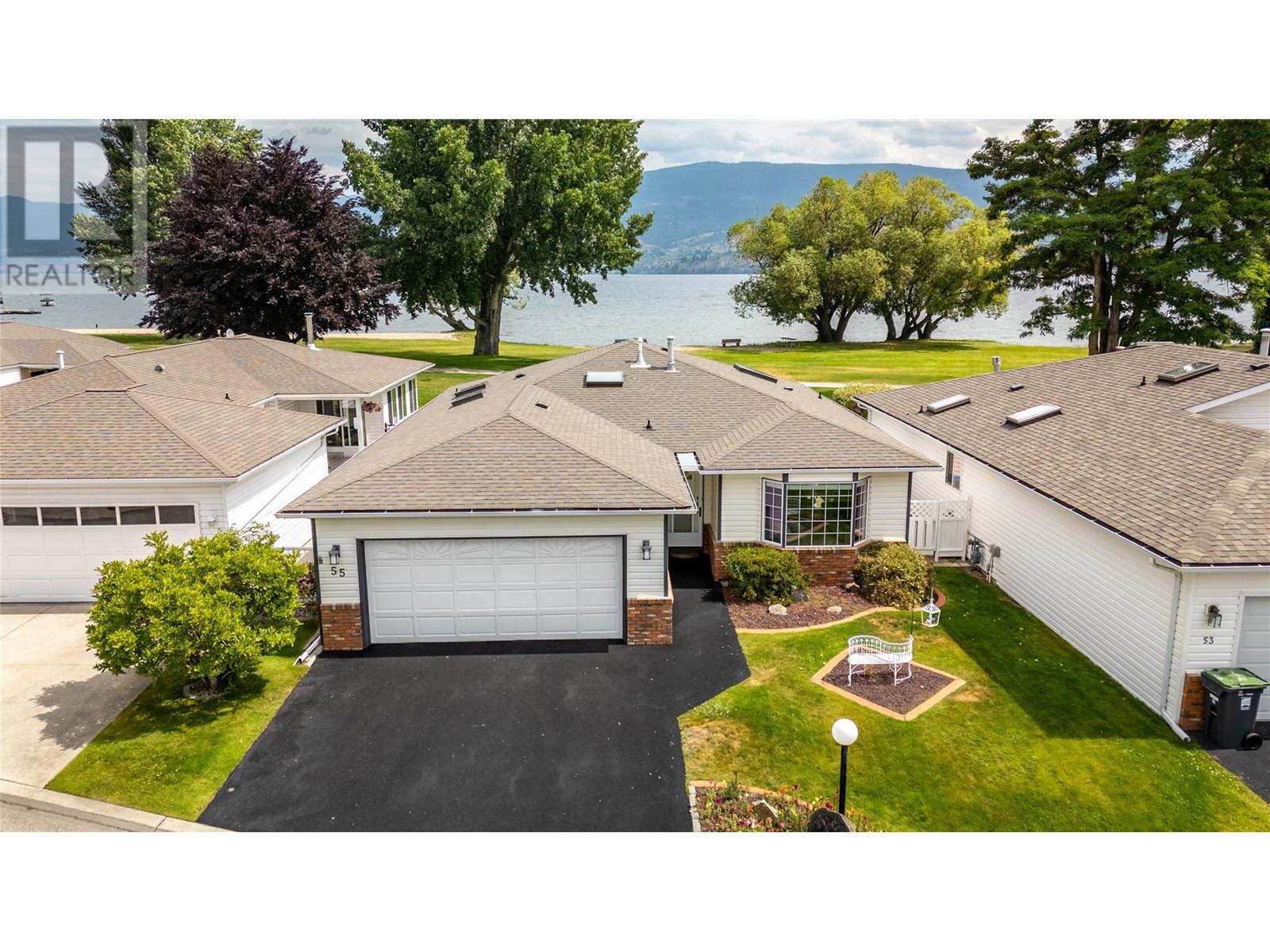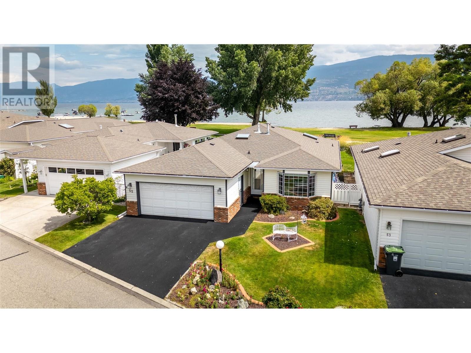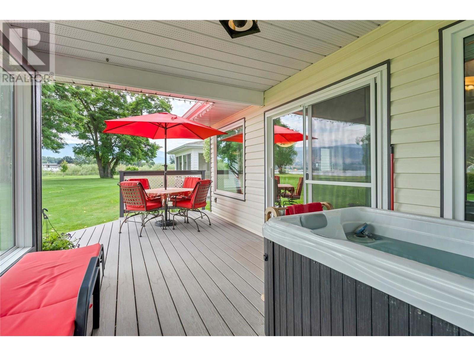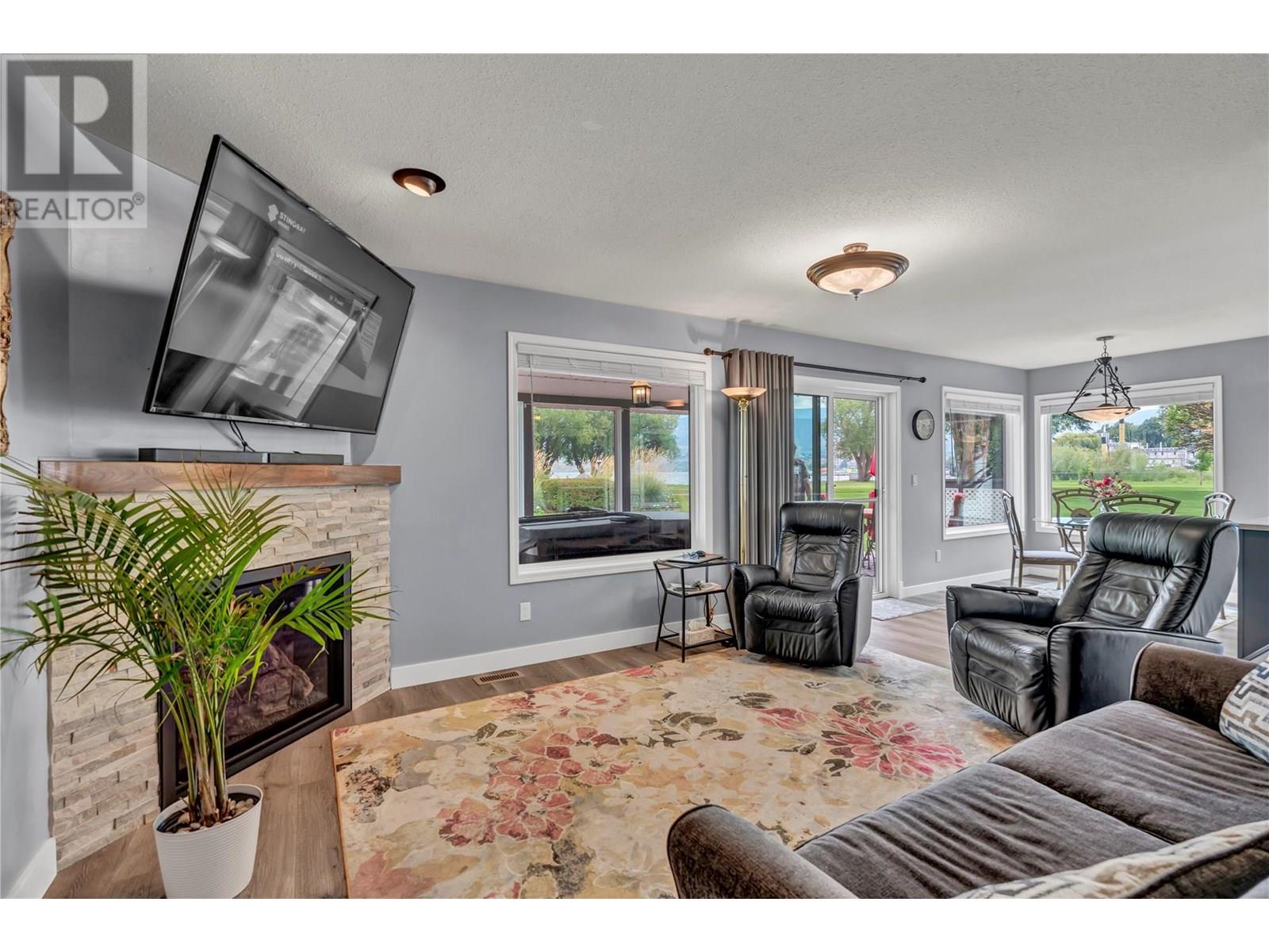 **OPEN HOUSE** SEPT 6th 10:30am - 12:00pm. Beachfront living! Relax on the brand new covered deck with incredible views of Okanagan Lake and Naramata bench. This 2 bedroom, 2 bath rancher is one of the largest and most well laid out units in Red Wing and has been methodically updated over the past 7 years. Backing onto Okanagan Lake with manicured gardens and lawn space, enjoy a renovated patio with hot tub. Inside the entire home has new vinyl flooring, trim, paint and light fixtures. The kitchen has been updated and modified to accommodate larger modern appliances. The rear living room has gas fireplace, and an added window for more of those incredible views. Garage access is through the large laundry room and has new epoxy flooring, tons of storage and rubberized driveway and walkway. Modern, tasteful updates and gorgeous views from almost every room, this home is sure to impress. Enjoy all the amenities Red Wing has to offer while living the Okanagan Dream. Red Wing is a 40+ community that allows pets and has a beautiful lakefront community centre, private beach, RV storage and dock. Pre-paid lease until 2036 and affordable monthly HOA fees of $250. Measurements taken from iGuide, verify if deemed important. (id:47466)