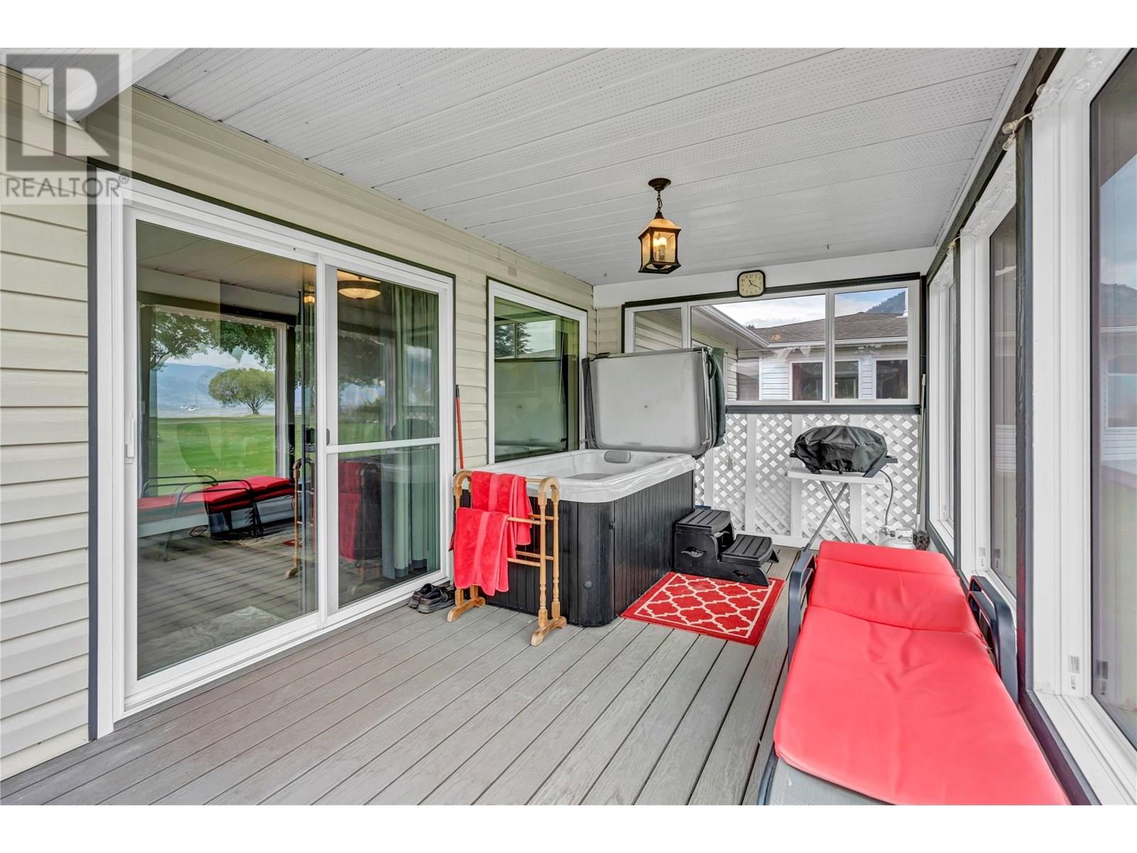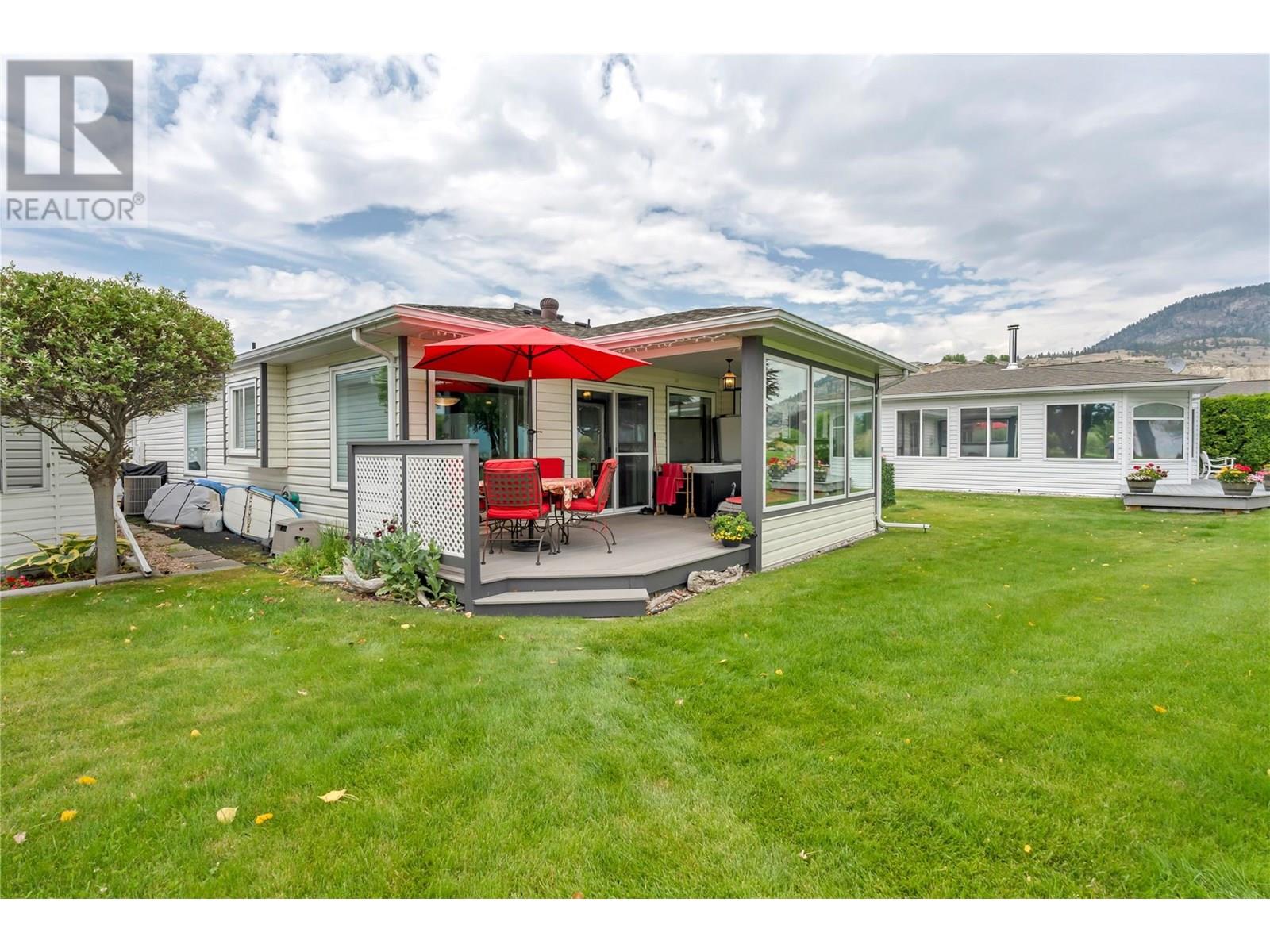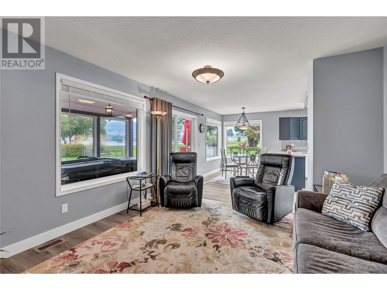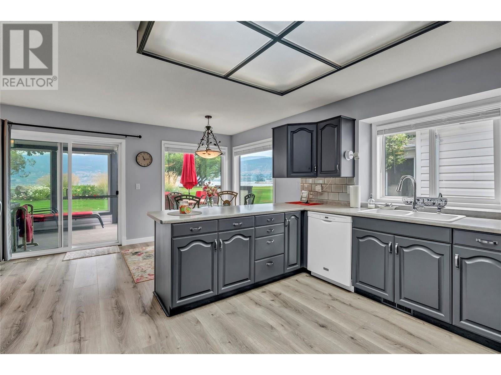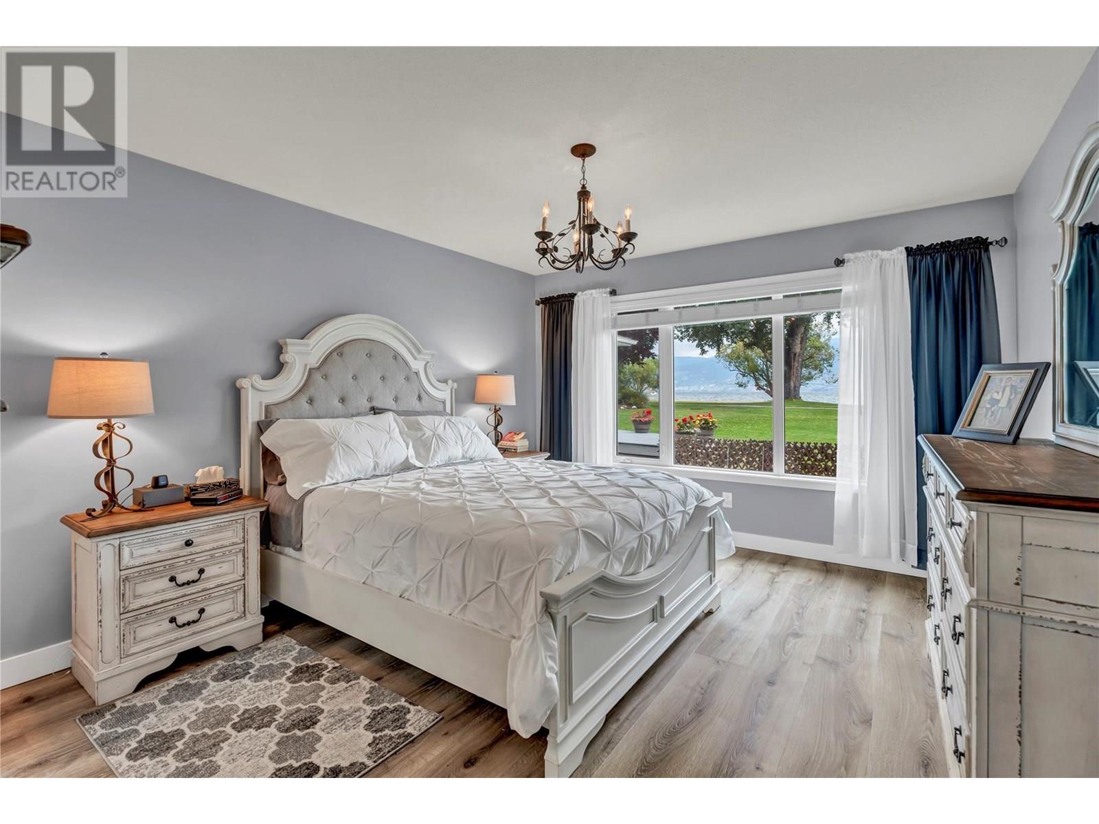 **OPEN HOUSE** SEPT 6th 10:30am - 12:00pm. Beachfront living! Relax on the brand new covered deck with incredible views of Okanagan Lake and Naramata bench. This 2 bedroom, 2 bath rancher is one of the largest and most well laid out units in Red Wing and has been methodically updated over the past 7 years. Backing onto Okanagan Lake with manicured gardens and lawn space, enjoy a renovated patio with hot tub. Inside the entire home has new vinyl flooring, trim, paint and light fixtures. The kitchen has been updated and modified to accommodate larger modern appliances. The rear living room has gas fireplace, and an added window for more of those incredible views. Garage access is through the large laundry room and has new epoxy flooring, tons of storage and rubberized driveway and walkway. Modern, tasteful updates and gorgeous views from almost every room, this home is sure to impress. Enjoy all the amenities Red Wing has to offer while living the Okanagan Dream. Red Wing is a 40+ community that allows pets and has a beautiful lakefront community centre, private beach, RV storage and dock. Pre-paid lease until 2036 and affordable monthly HOA fees of $250. Measurements taken from iGuide, verify if deemed important. (id:47466)