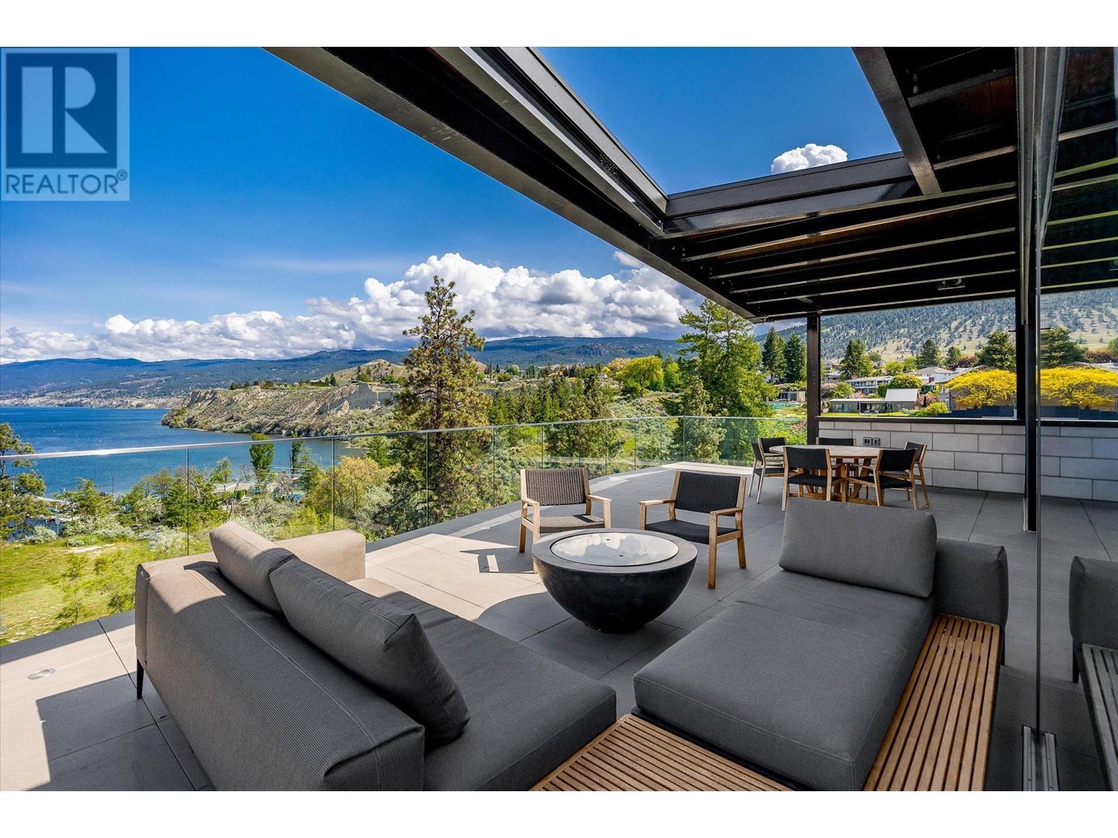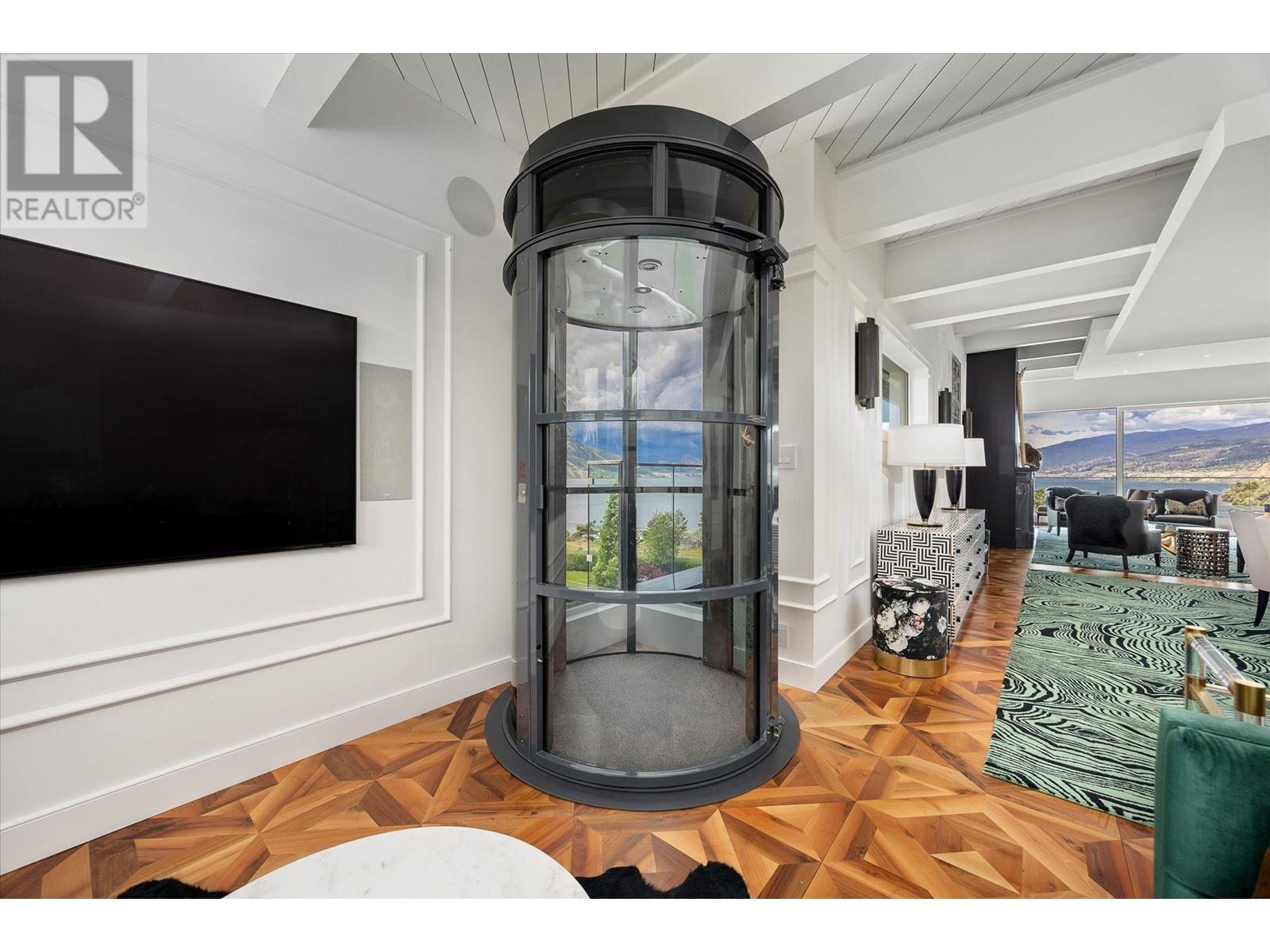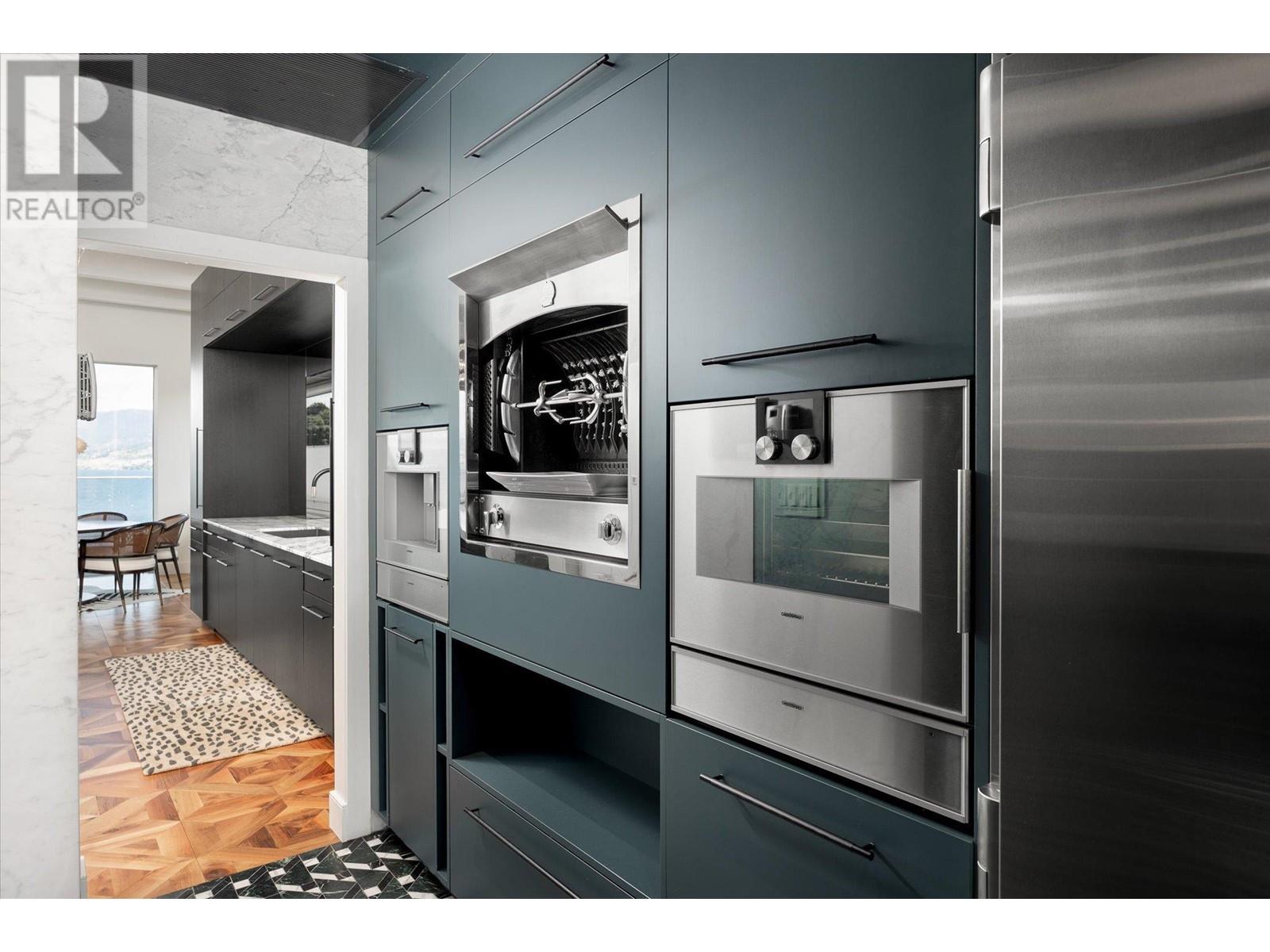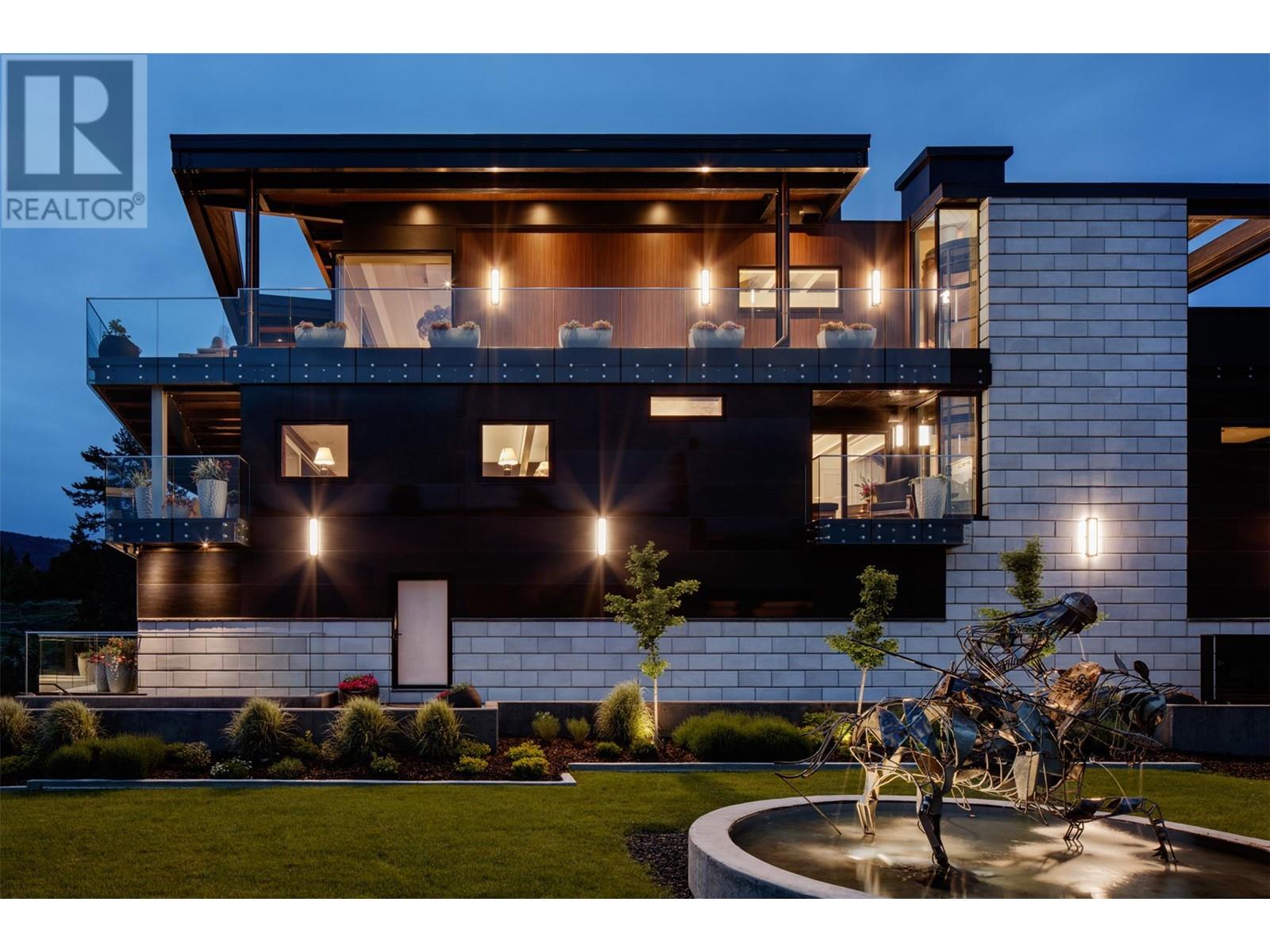 Discover a masterpiece at the southern tip of Okanagan Lake. A property that defines bespoke in one of the world’s most breathtaking settings. This estate seamlessly blends modern amenities with timeless European-inspired craftsmanship. From the custom vertical gate, you approach the home featuring open steel beams, intricate marble mosaic and hand crafted walnut floors. Seven expansive patios surround its exterior, offering sun, shade and unmatched lake views. The interior combines industrial strength with refined luxury. Every detail speaks of curated elegance - gold leaf mirrors from Paris, Christopher Boots lighting, and floating Verde marble staircases. The third floor great room features a wall of sliding glass doors and with its height, the feeling of sailing northward up the lake. A sophisticated working kitchen with commercial-grade La Cornue appliances is adjacent to your gathering space for family and friends. The primary suite offers panoramic lake vistas, a large balcony, and luxurious Nero Marquina marble in the ensuite, complete with twin soaking tubs facing dramatic sunsets. The home flows with natural light, accentuating its harmony of old-world charm and modern sophistication. Surrounded by seasonal beauty, from vibrant summers to rich autumn hues, this residence is more than just a home; it is a statement, a true sanctuary in one of Canada’s most stunning locations. Truly, this residence is best experienced in person to be fully appreciated. (id:47466)