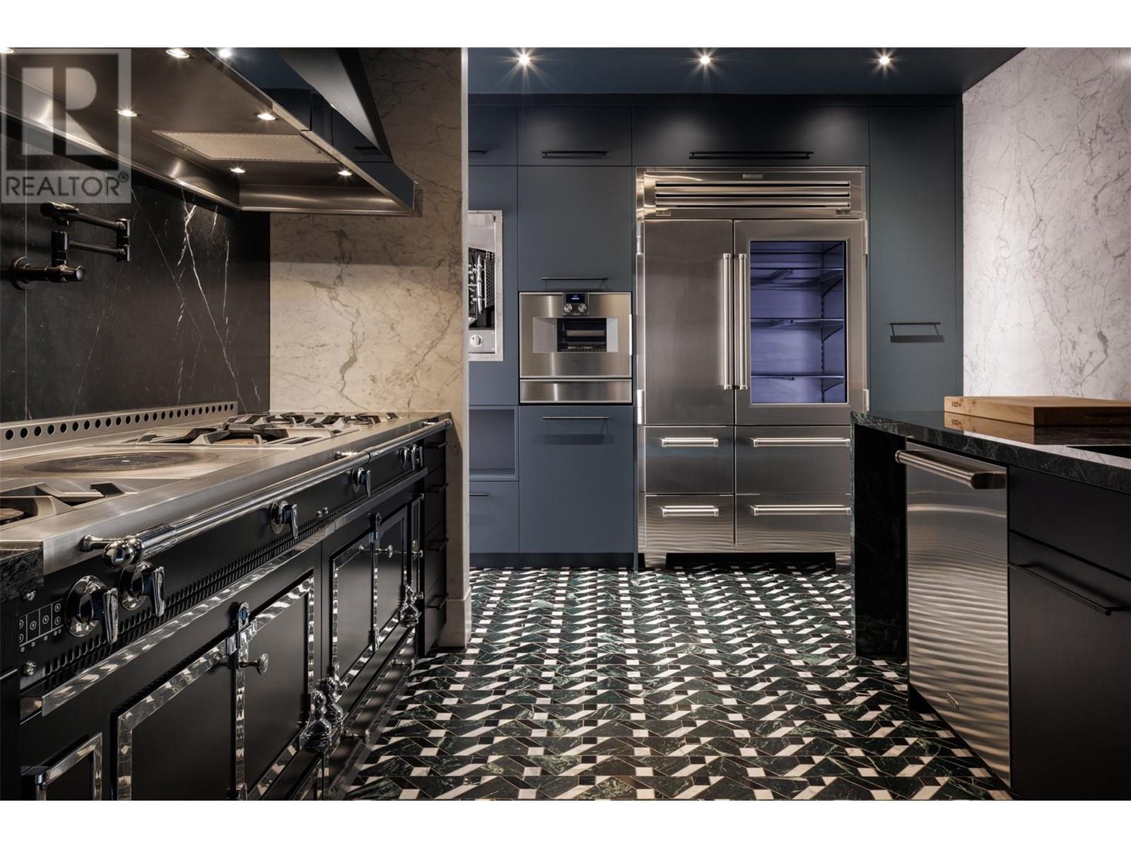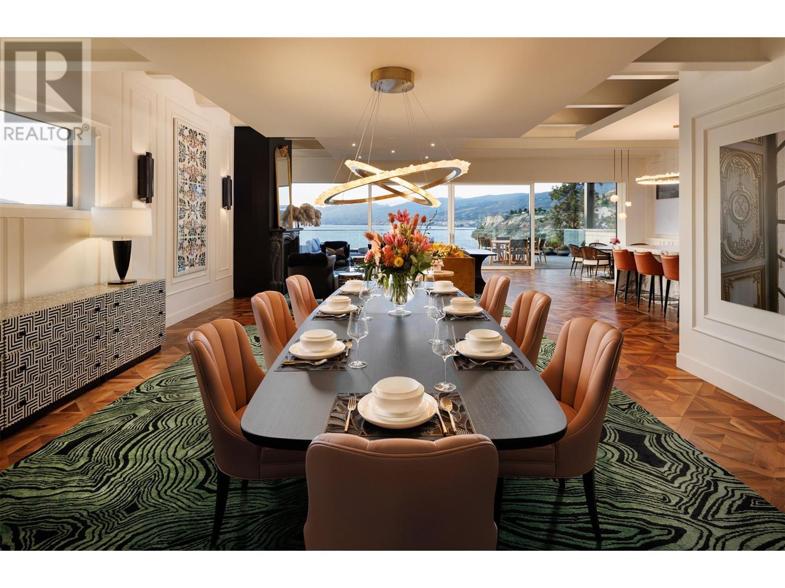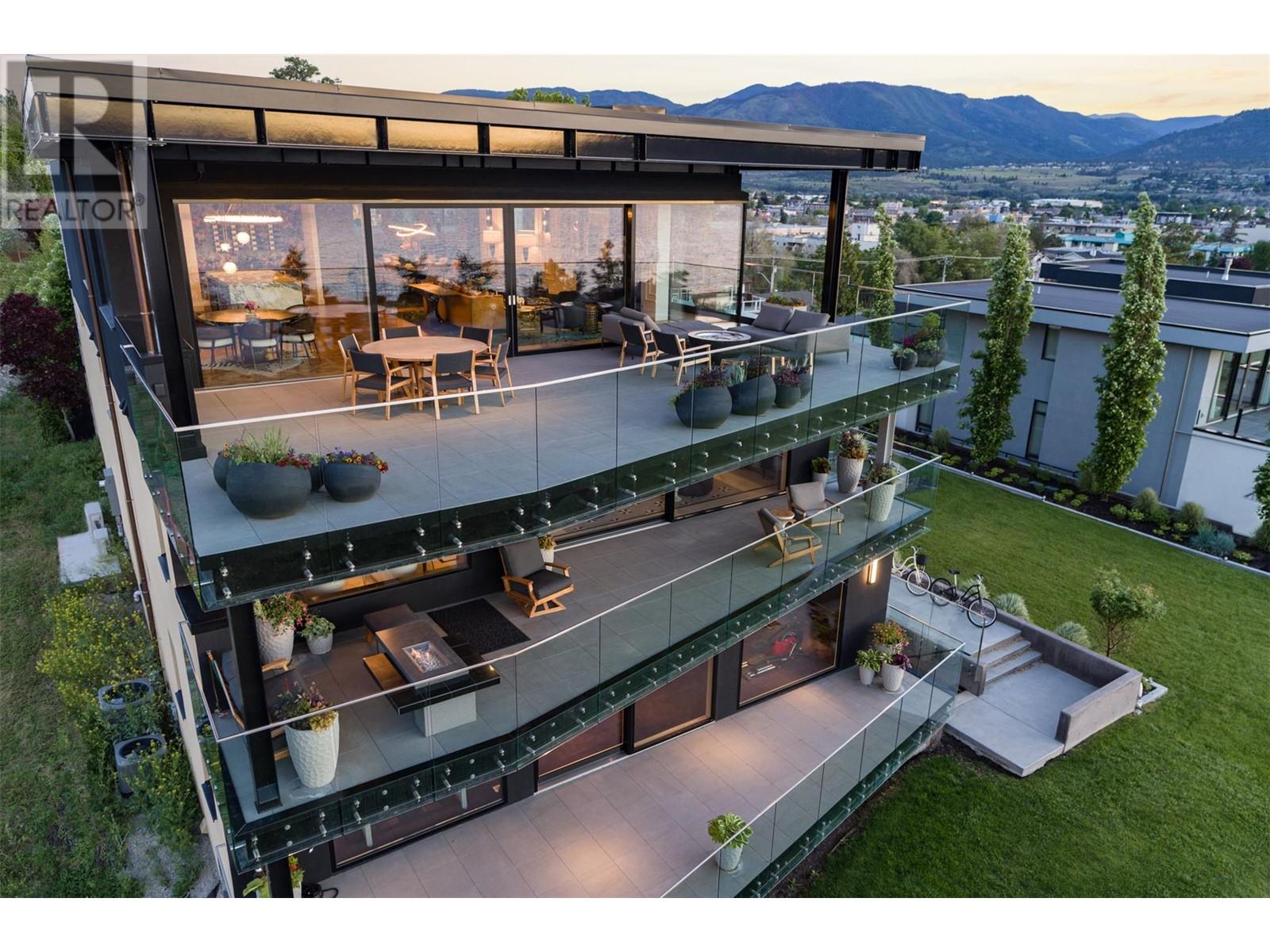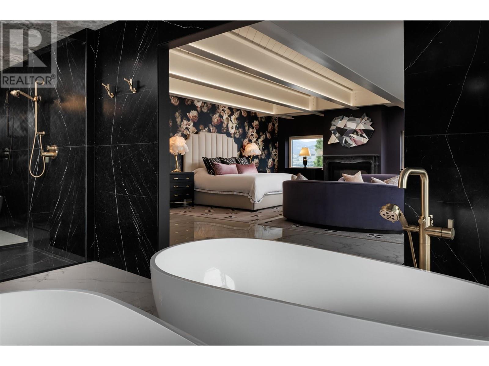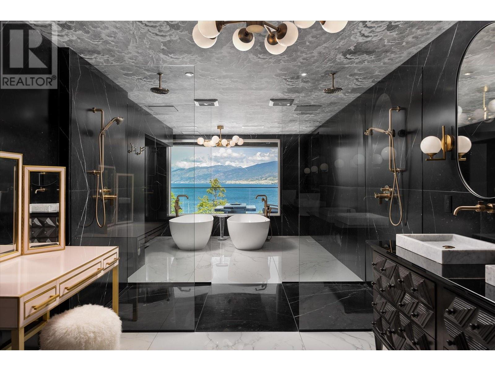 Discover a masterpiece at the southern tip of Okanagan Lake. A property that defines bespoke in one of the world’s most breathtaking settings. This estate seamlessly blends modern amenities with timeless European-inspired craftsmanship. From the custom vertical gate, you approach the home featuring open steel beams, intricate marble mosaic and hand crafted walnut floors. Seven expansive patios surround its exterior, offering sun, shade and unmatched lake views. The interior combines industrial strength with refined luxury. Every detail speaks of curated elegance - gold leaf mirrors from Paris, Christopher Boots lighting, and floating Verde marble staircases. The third floor great room features a wall of sliding glass doors and with its height, the feeling of sailing northward up the lake. A sophisticated working kitchen with commercial-grade La Cornue appliances is adjacent to your gathering space for family and friends. The primary suite offers panoramic lake vistas, a large balcony, and luxurious Nero Marquina marble in the ensuite, complete with twin soaking tubs facing dramatic sunsets. The home flows with natural light, accentuating its harmony of old-world charm and modern sophistication. Surrounded by seasonal beauty, from vibrant summers to rich autumn hues, this residence is more than just a home; it is a statement, a true sanctuary in one of Canada’s most stunning locations. Truly, this residence is best experienced in person to be fully appreciated. (id:47466)