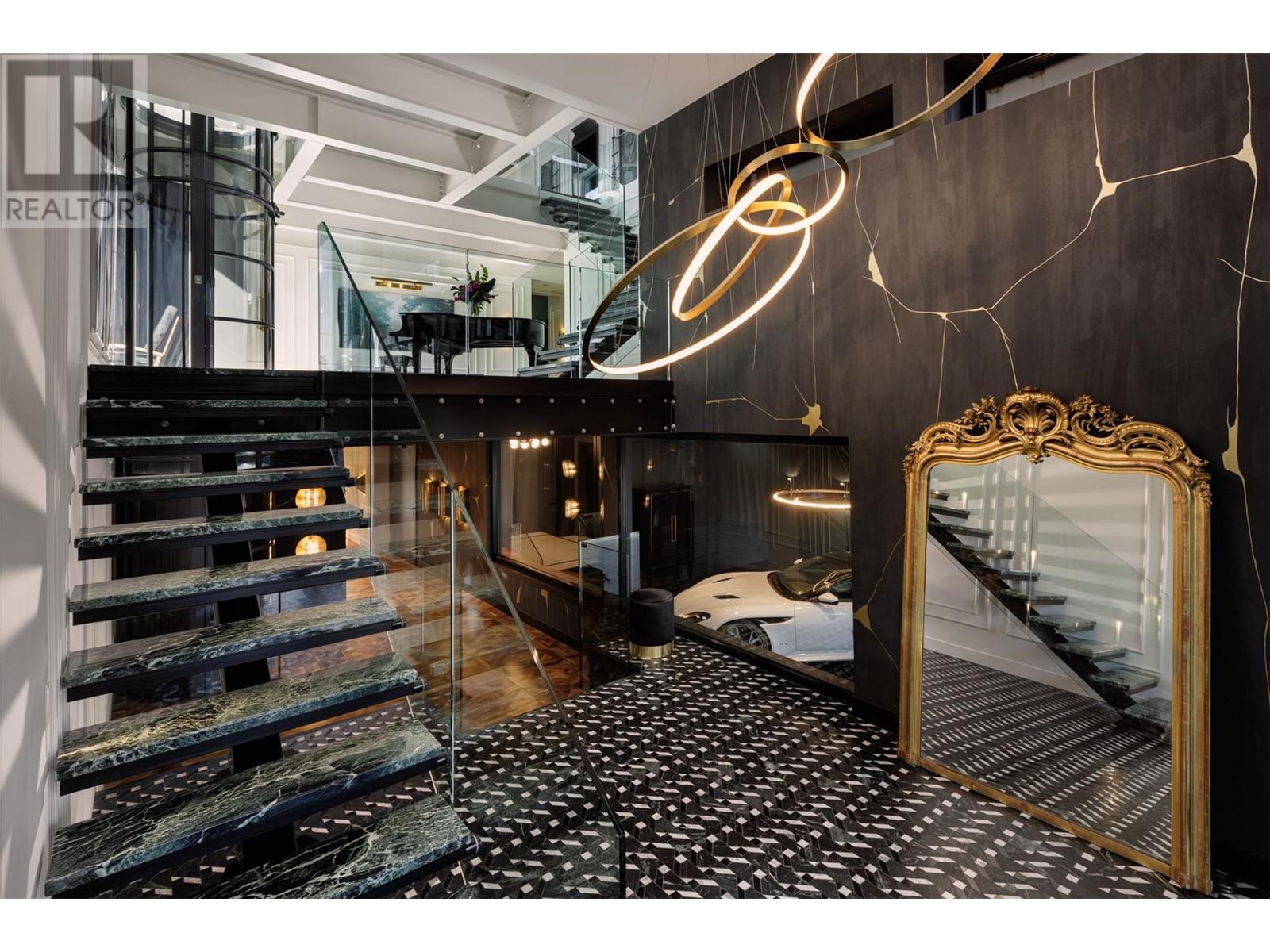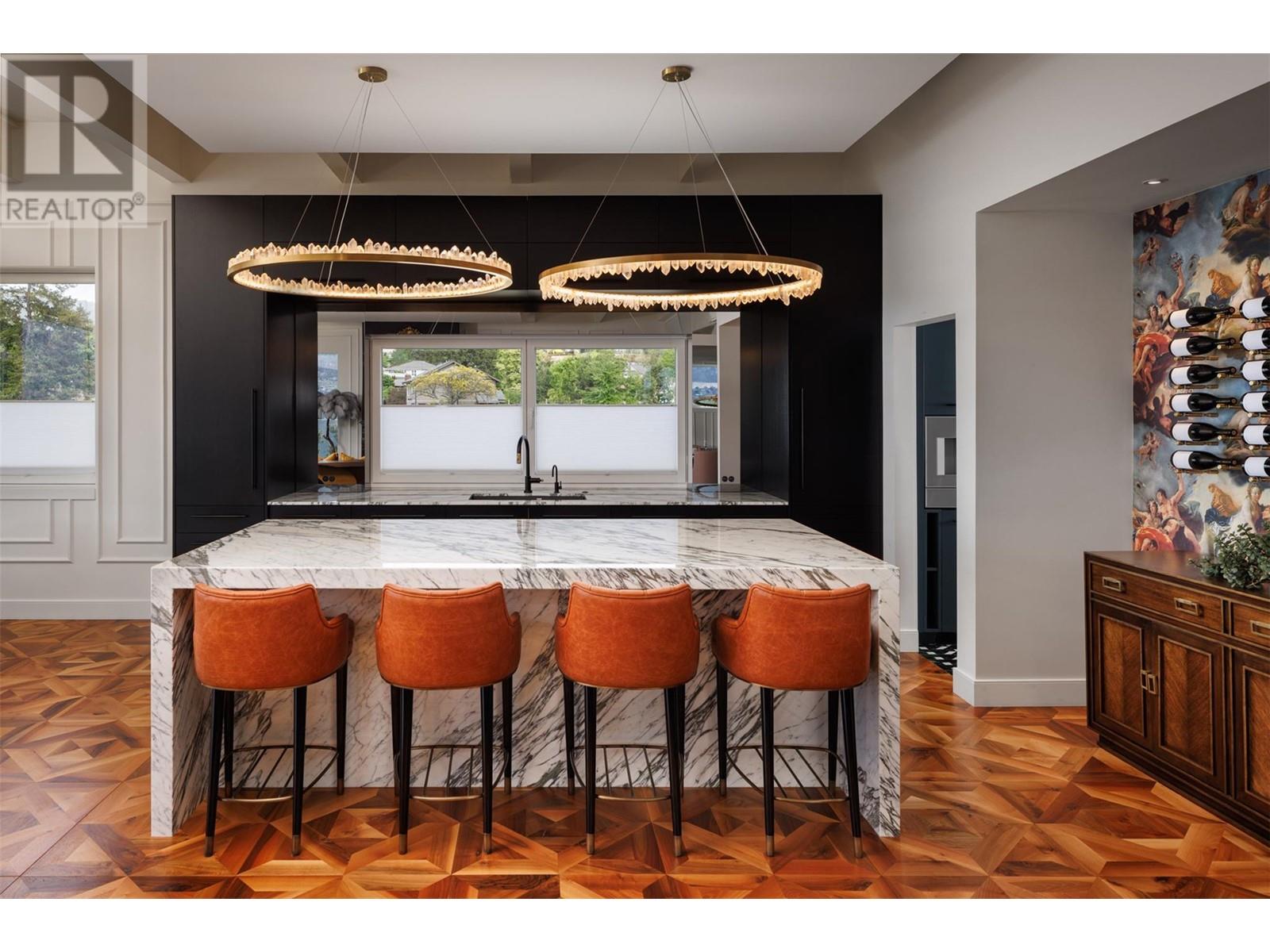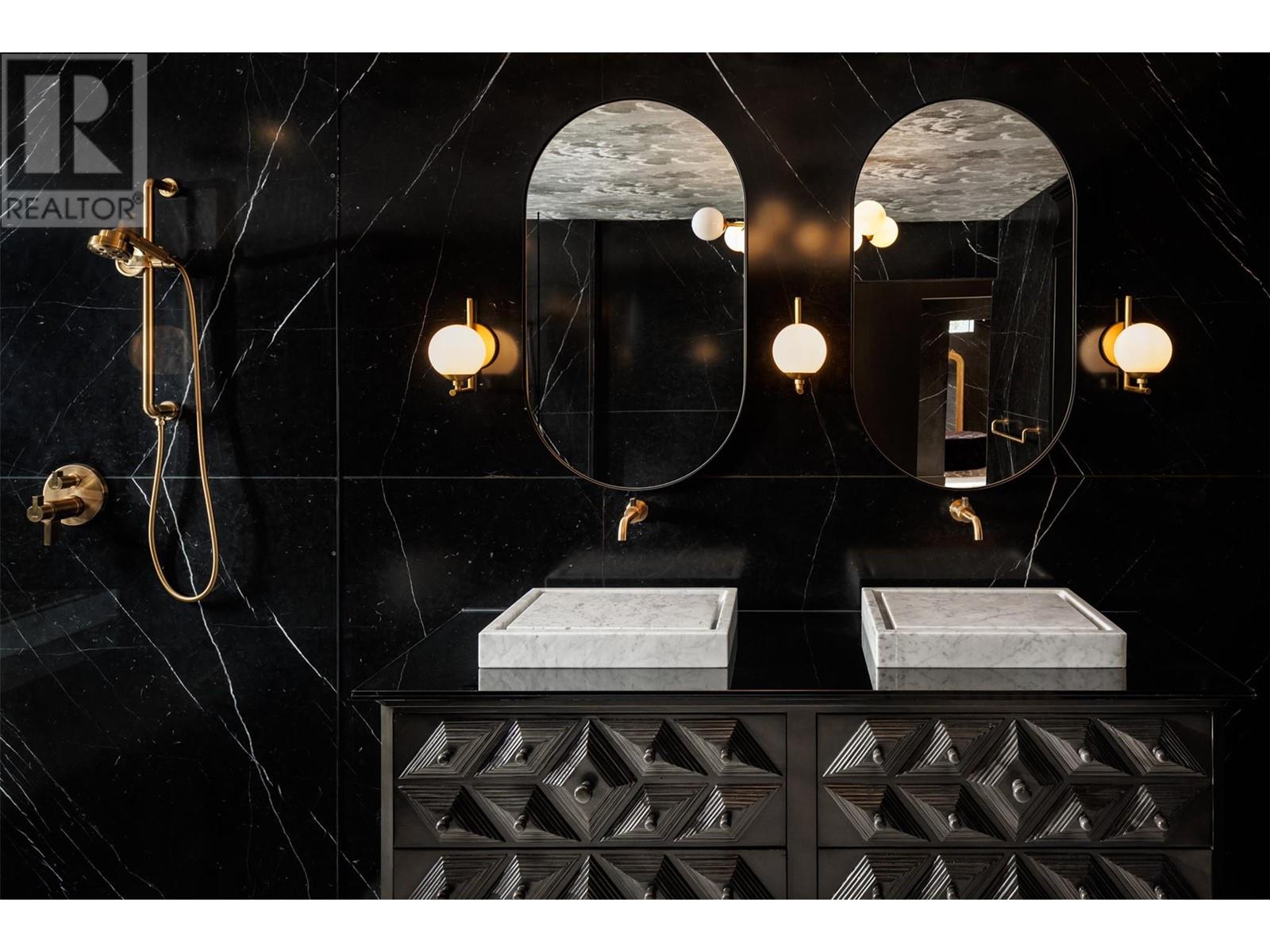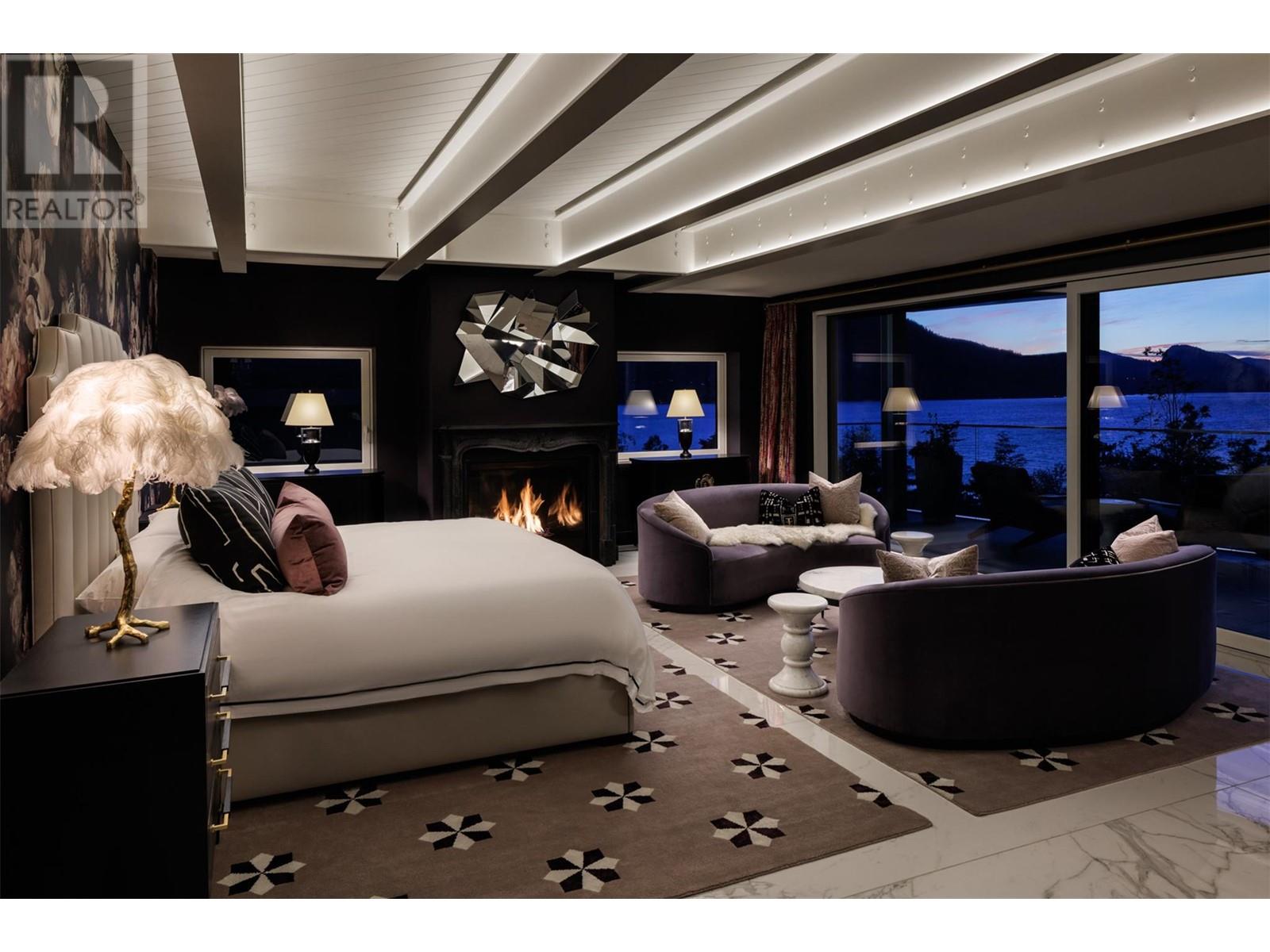 Discover a masterpiece at the southern tip of Okanagan Lake. A property that defines bespoke in one of the world’s most breathtaking settings. This estate seamlessly blends modern amenities with timeless European-inspired craftsmanship. From the custom vertical gate, you approach the home featuring open steel beams, intricate marble mosaic and hand crafted walnut floors. Seven expansive patios surround its exterior, offering sun, shade and unmatched lake views. The interior combines industrial strength with refined luxury. Every detail speaks of curated elegance - gold leaf mirrors from Paris, Christopher Boots lighting, and floating Verde marble staircases. The third floor great room features a wall of sliding glass doors and with its height, the feeling of sailing northward up the lake. A sophisticated working kitchen with commercial-grade La Cornue appliances is adjacent to your gathering space for family and friends. The primary suite offers panoramic lake vistas, a large balcony, and luxurious Nero Marquina marble in the ensuite, complete with twin soaking tubs facing dramatic sunsets. The home flows with natural light, accentuating its harmony of old-world charm and modern sophistication. Surrounded by seasonal beauty, from vibrant summers to rich autumn hues, this residence is more than just a home; it is a statement, a true sanctuary in one of Canada’s most stunning locations. Truly, this residence is best experienced in person to be fully appreciated. (id:47466)