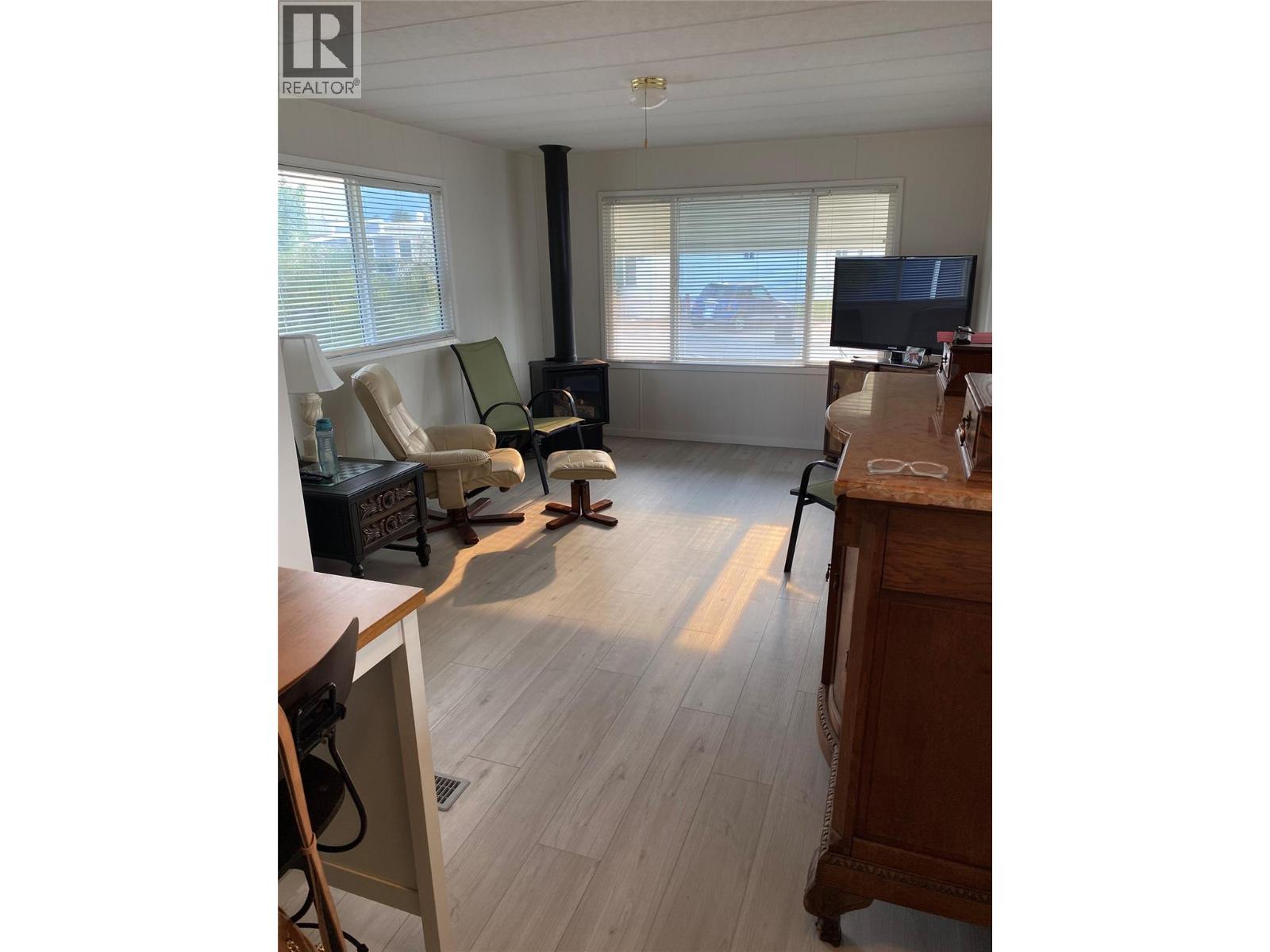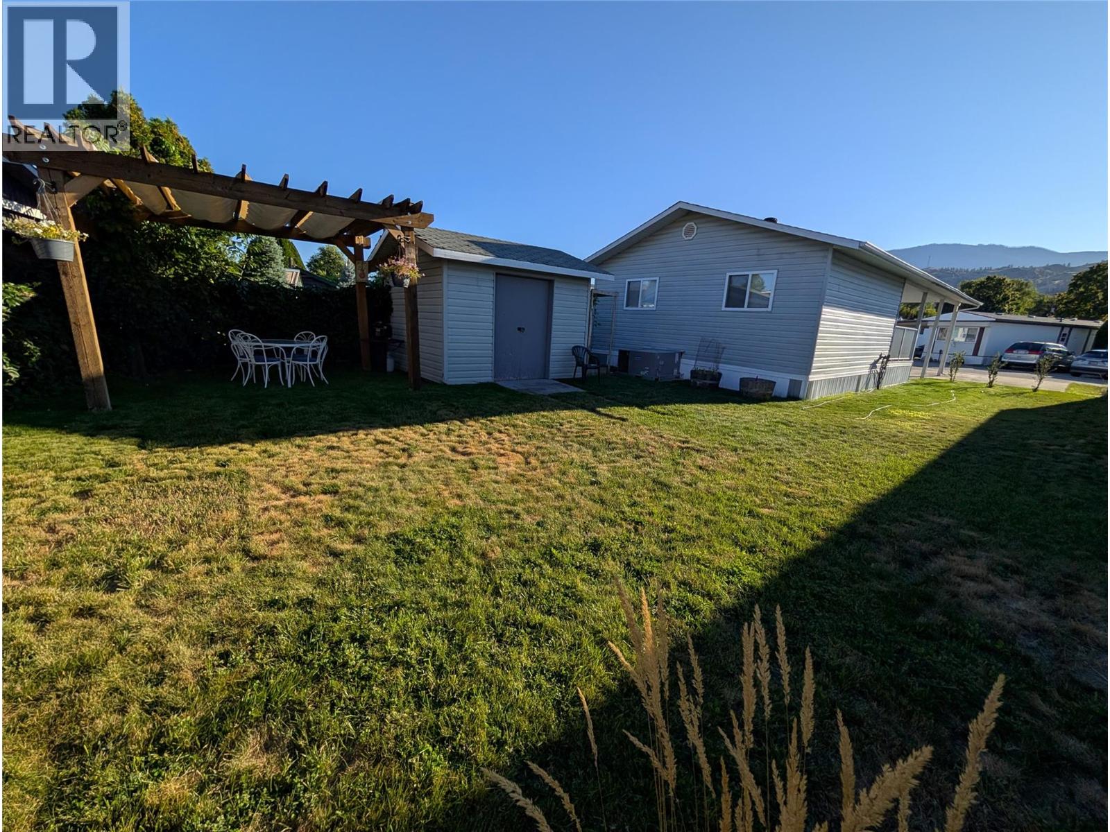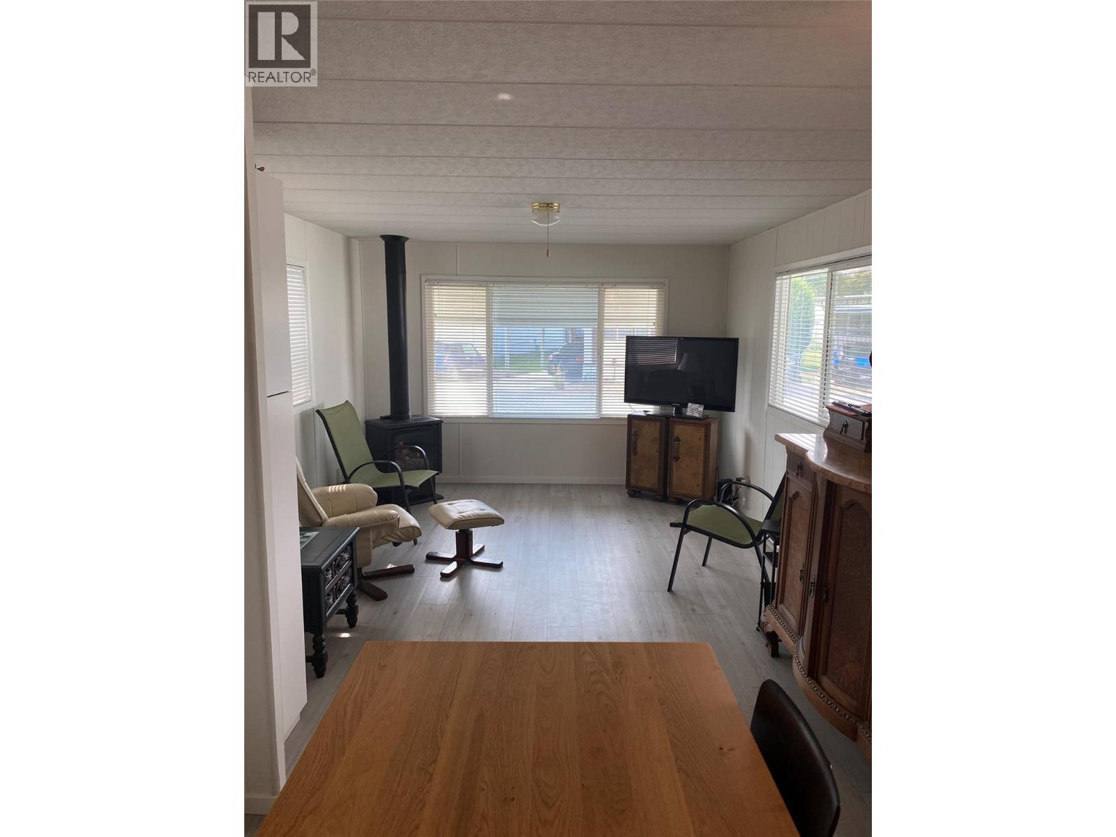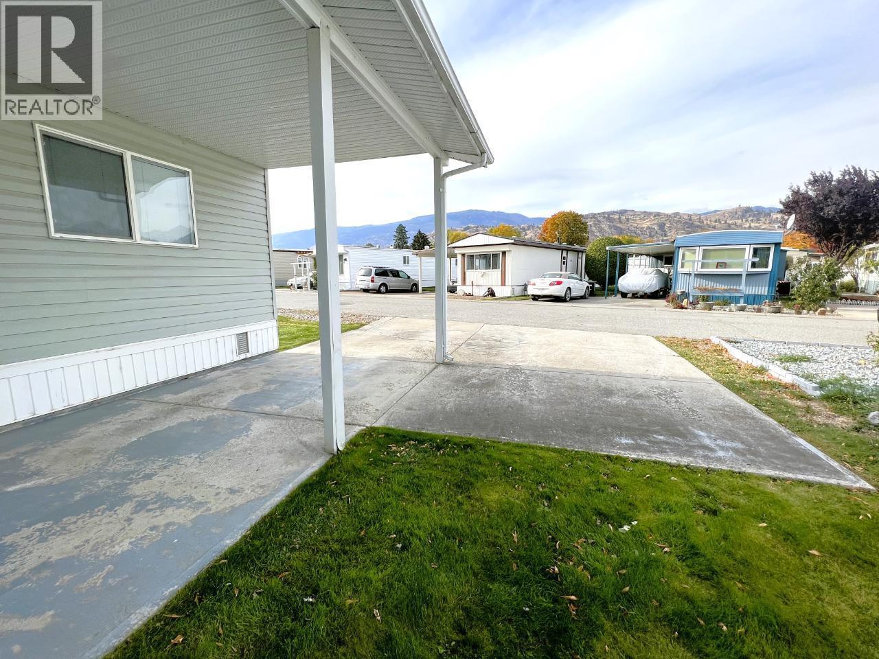 Welcome to Tradewinds Estates in Oliver, located on Tucelnuit Lake with its own private beach access, just steps away from this lovely home. Single wide mobile with addition has been well maintained & offers 2 bedrooms, a den & 2 bathrooms. UPDATES INCLUDE NEW VINYL FLOORING, BASEBOARDS, PAINT, KITCHEN COUNTERS & BACKSPLASH, HOODFAN, BACK YARD PERGOLA, PEX PLUMBING. Electrical (2022), a new roof, hot water tank, gas stove, ensuite toilet, shower/main bath. Newer vinyl windows, nice & bright. Large primary bedroom(no closet) w/3-pce ensuite. Good sized 2nd bedroom w/large closet, plus a den for some extra space. Main 3-pce bathroom doubles as a laundry room. Heat Pump uses natural gas for central heating & cooling. Gas fireplace in living room for cozy nights. Beautiful, large well-kept greenspace with U/G irrigation. Storage shed for a workshop or gardening tools. Covered front porch & carport plus extra parking. Centrally located close to beaches, golf & Community Centre. 55+ park, no pets or rentals permitted. Pad rent $700/mth. Quick possession possible! (id:47466)