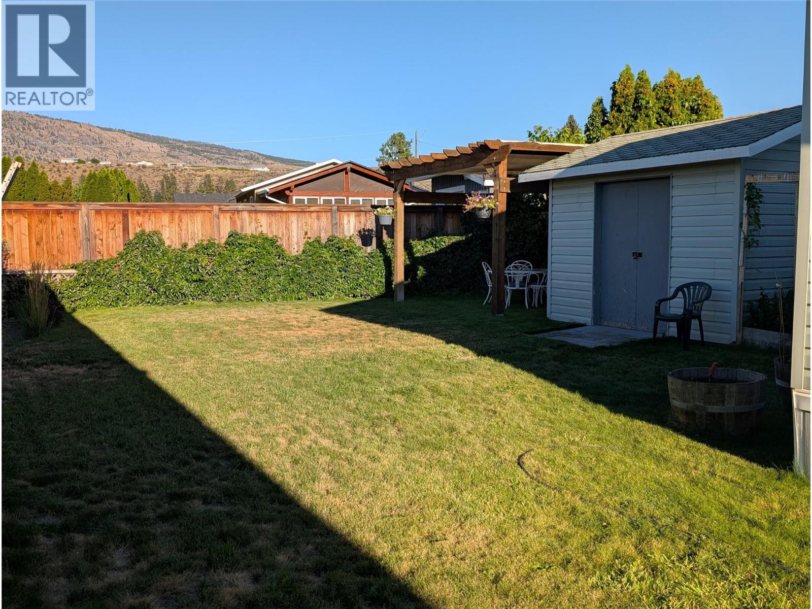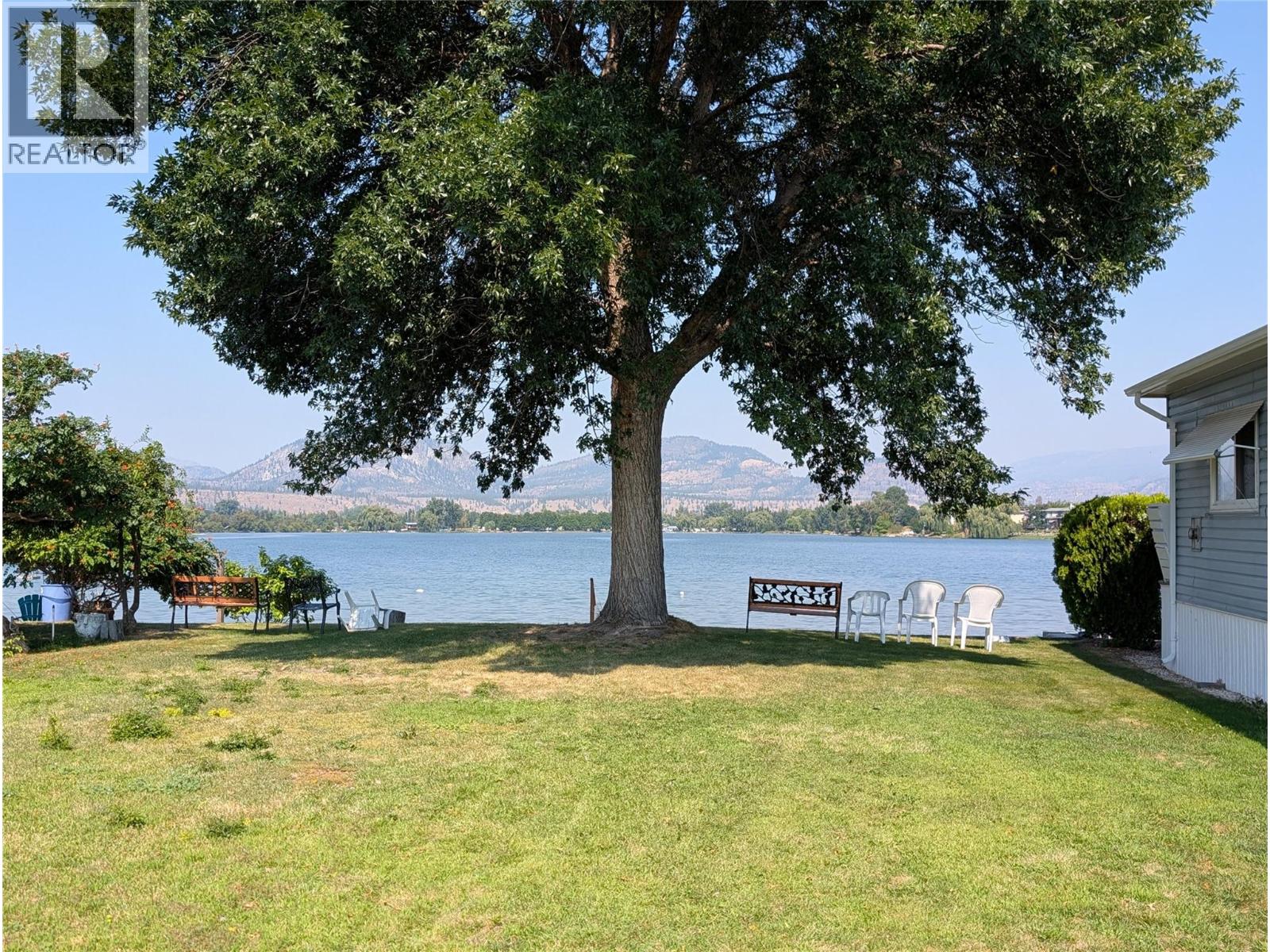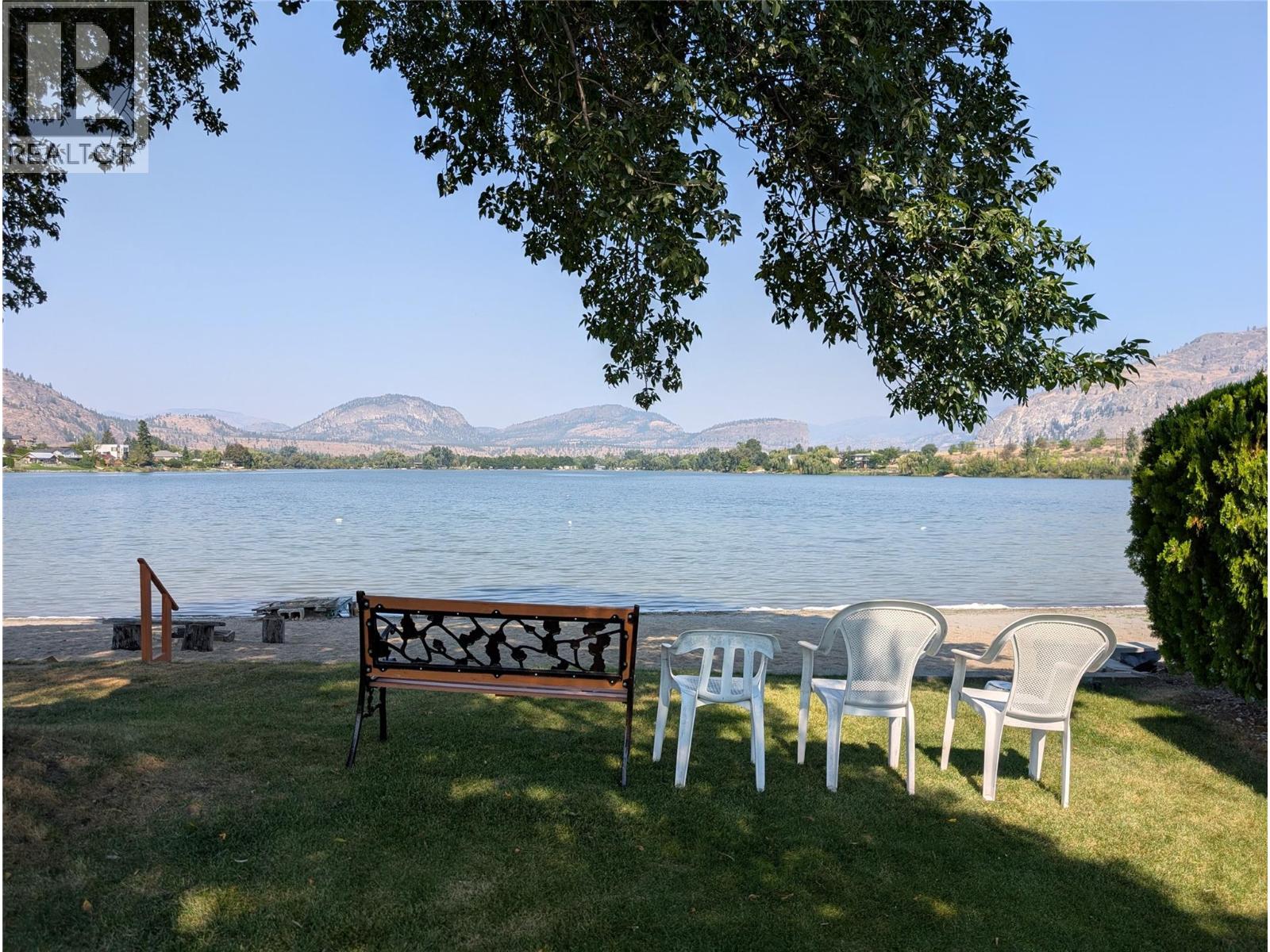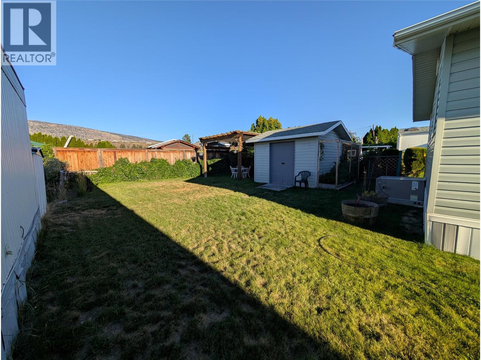 Welcome to Tradewinds Estates in Oliver, located on Tucelnuit Lake with its own private beach access, just steps away from this lovely home. Single wide mobile with addition has been well maintained & offers 2 bedrooms, a den & 2 bathrooms. UPDATES INCLUDE NEW VINYL FLOORING, BASEBOARDS, PAINT, KITCHEN COUNTERS & BACKSPLASH, HOODFAN, BACK YARD PERGOLA, PEX PLUMBING. Electrical (2022), a new roof, hot water tank, gas stove, ensuite toilet, shower/main bath. Newer vinyl windows, nice & bright. Large primary bedroom(no closet) w/3-pce ensuite. Good sized 2nd bedroom w/large closet, plus a den for some extra space. Main 3-pce bathroom doubles as a laundry room. Heat Pump uses natural gas for central heating & cooling. Gas fireplace in living room for cozy nights. Beautiful, large well-kept greenspace with U/G irrigation. Storage shed for a workshop or gardening tools. Covered front porch & carport plus extra parking. Centrally located close to beaches, golf & Community Centre. 55+ park, no pets or rentals permitted. Pad rent $700/mth. Quick possession possible! (id:47466)
