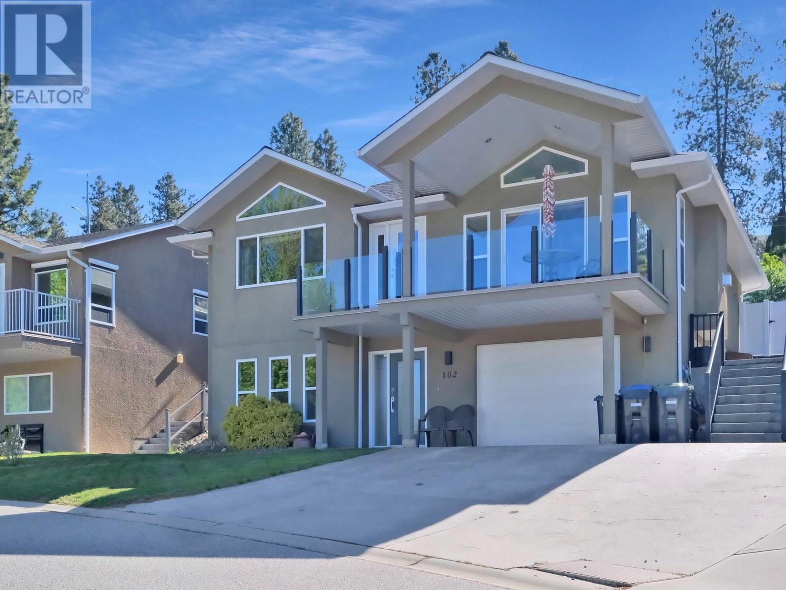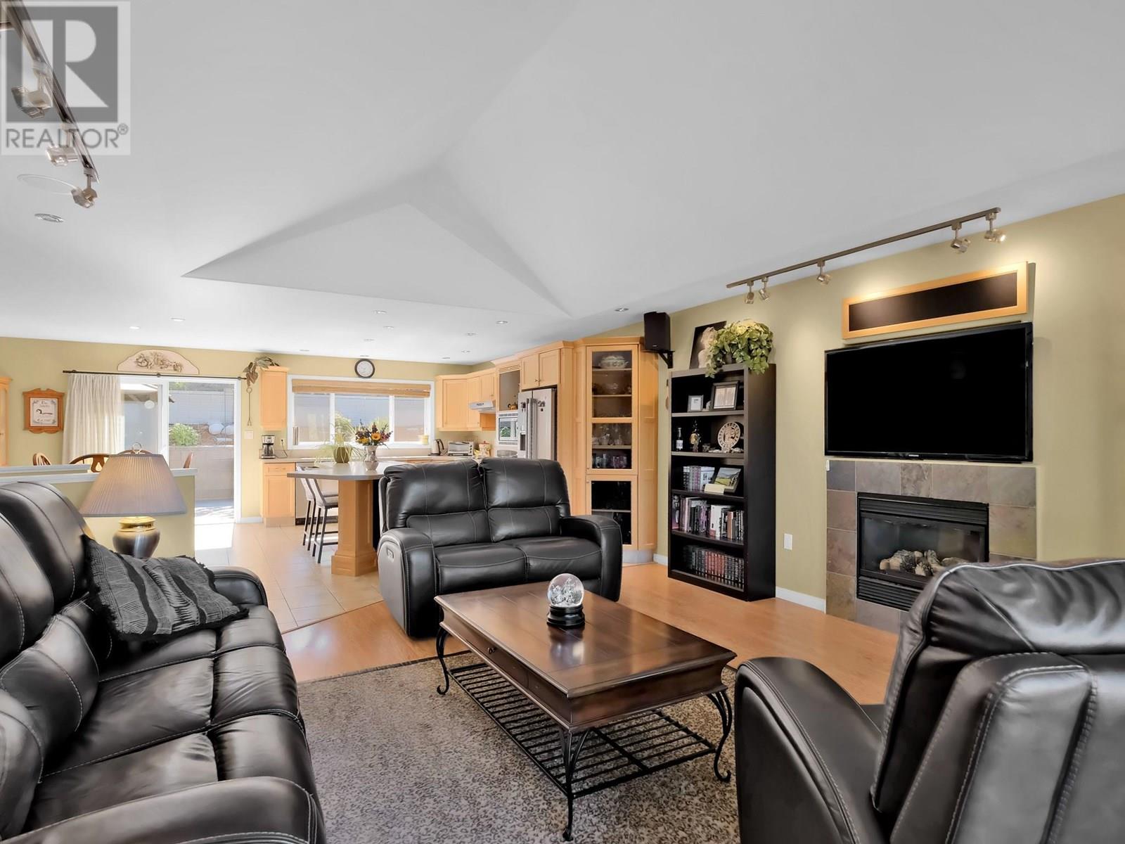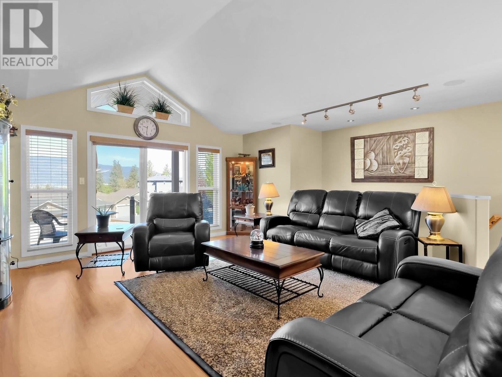 This well-maintained home, built in 2006, is located in the popular Pineview Estates development and is ideally positioned to capture beautiful lake, valley, and vineyard views. The walk-up style layout features an oversized single-car garage and offers 3 bedrooms and 3 bathrooms. The main floor is bright and open, with a spacious great room that includes a timeless, functional kitchen with a sit-up island, seamlessly connected to the dining area and a vaulted living room centered around a gas fireplace. Enjoy easy access to the west-facing covered deck, as well as level entry to the private backyard—complete with stamped concrete patio, gazebo, extensive blockwork, a garden area, and a storage shed. Also on the main level are two additional bedrooms, including a generous 200 sq ft primary suite with dual closets and a 4-piece ensuite with a shower/ and tub combo. The ground floor includes a large family room, an additional bedroom, a laundry and utility room, and an inviting front foyer. The driveway will accommodate several vehicles including a medium sized RV. Located in the desirable Wiltse area—just minutes from all of Penticton’s top amenities—this home offers peace of mind in a safe, well-managed strata community with affordable monthly fees. A complete and move-in-ready package. (id:47466)