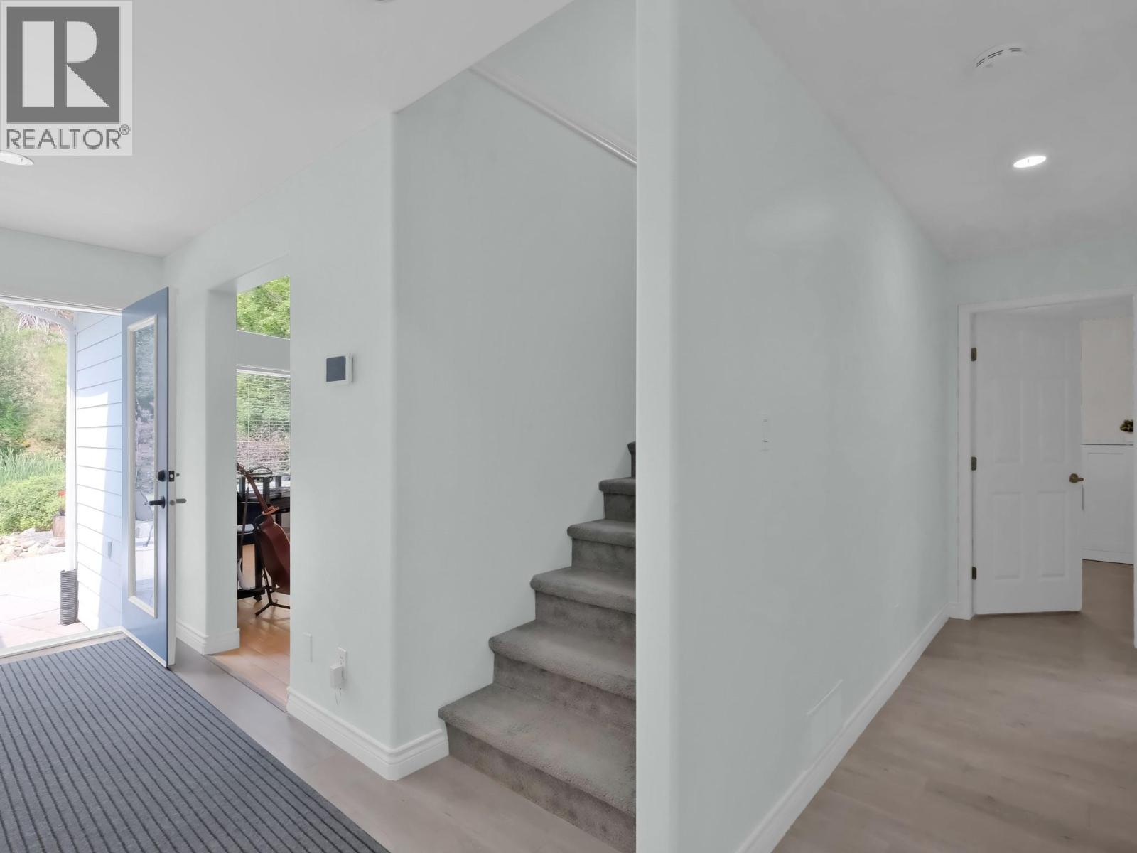 Set along the iconic Bottleneck Drive, this lovingly maintained home blends comfort and character with a location that feels truly magical. Just minutes from celebrated wineries, the scenic KVR Trail, and downtown Summerland, the property also backs directly onto the historic Kettle Valley Steam Railway, creating a picturesque setting that feels straight out of a Hallmark movie. Inside, soaring 19-foot vaulted ceilings fill the living room with natural light, while the upper level offers three inviting bedrooms that overlook the bright and airy space below. The heart of the home is its open-concept kitchen, dining, and family rooms, where large windows frame the outdoors and a walk-out door provides easy access to the backyard. It’s a space designed for connection—whether you’re preparing meals, gathering around the table, or enjoying quiet evenings together. The main level also offers wonderful flexibility with a private office or guest area, complete with its own entrance and a built-in wall bed—an ideal retreat for visiting friends or a quiet place to work from home. Outdoors, the backyard feels like a private sanctuary. A gentle creek winds through beautifully landscaped gardens with natural rock accents, while a spacious patio invites you to relax in the hot tub, host summer barbecues, or simply unwind in the peaceful surroundings. Thoughtful updates, including modern HVAC, new appliances, and fresh paint, mean the home is as practical as it is welcoming. (id:47466)