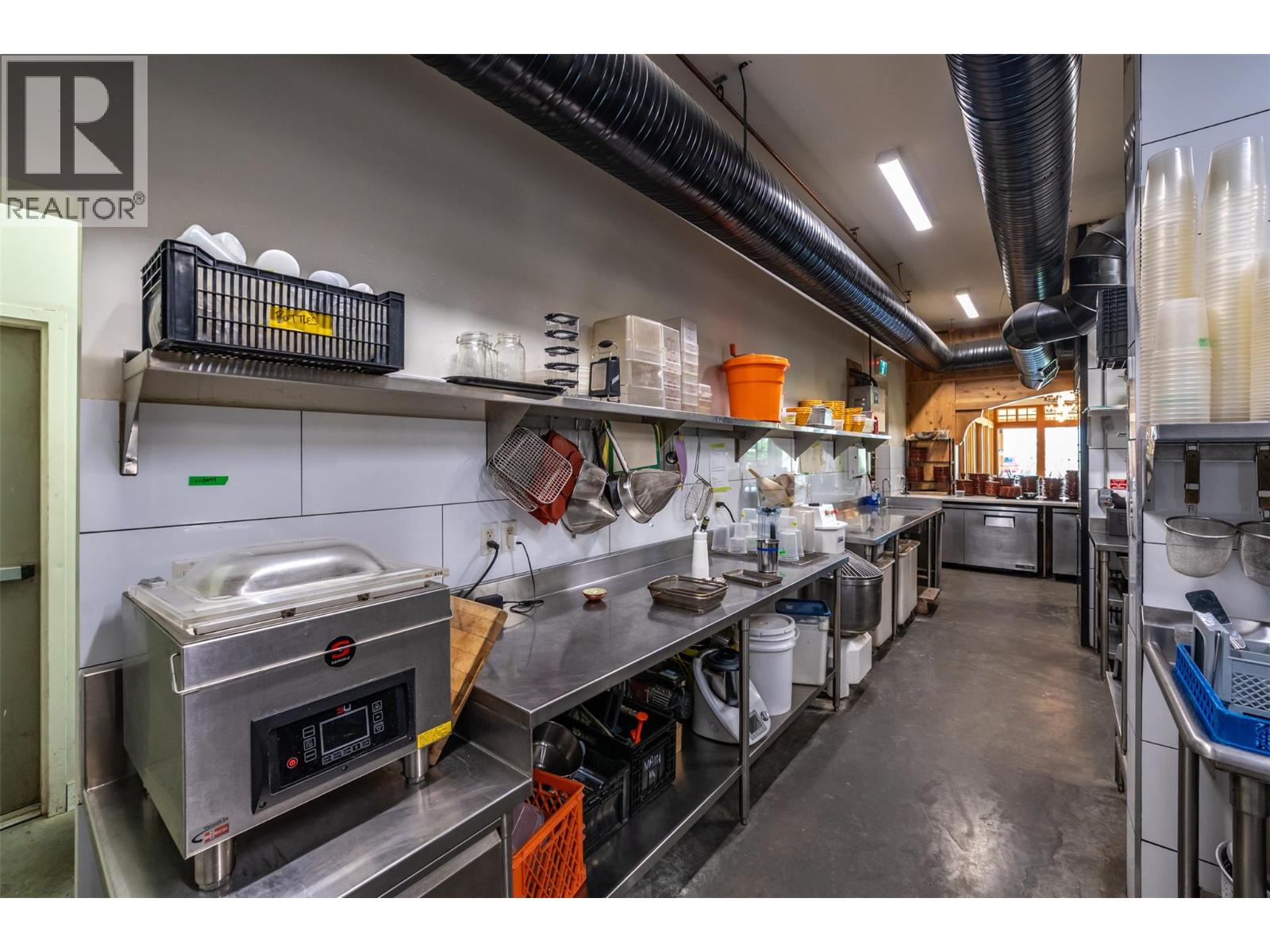 This is a rare opportunity—your dream lifestyle realized. Set on 4.5+ acres of lush apple and pear orchard with no zoning, the possibilities are endless. Currently operating as a restaurant and cidery, this state-of-the-art facility offers endless potential. The beautifully designed 3,000 sq ft dining and tasting room features a vaulted ceiling with massive wood beams, a 16-tap, 3-tower stainless bar with glycol-chilled lines, and triple-pane glass walls that frame the mountain views. The heated, covered patio is perfect for al fresco dining among the trees. Seating for 70 guests. Four modern guest bathrooms plus a staff area complete the main level. The 2,500 sq ft dream kitchen includes a wood-fired hearth, 2 combi ovens, 8-burner induction range, multiple under-counter fridges, and freezers. Smartly designed zones for prep, cooking, and clean-up ensure optimal flow. Coffee and server stations are tucked out of sight. In the back, a 2,500 sq ft microbrewery and cidery boasts 25’ ceilings, double-height garage doors, a walk-in cooler, giving room for fermentation and carbonation tanks, water treatment, keg washer, bottling and labeling lines—and the flexibility to transform the space for other uses. Upstairs, another 2,500 sq ft hosts banquet/conference space and office areas with orchard or brewery views. Two more bathrooms and plenty of storage round out this level. The property also contains a large 2 bed, 1 bath, home and double garage... lifestyle opportunity? (id:47466)