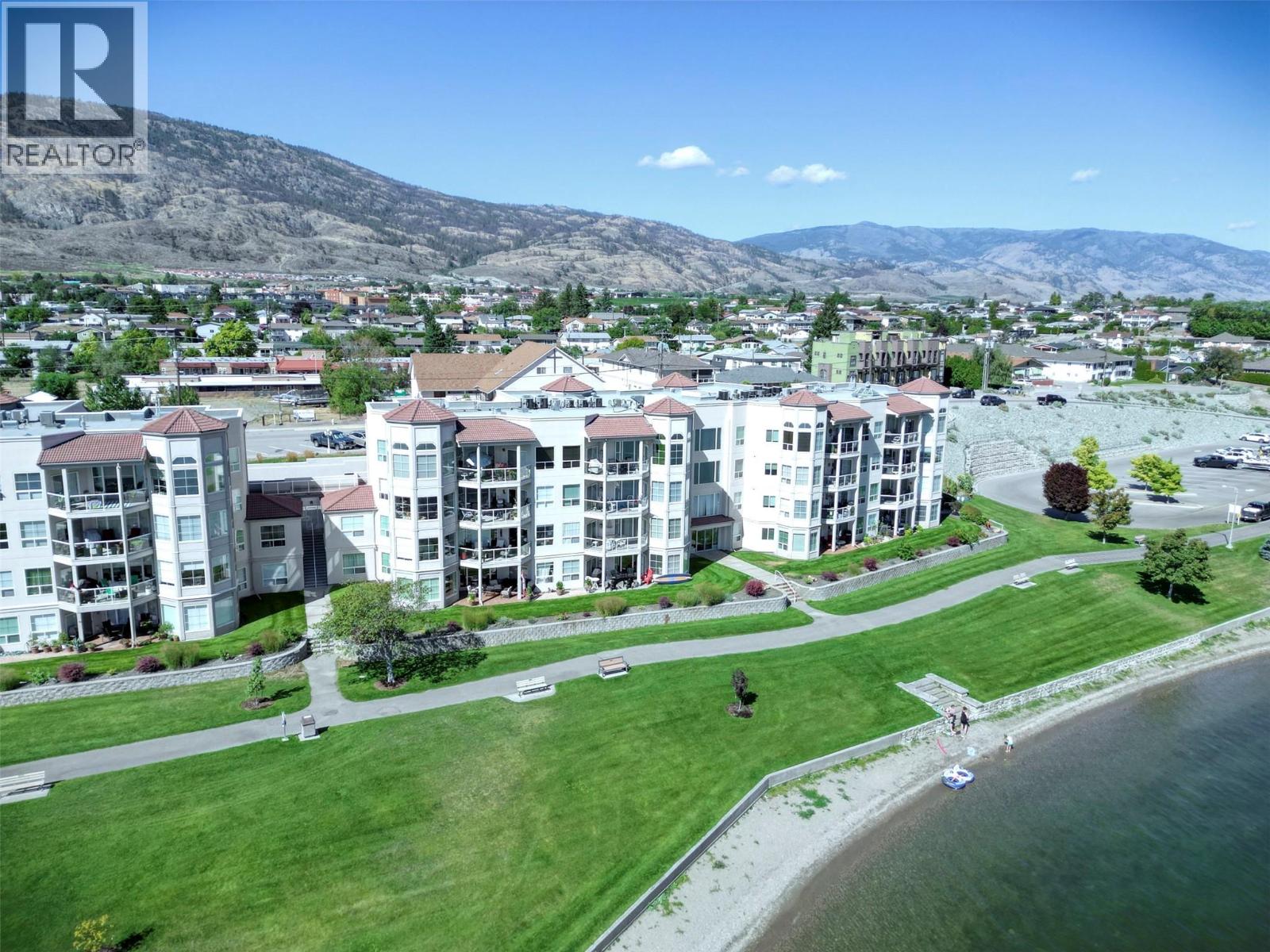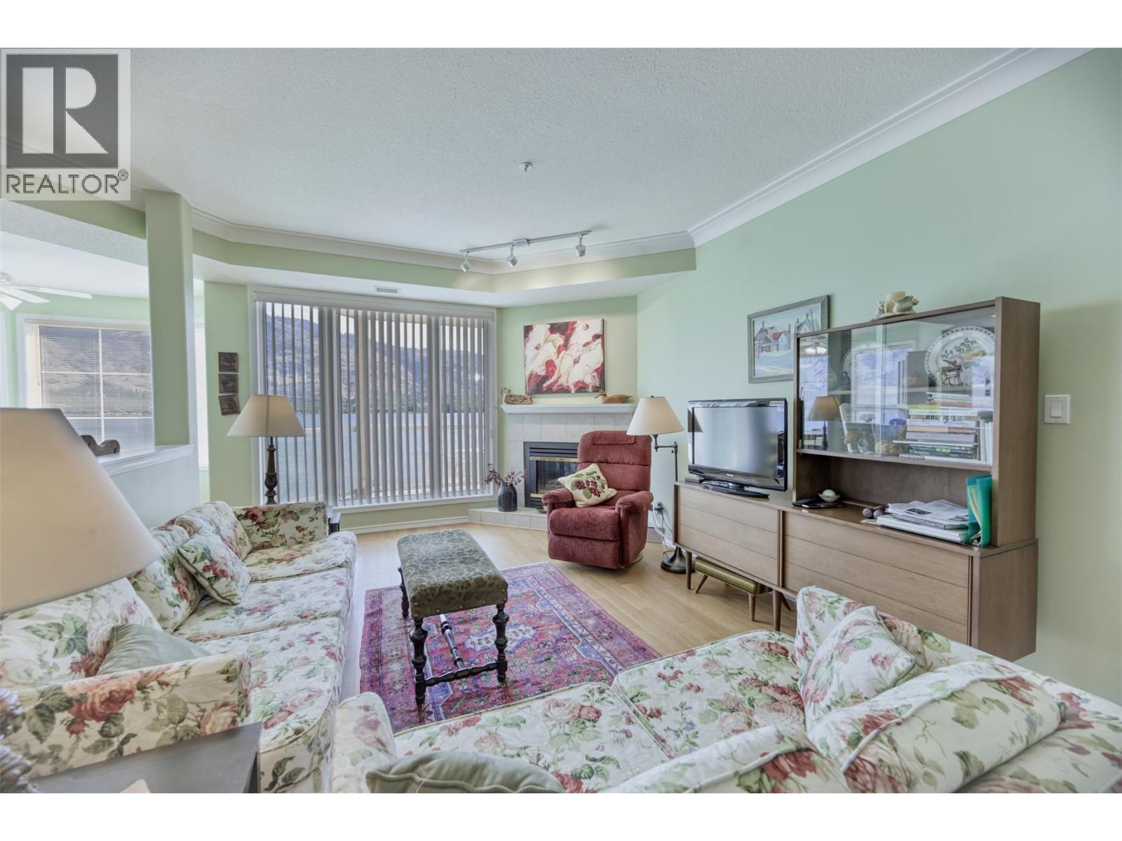 Must see – RARELY available BEST PRICED lakefront condo at the desirable WHITESANDS! This beautifully maintained 2 bedroom, 2 bathroom condo offers stunning lake views from almost every room and features high ceilings throughout, newer flooring, a cozy corner gas fireplace, central A/C and heat, in-suite laundry, and central vacuum. The east-facing balcony provides the perfect spot to enjoy your morning coffee or warm summer evenings, complete with a gas BBQ outlet and natural shade. This unit also includes two secure underground parking stalls and a huge storage locker—an exceptional bonus. WHITESANDS is one of the most sought-after 55+ communities in town, located just steps to the beach, across the street from medical centre, scenic walking trails at your doorstep, and the senior centre across the park. Residents enjoy excellent amenities including a fitness centre, games room, workshop, and guest suites. One dog or one cat permitted. Lakefront opportunities like this don't come up often— (id:47466)