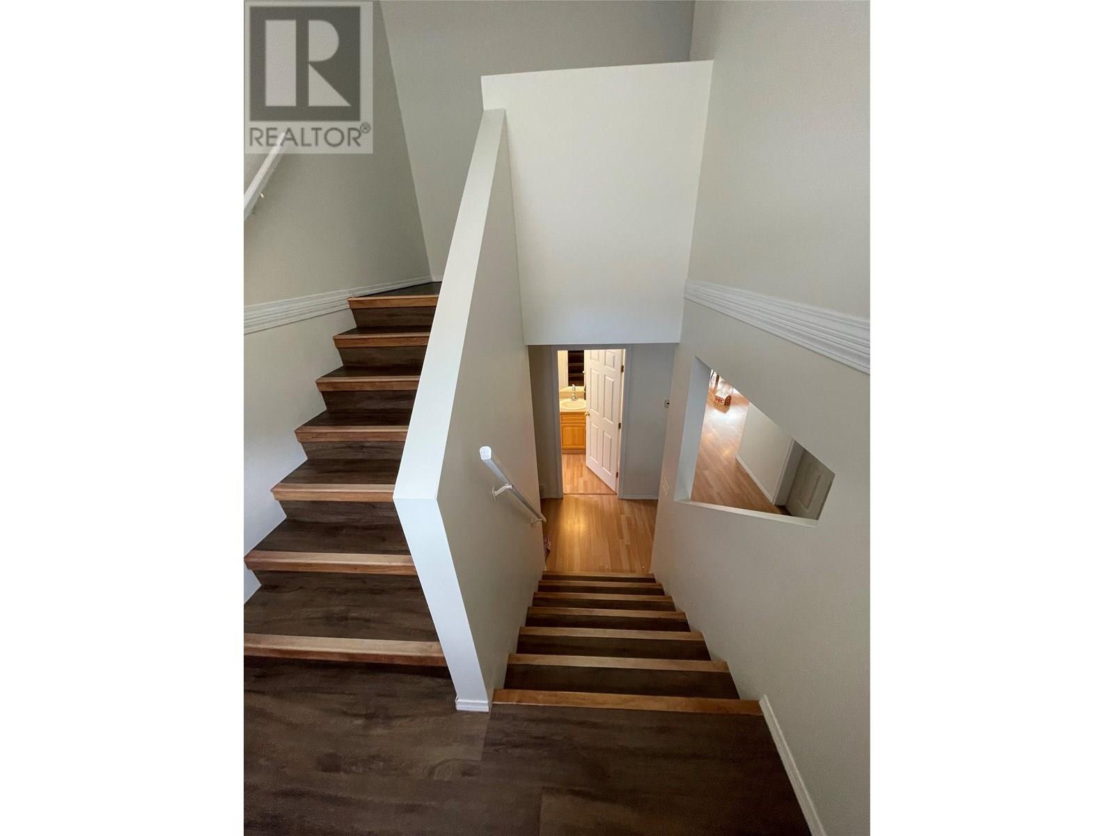 Beautiful, bright three-bedroom, 3 bathroom end-unit townhome just a short walk to downtown Summerland! Park in your single car garage or outside in your stall. On the main floor enjoy the open plan living space; kitchen with stainless appliances and large island, good-sized dining area and living room with sliders onto the deck which leads down stairs to the small, fenced yard. There is also a powder room on the main for your convenience. Upstairs are three good-sized bedrooms, full 4 pc bath, new flooring and laundry. The big master bedroom features a 3 pc ensuite and walk-in closet. Downstairs you'll be pleasantly surprised by all of the storage available as well as a rec room for the kids or home office for you. All large hallways and room sizes! Family friendly complex. This well cared for property also comes with a Natural gas furnace and central air, no age restriction and your pets are welcome! All measurements approx. Very modest strata fees at $260.00 per month. Immediate possession available (id:47466)