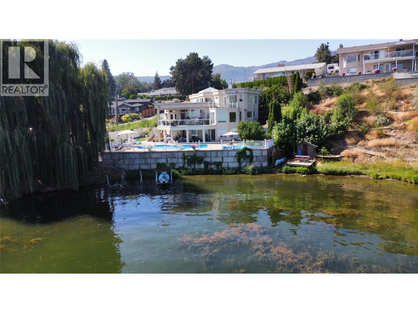 LAKELOVERS WELCOME! Custom waterfront home on quite cul-de-sac. Open living design. Gourmet kitchen, granite counters, 2 ovens, prep sink in magnificent island with plenty of seating around to enjoy your guests while cooking with the picture perfect lake background. Huge walk-in pantry. Designed for ultimate lakeviews & privacy. Tile and hardwood flooring. Lower level has roughed in room for home theatre, gym or games room, get creative. Full 2 bedroom in-law suite(unauthorized) in lower walk out basement. you'll also find a private studio recroom area here. Spacious and pampering primary bedroom with 3 sided fireplace, and soaker tub overlooking the lake & private deck perfect spot to watch the night sky. Mainfloor deck is large enough to host the largest family & overlooks the inground pool. Lower deck is poolside and offers shade on those extra hot summer days. Pool has slide & outdoor shower plumbed hot and cold! Special features of this home are multi-zoned in-floor heating, tile flooring, amazing natural light provided by the central architectural feature skylight & fire suppression sprinklers throughout, new roof in 2024, new rooftop air-conditioner in 2023, new deck surfacing in 2020, 3 gas f/p and complete with double car garage. This private Lakefront home will not disappoint and is a must see. A great multi-generational/ family home Book your private viewing today. Measurements should be verified if important. Seller is a licensed REALTOR. (id:47466)