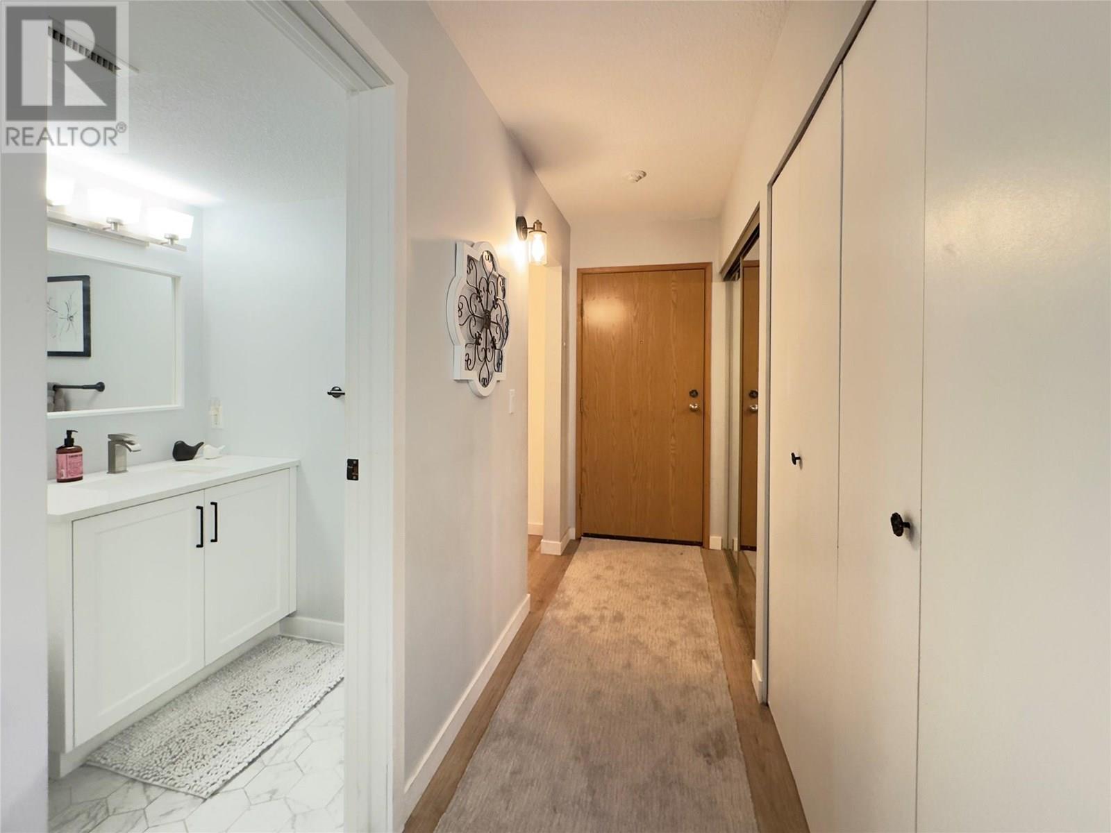 #203 – 84 Van Horne Street | Renovated Downtown Penticton Condo! Step into style and comfort with this beautifully renovated 2-bedroom, 2-bathroom condo located in the heart of downtown Penticton—just one block from Okanagan Lake and steps to restaurants, cafes, breweries, the KVR Trail, and the famous farmers market. This southeast-facing corner unit has been substantially updated throughout, featuring all-new flooring, fresh paint, a brand-new hot water tank, and a fully renovated kitchen with quartz countertops, white shaker-style cabinetry, under-cabinet lighting, a large island, and all new stainless steel appliances. Both bathrooms have been tastefully renovated, and the unit also offers in-suite laundry and a bonus office/storage space. The open-concept living area is filled with natural light thanks to the new window and sliding door, which lead to a wrap-around covered balcony—perfect for enjoying morning sun and views. Hallmark Manor is a well-maintained and secure 55+ complex, ideally situated in one of Penticton’s most walkable neighborhoods. The building features secure underground parking, a recreation room, and a storage locker room with a workshop area. Small pets are allowed with strata approval. Rentals permitted with restrictions. Whether you're looking for a full-time home, a vacation getaway, or a low-maintenance investment, this condo checks all the boxes. Move-in ready and close to everything Penticton has to offer! (id:47466)