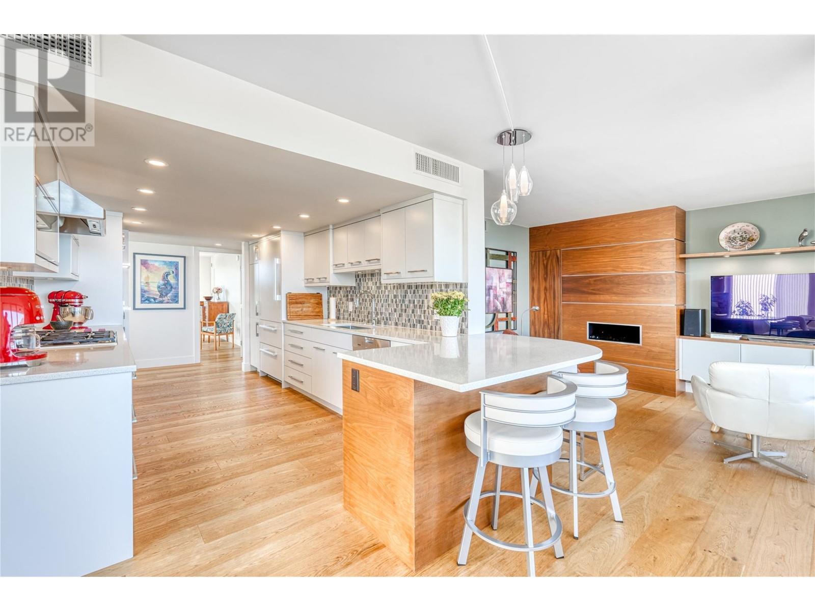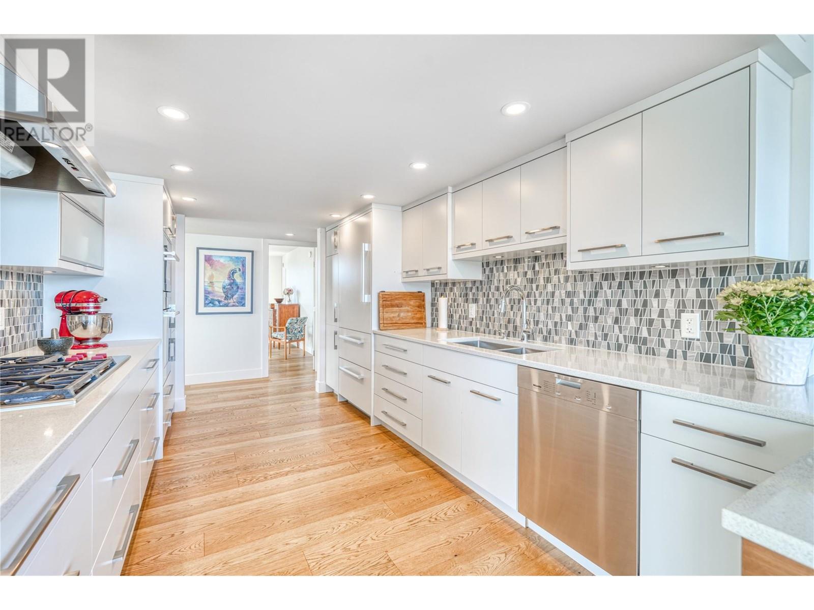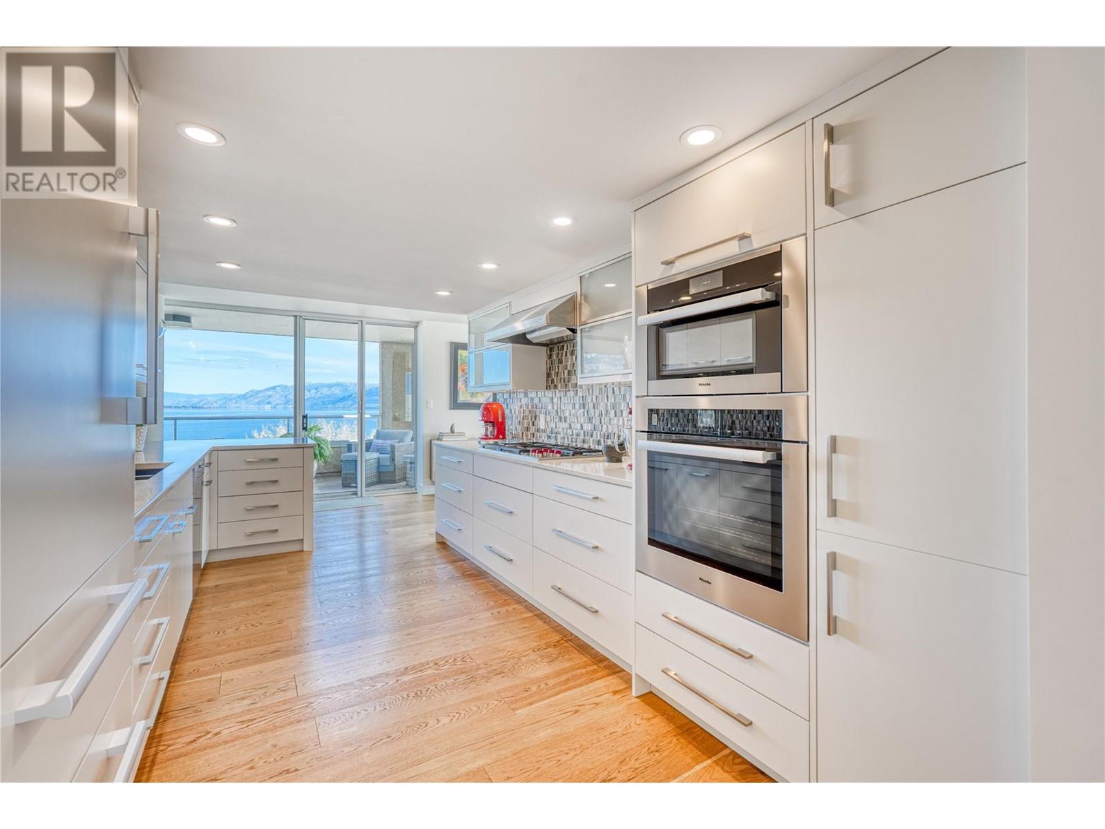 Your Dream Home Awaits at 86 Lakeshore! Experience the epitome of luxury living at this distinguished address, overlooking picturesque Okanagan Lake and Park. Indulge in the convenience of walking to restaurants, breweries, shopping, the marina, beach, KVR and the bustling farmers market. This exclusive boutique condo development has only 26 homes, all currently owner-occupied, fostering a warm and secure community atmosphere that you'll be delighted to call home. Prepare to be amazed by the substantial recent renovations, including a stunning Carolyn Walsh-designed kitchen featuring a five burner gas Wolf cooktop, double Miele ovens, and exquisite quartz countertops. Both bathrooms have been tastefully updated to elevate your everyday living experience. Retreat to the spacious primary bedroom with direct access to two of the three covered decks that offer breathtaking views and serene outdoor spaces. With two parking spots in the secured parkade, a convenient storage locker, and shared back garden for larger party entertaining every detail has been considered to enhance your comfort and convenience. (id:47466)