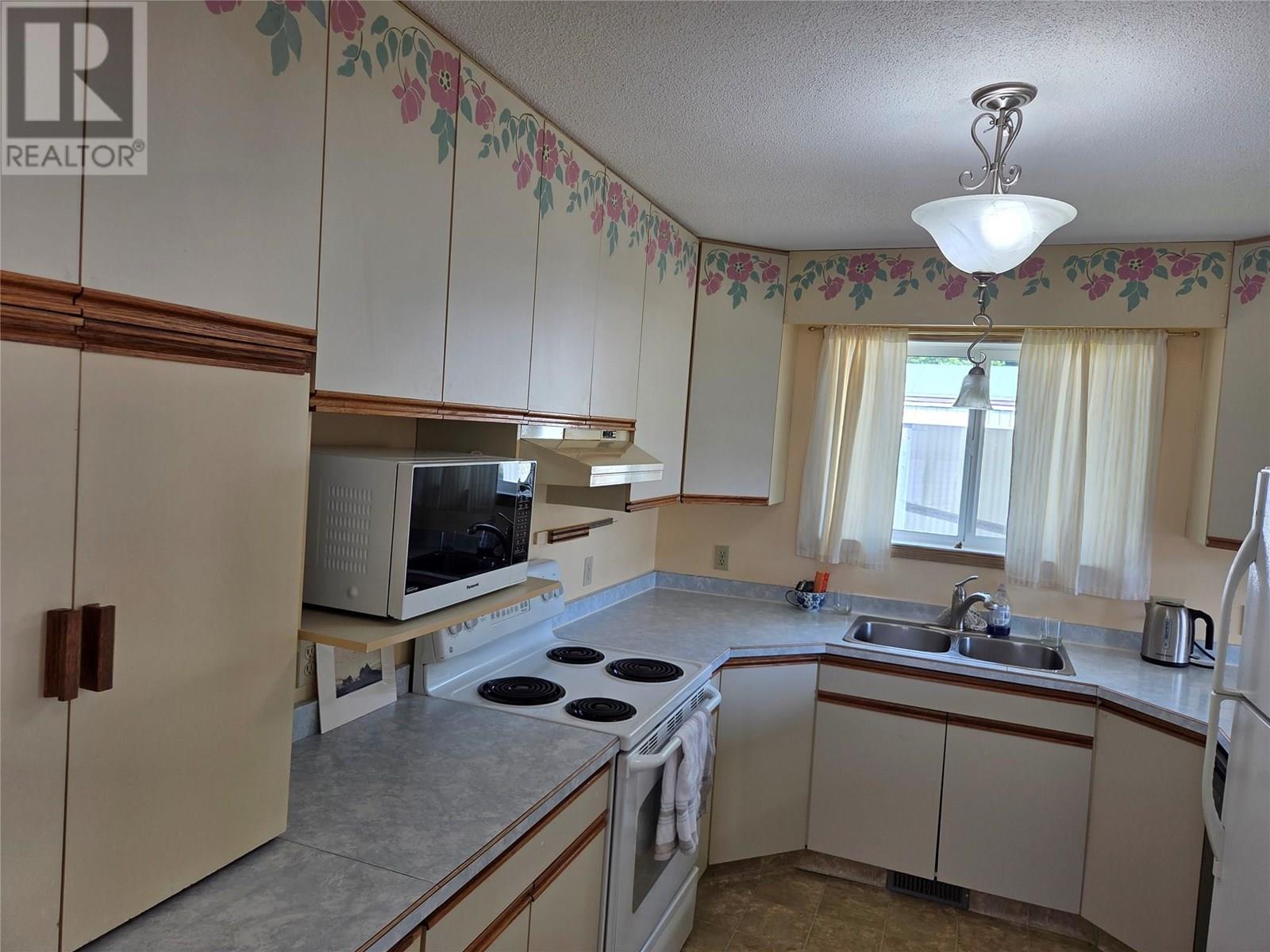 No Age Restriction in this pet friendly Park Central to everything in Keremeos, right next to the Rec Centre. 2 bedroom 2 bathroom home has plenty of space and lots of living areas, separate laundry room, and a large covered deck to enjoy the seasons outside as well. Large yard with shed and storage, well worth a look. Carport, Central Air, Pex plumbing - add your touches and make this your home! (id:47466)